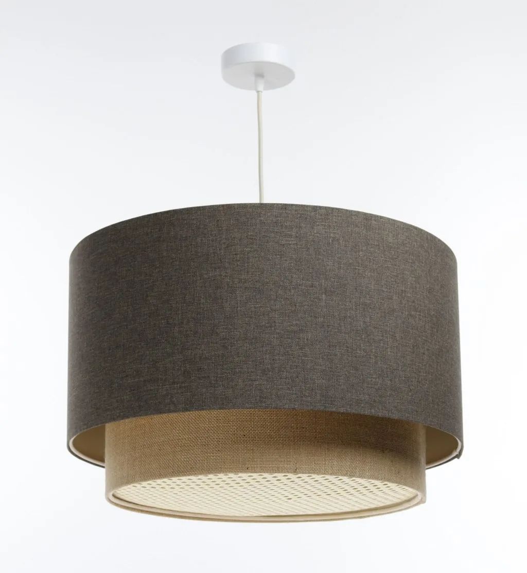 Hängeleuchte Duo XL Rattan Elegant 50cm Graphitgrau, Beige-Braun
