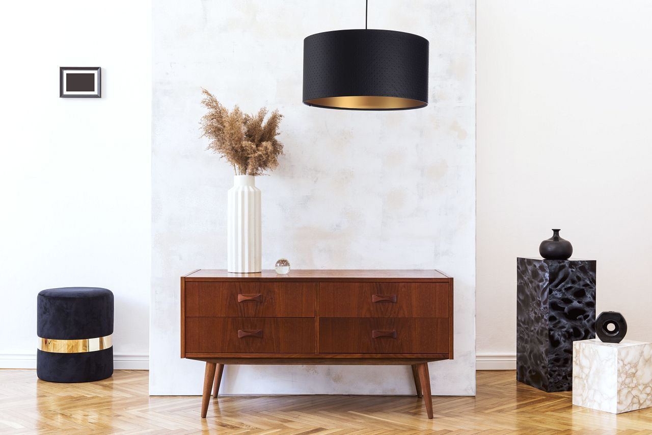 Hängeleuchte Glamour Metall Schwarz Schwarz, Gold2 Lampenschirmhöhe 30 60 112