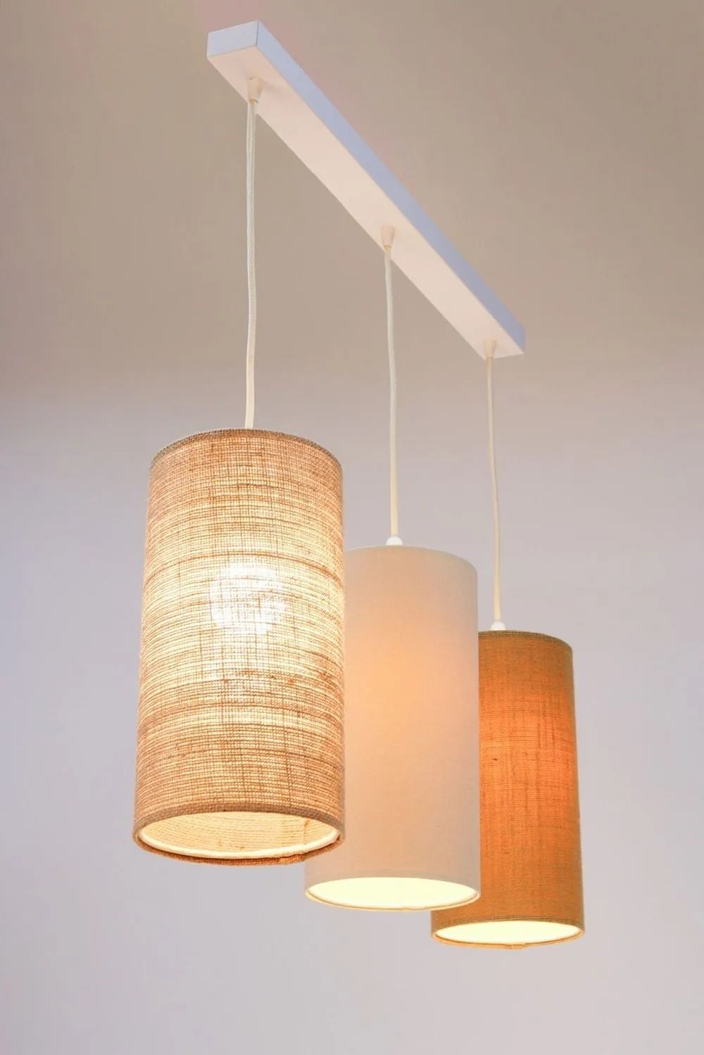 Hängeleuchte Tube-Trio Elegant Leinen-Grau, Vintage-Creme, Beige-Braun