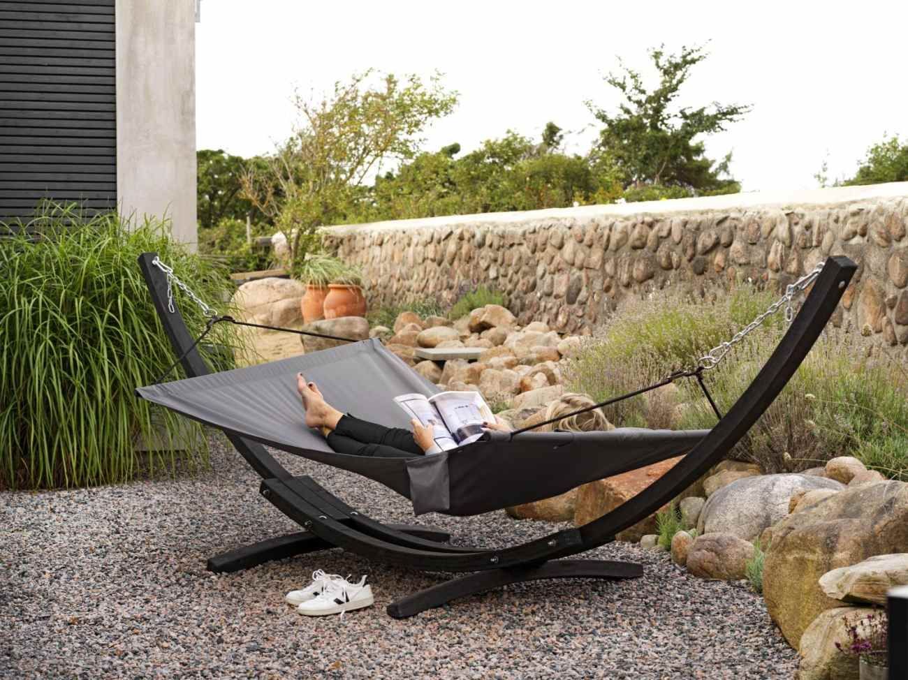 Hängematte Enif aus Aluminium und Polyester, modern, dunkelgrau, outdoor