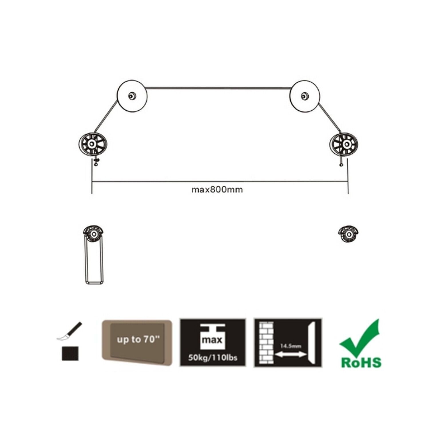 Hängende Seilsystem Wandhalterung Universal Ultra Slim TV 50kg 32-75" 800x800