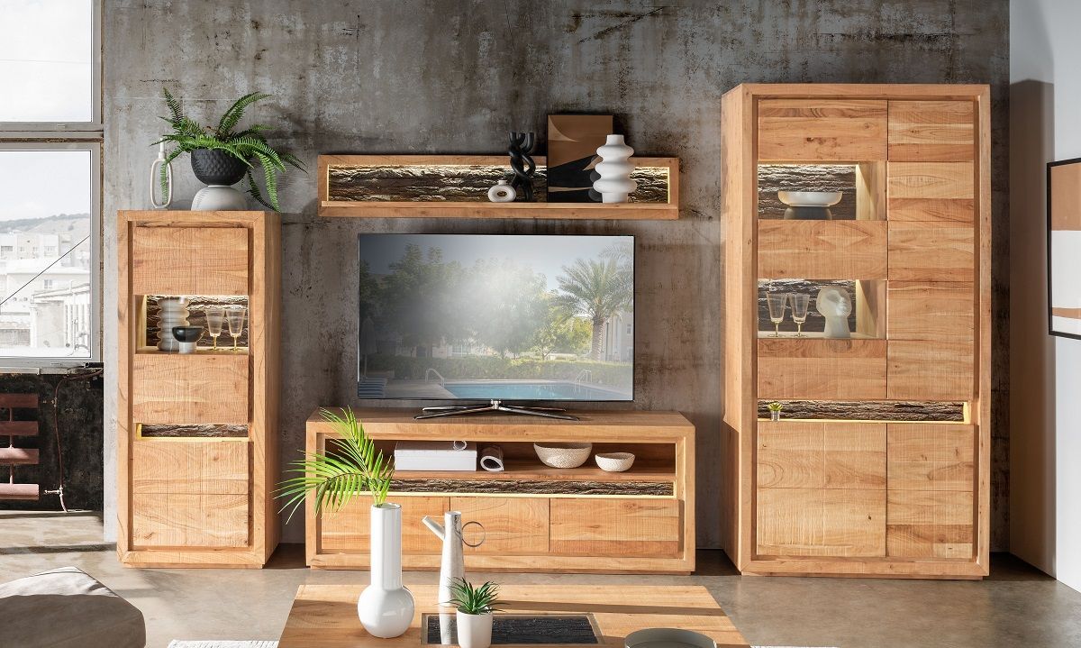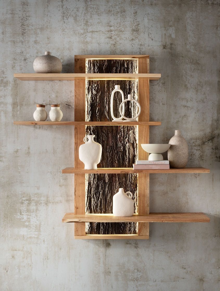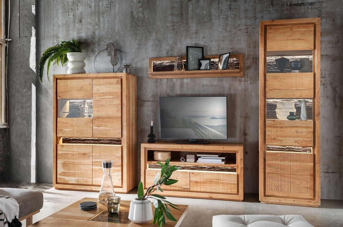 Hängeregal inkl. Beleuchtung 134x132cm "Trondheim" Akazie massiv
