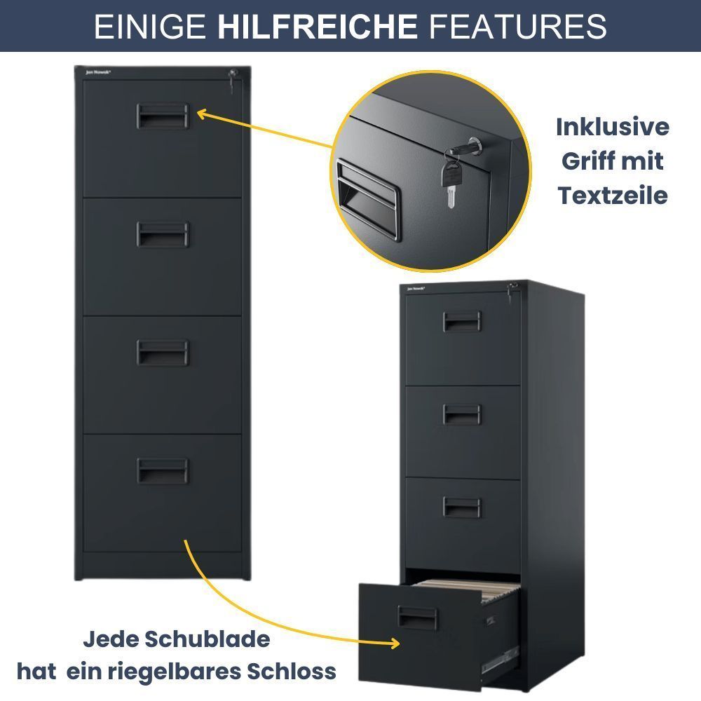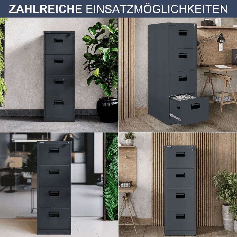 Hängeregisterschrank abschließbar TION 132x46x62cm Anthrazit 4 Schubladen mit Schloss