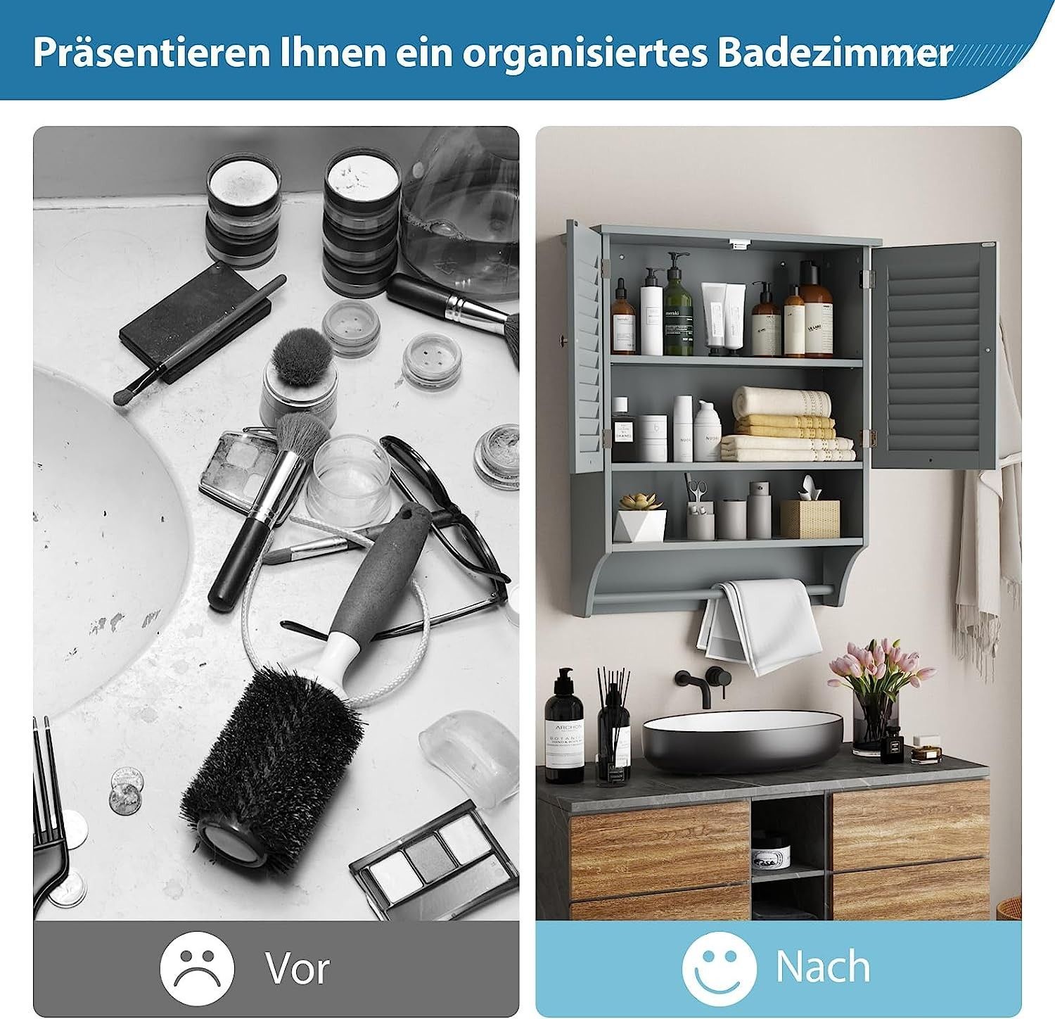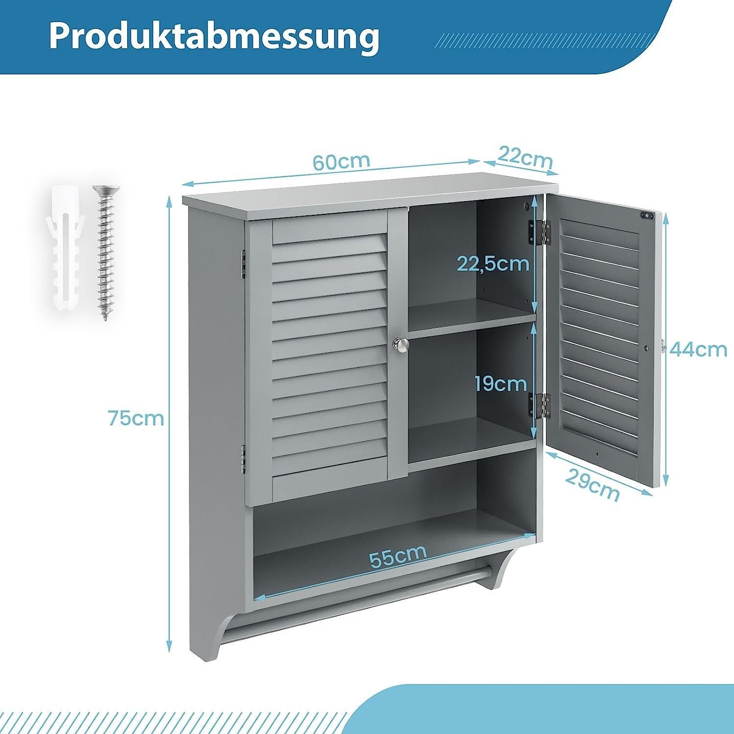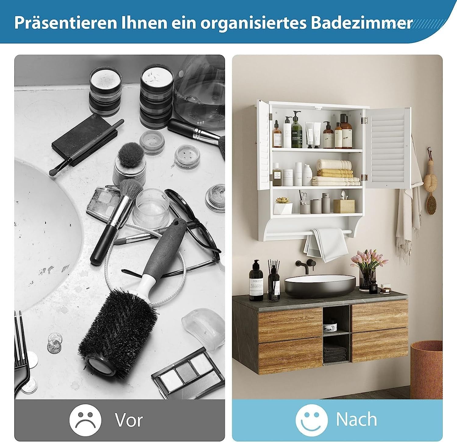 Hängeschrank 3 Ablagefach, Badezimmerschrank mit verstellbarem Einlegeboden