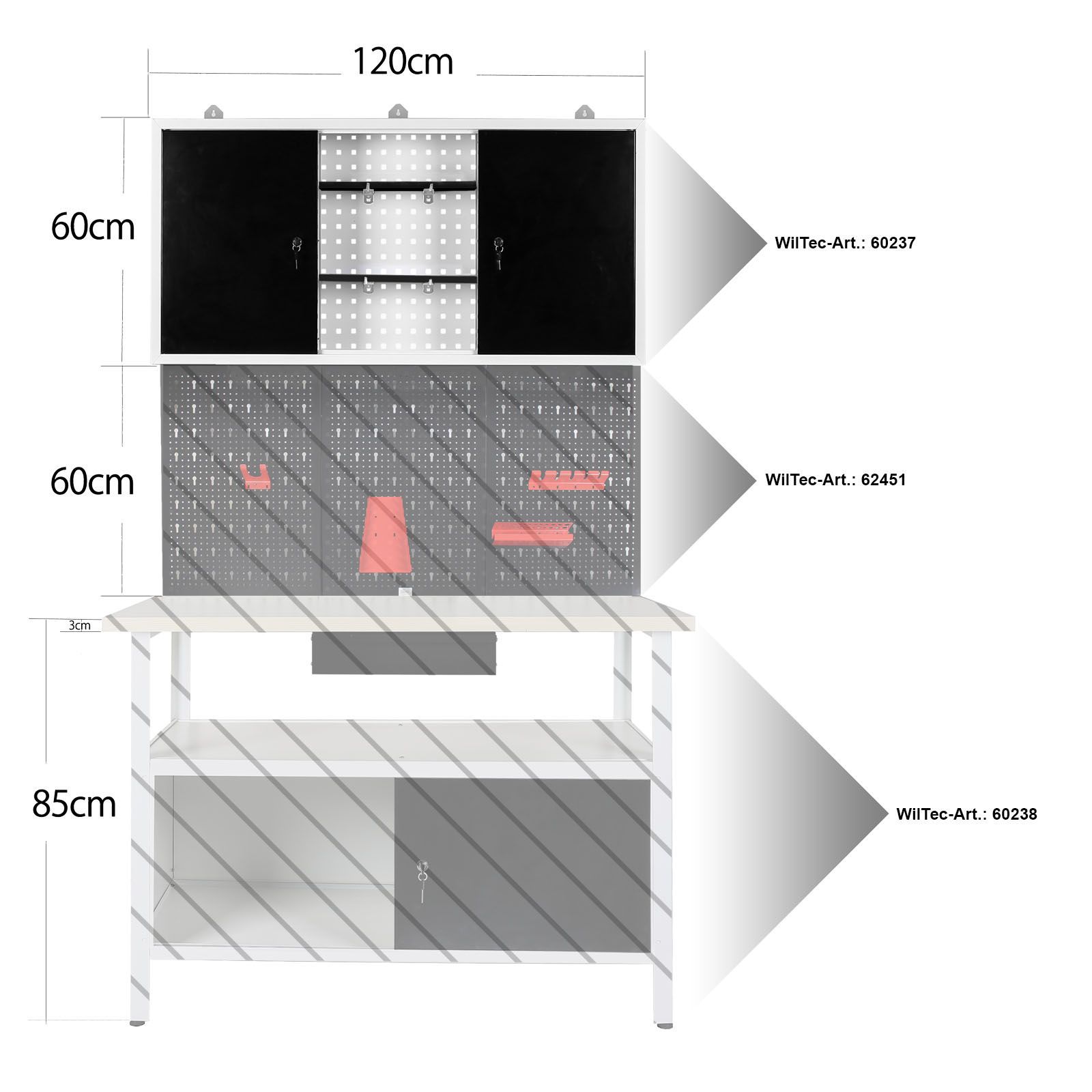 Hängeschrank Grau Werkstatteinrichtung Werkbank Werkzeugschrank Lochwand