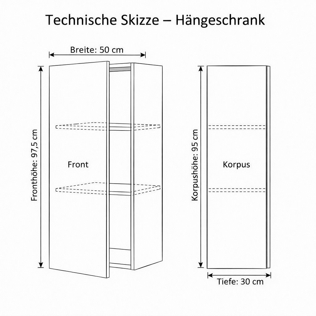 Hängeschrank hoch LINEA 50 cm Farbauswahl Hochglanz/Matt SOFT CLOSE