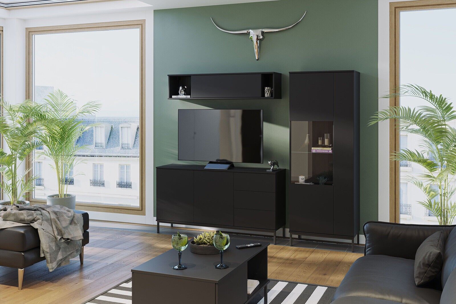 Hängeschrank QUERTY QT-06 Wandschrank Wandregal Regal Produktmerkmale: 1 Tür 2 offene Regalfächer 1 geschlossenes Regalfach grifflose Fronten klappbare Tür nach oben (mit Dämpfer) Push-to-Open-Öffnungssystem Korpus aus laminierter Spanplatte 16 mm Fronten aus laminierter Spanplatte 16 mm schwarze Rü