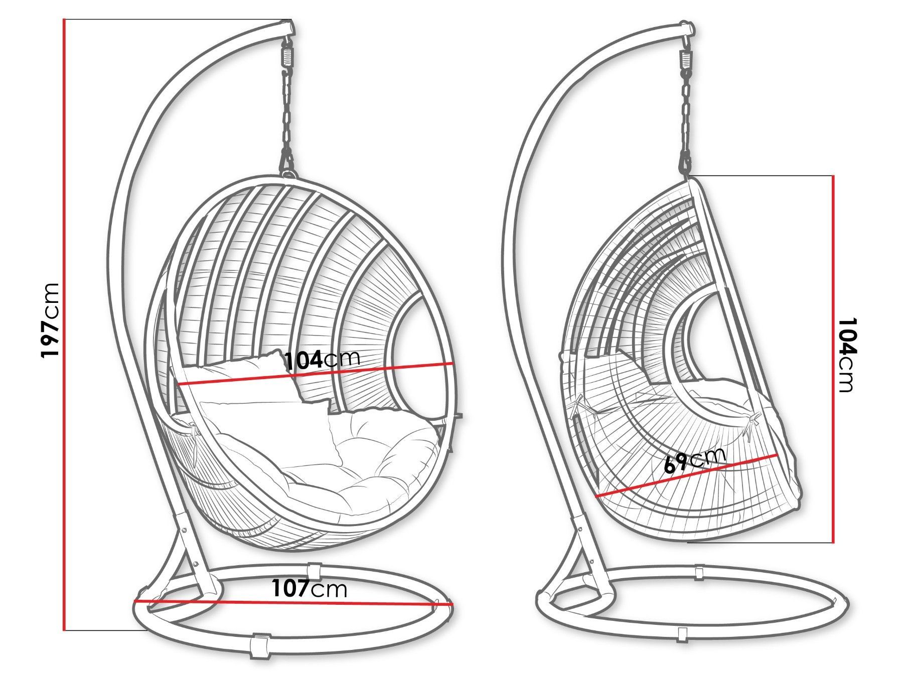 Hängesessel Nora Hängekorb mit Gestell Gartenmöbel Kokon Hängestuhl M24