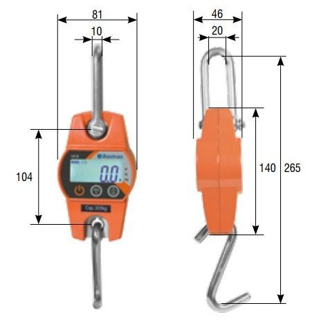 Leichte Hängewaage für kleinere Lasten Ultraleicht mit geringer Baugröße, kann überall einfach mitgenommen werden, ideal als ständige Waage für unterwegs. Gehäuse aus Aluminiumguss Abmessung Gesamtwaage ca. 275 x 81 x 50mm Hinterleuchtetes LC-Display mit 18 mm hohen Ziffern