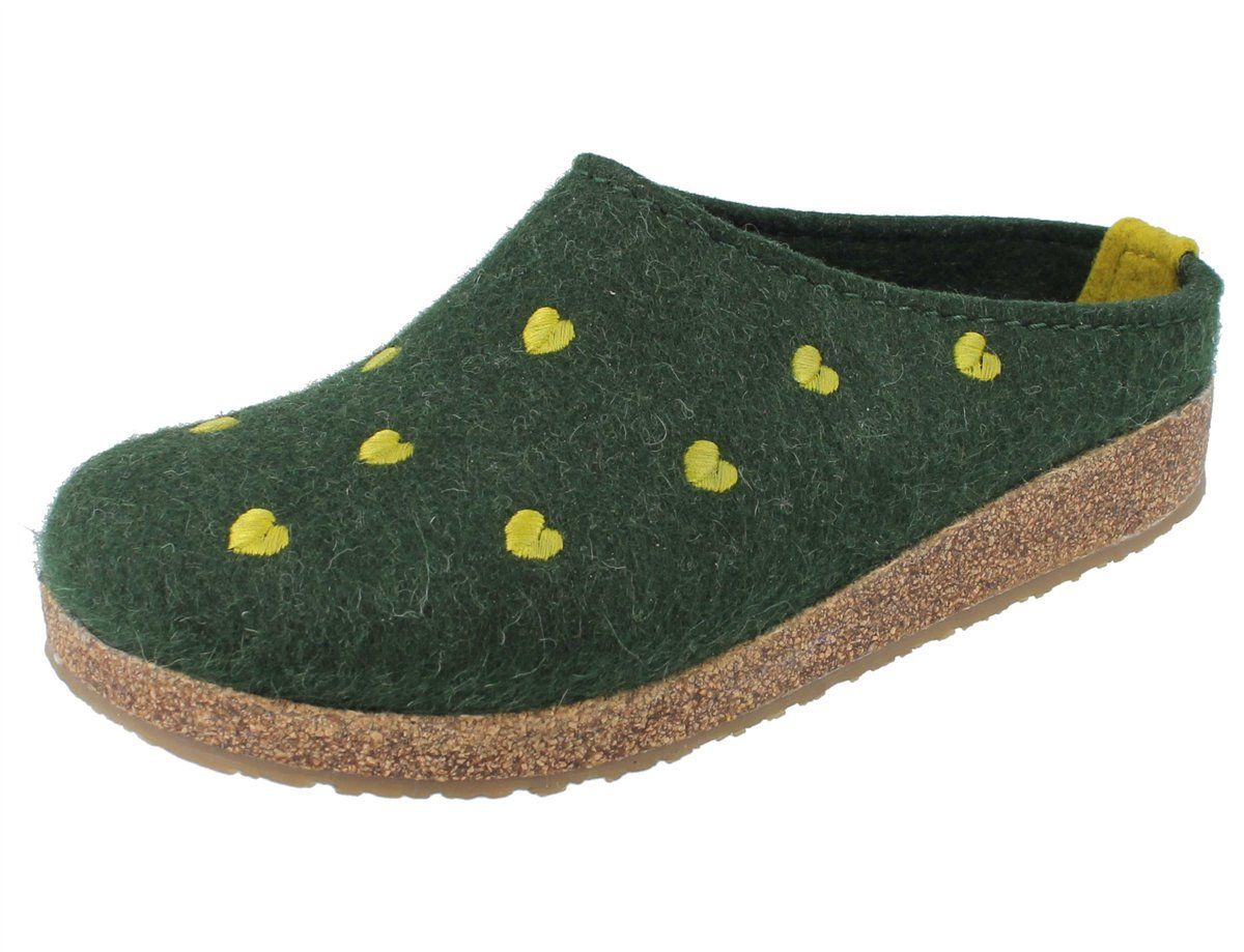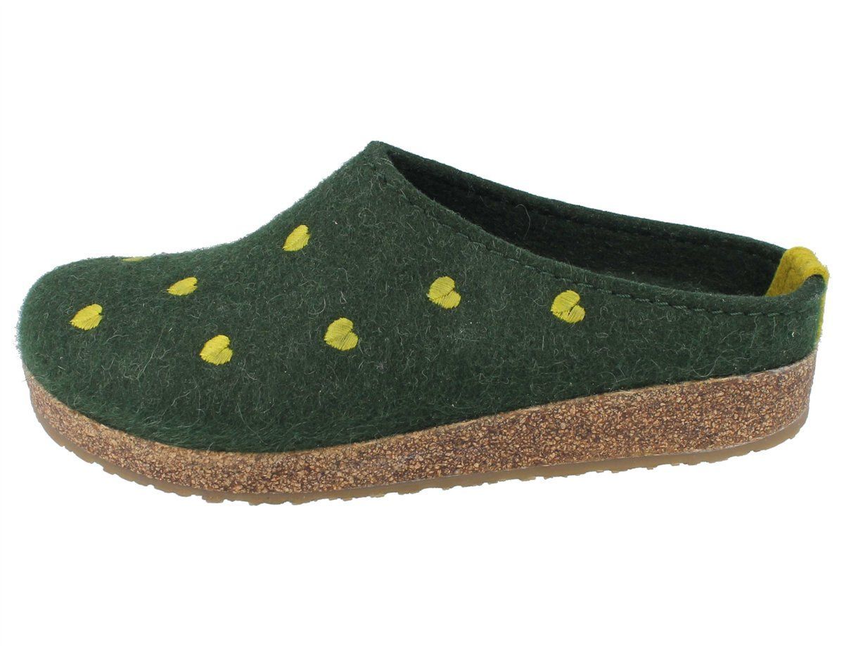 Haflinger Grizzly Cuoricino Damen Hausschuhe Clog Pantoffeln grün Herz Wollfilz