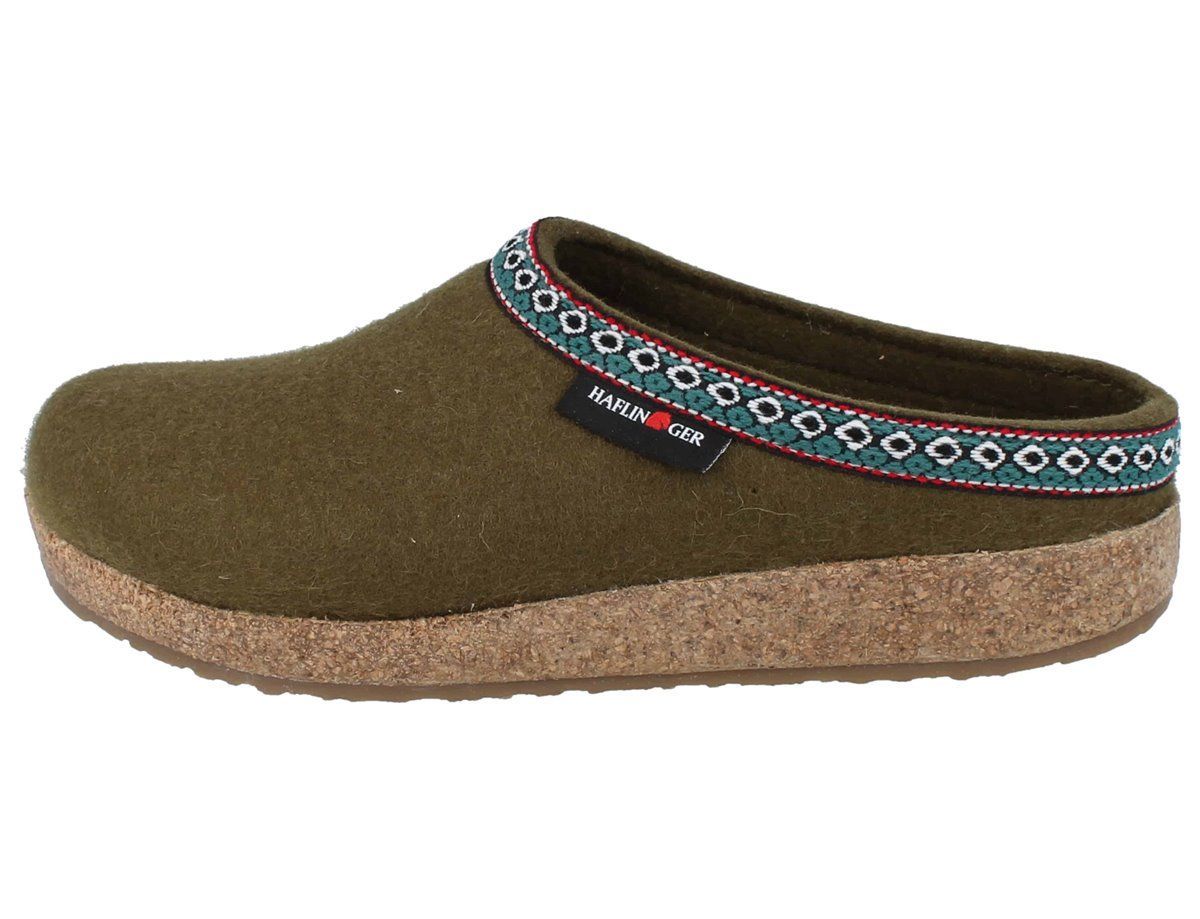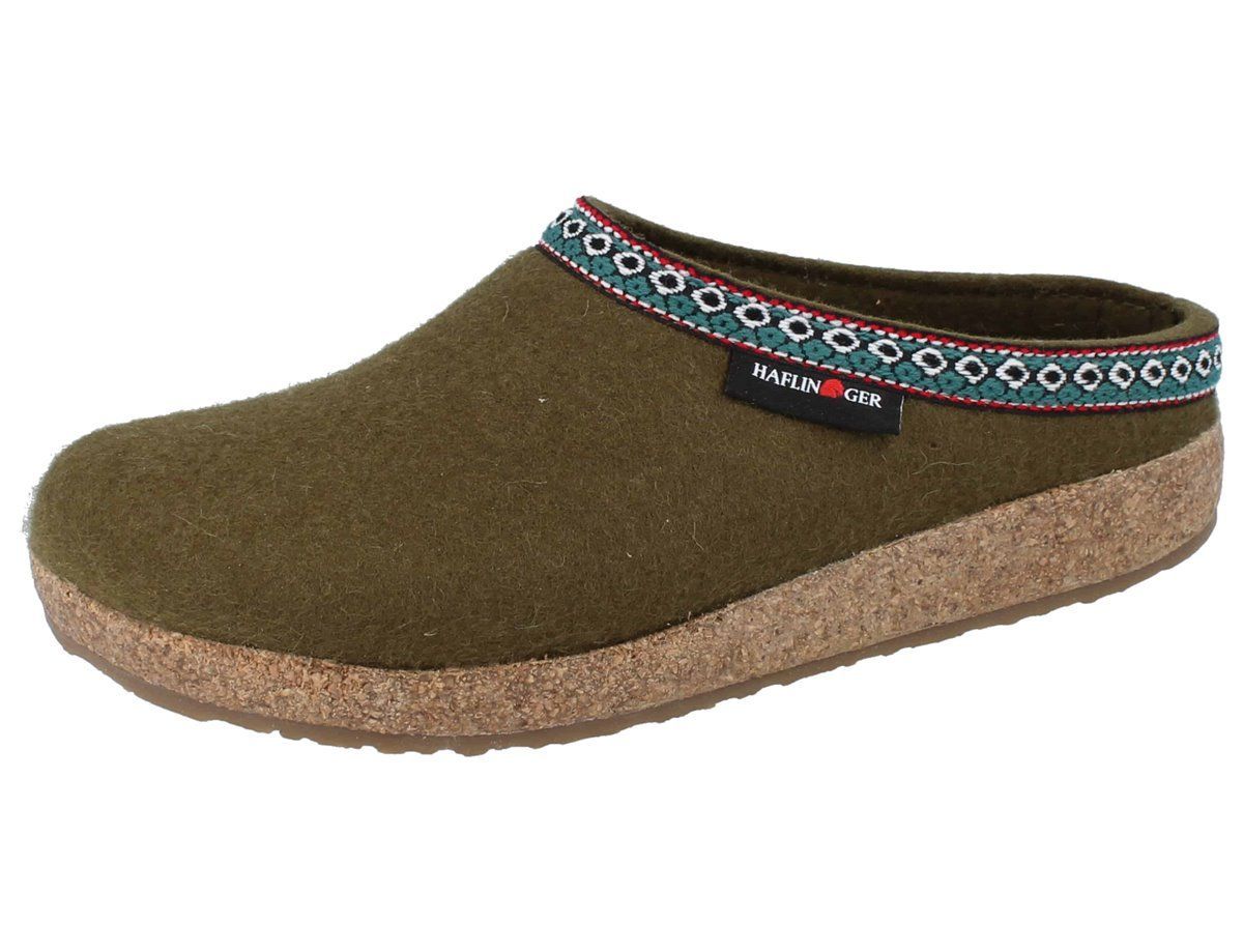 Haflinger Grizzly Franzl Damen Hausschuhe Filzschuhe Pantoffeln grün Wollfilz