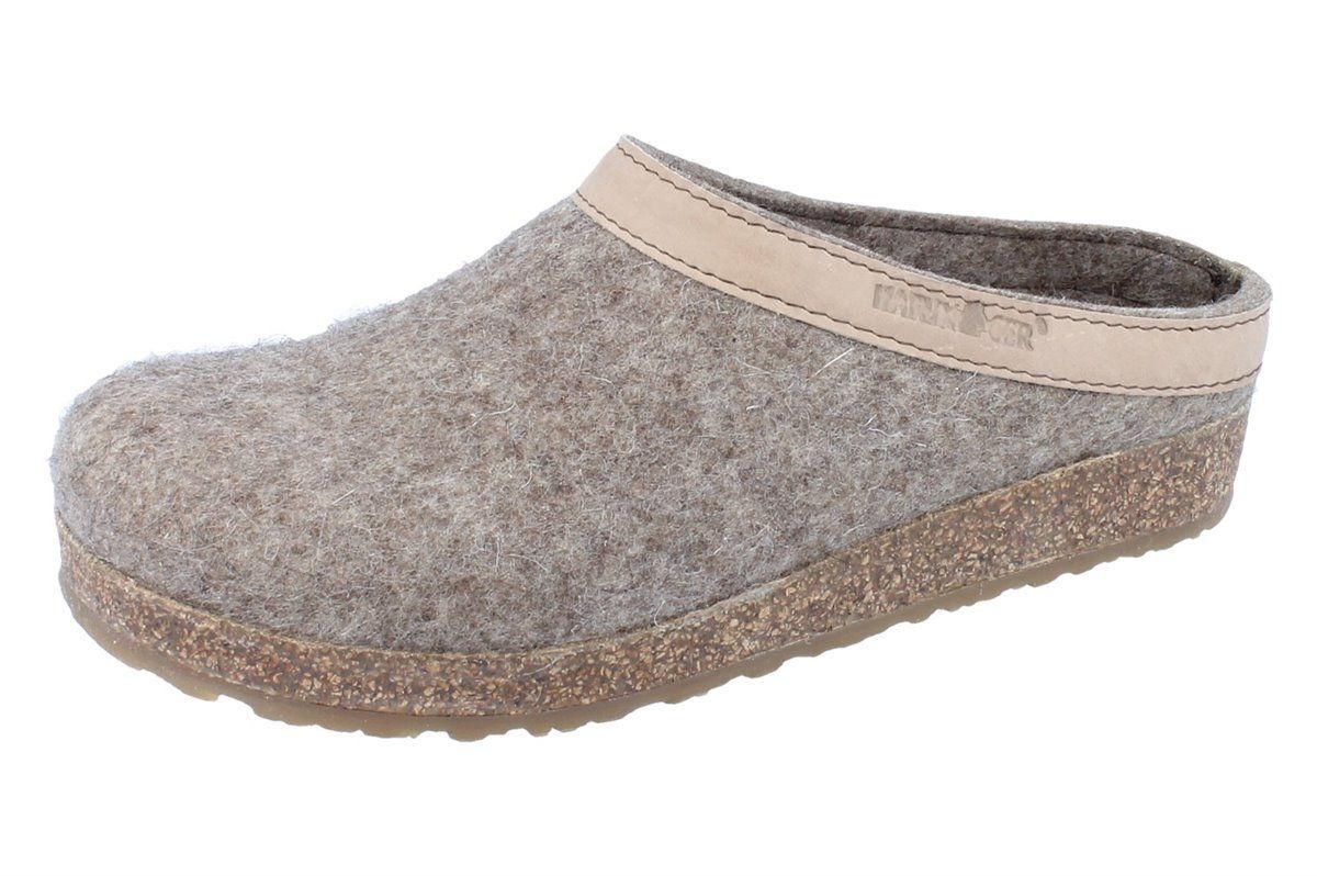 Haflinger Grizzly Torben Damen Hausschuhe Clog beige torf/Wollfilz