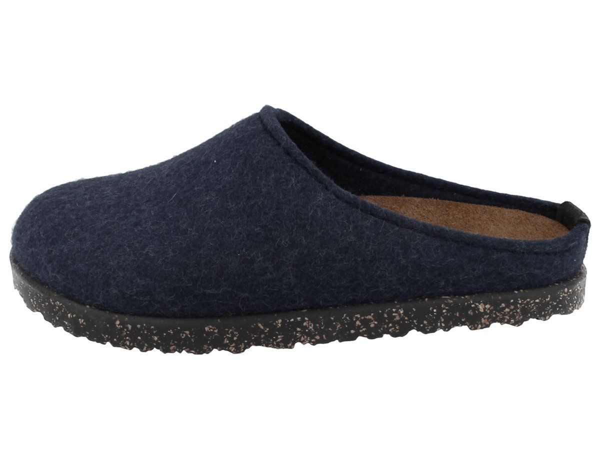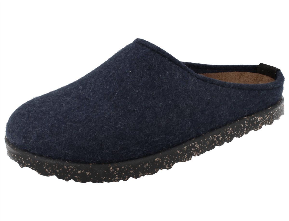 Haflinger Manhattan Damen Hausschuhe Clog Filzschuhe Hüttenschuhe blau Wollfilz