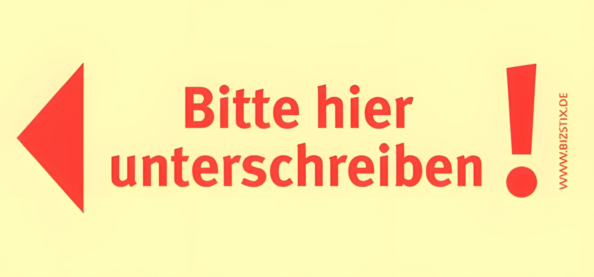 Haftnotizen "Bitte hier unterschreiben" - 75 x 35 mm, 5x 100 Blatt