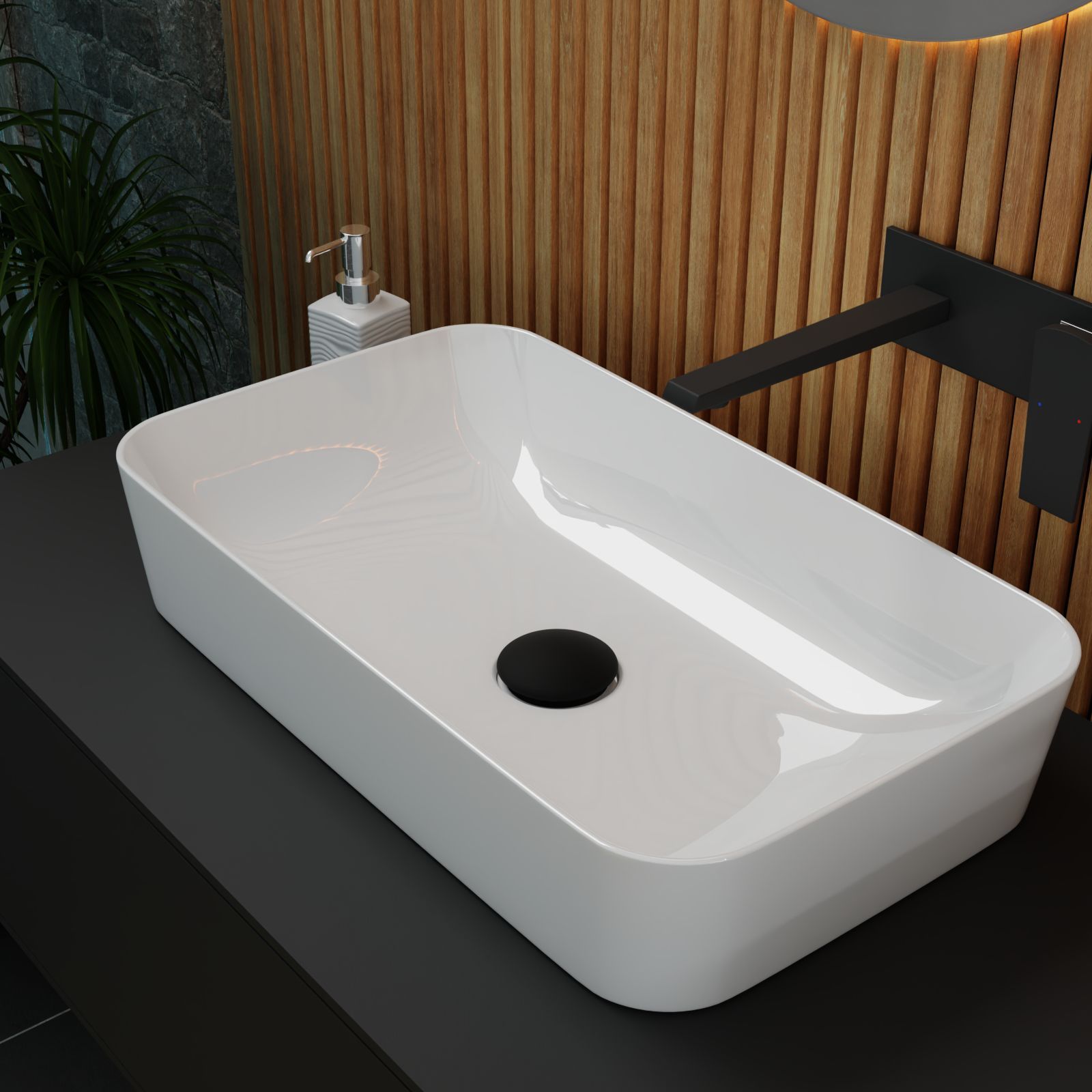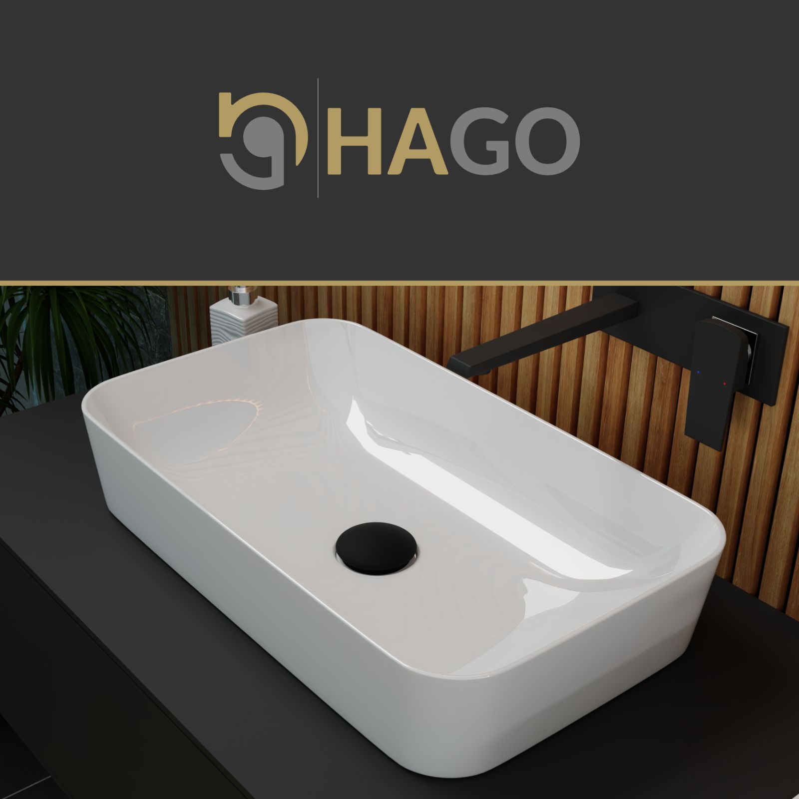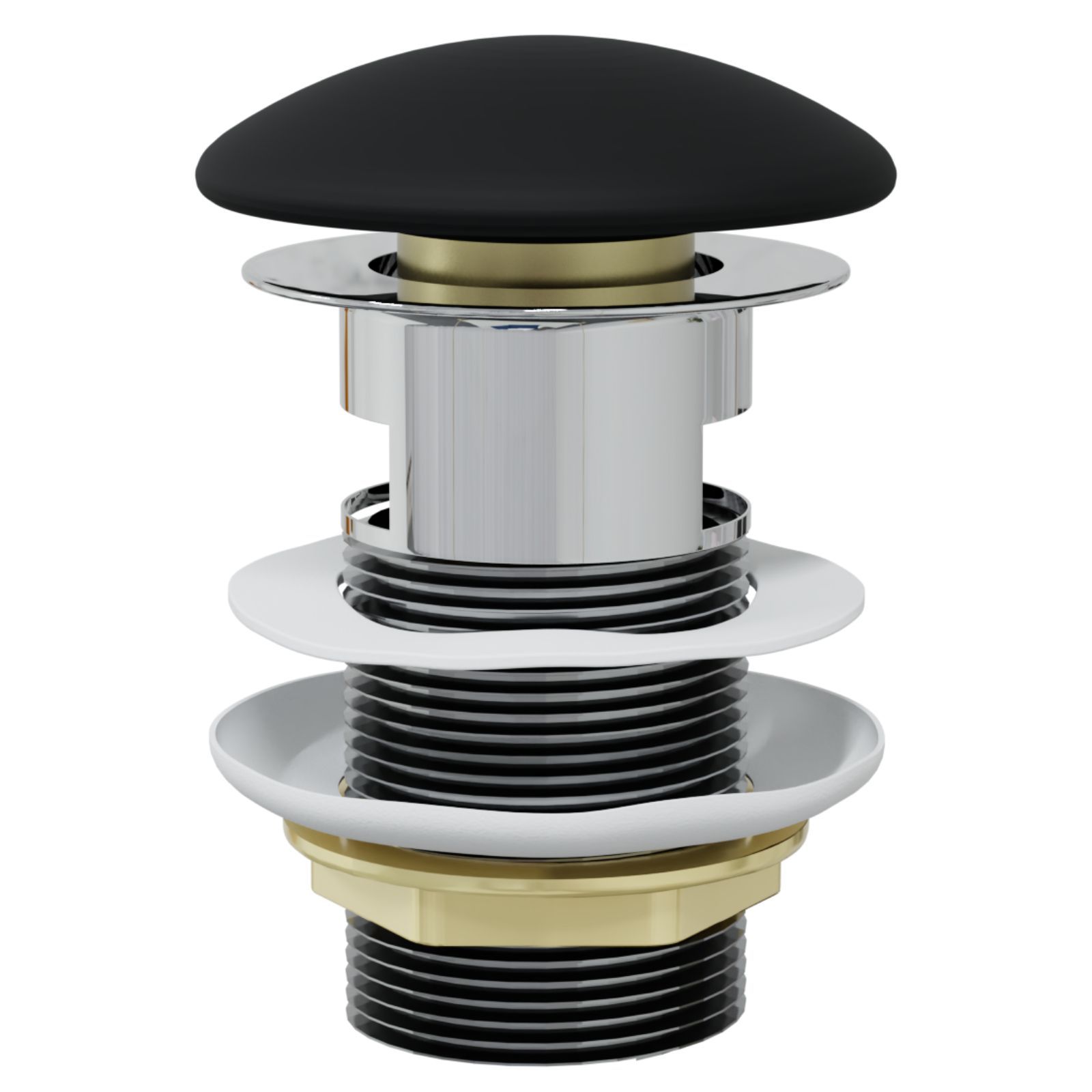 HAGO® Ablaufventil Schwarz Waschbecken mit Überlauf Push-Open Garnitur 1 1/4 Uni
