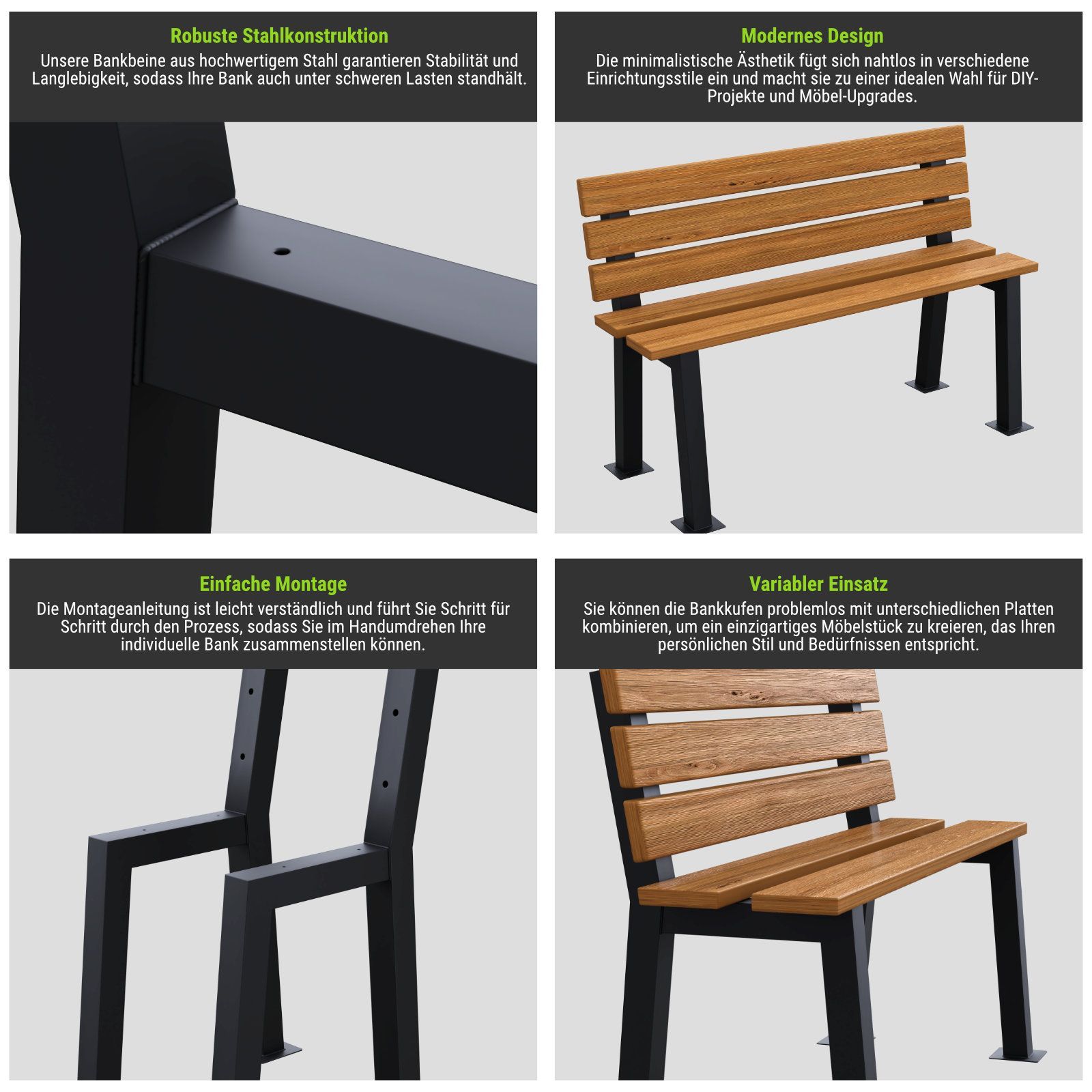 HAGO® Bankbeine 2er Set H-Form Gestell Schwarz Industrial Bankfüße Rückenlehne