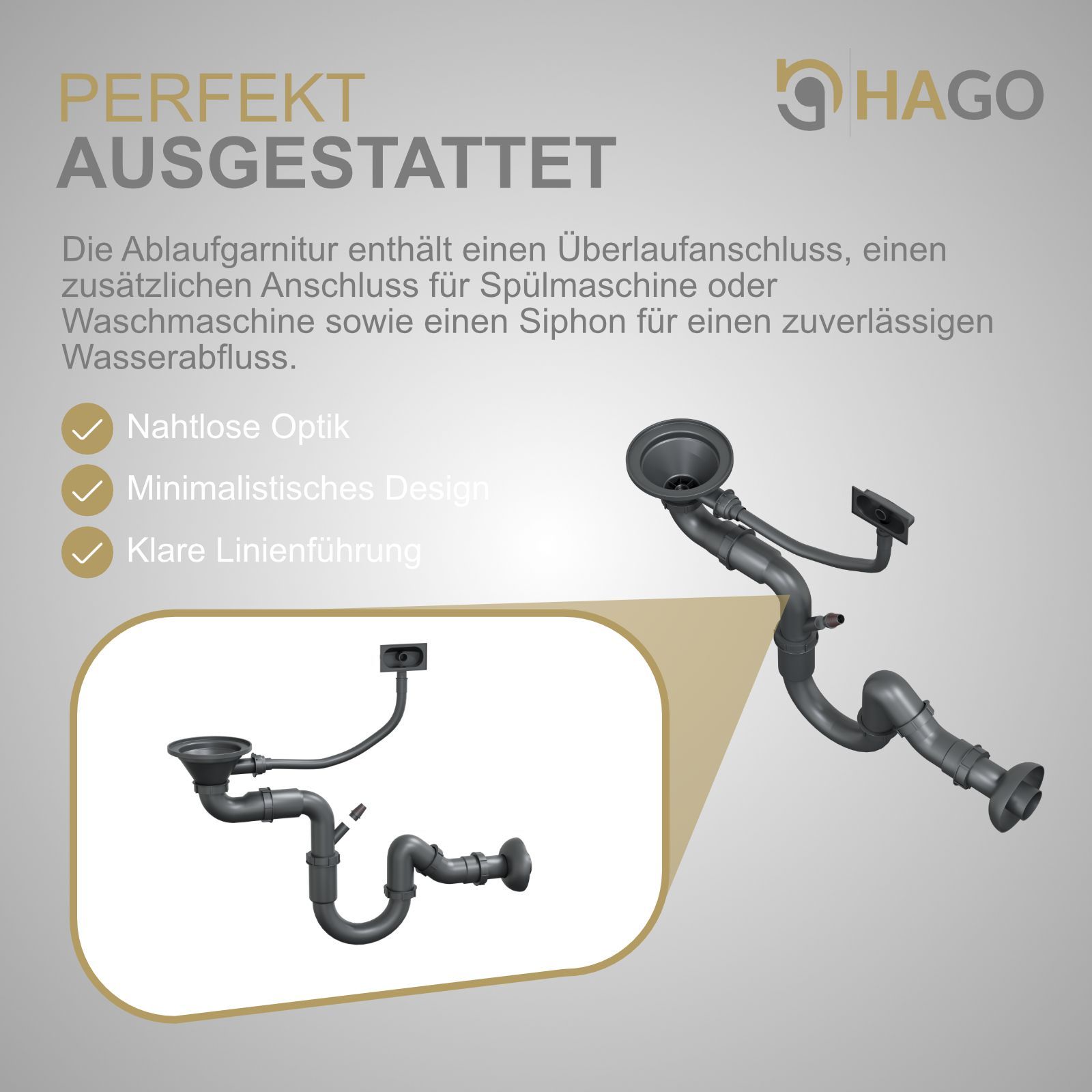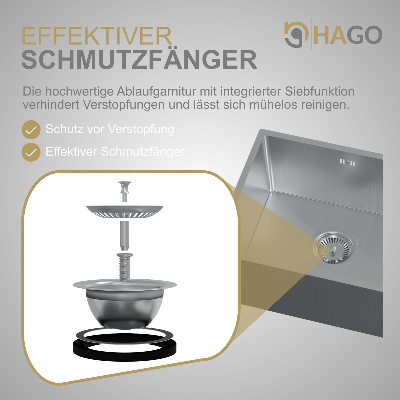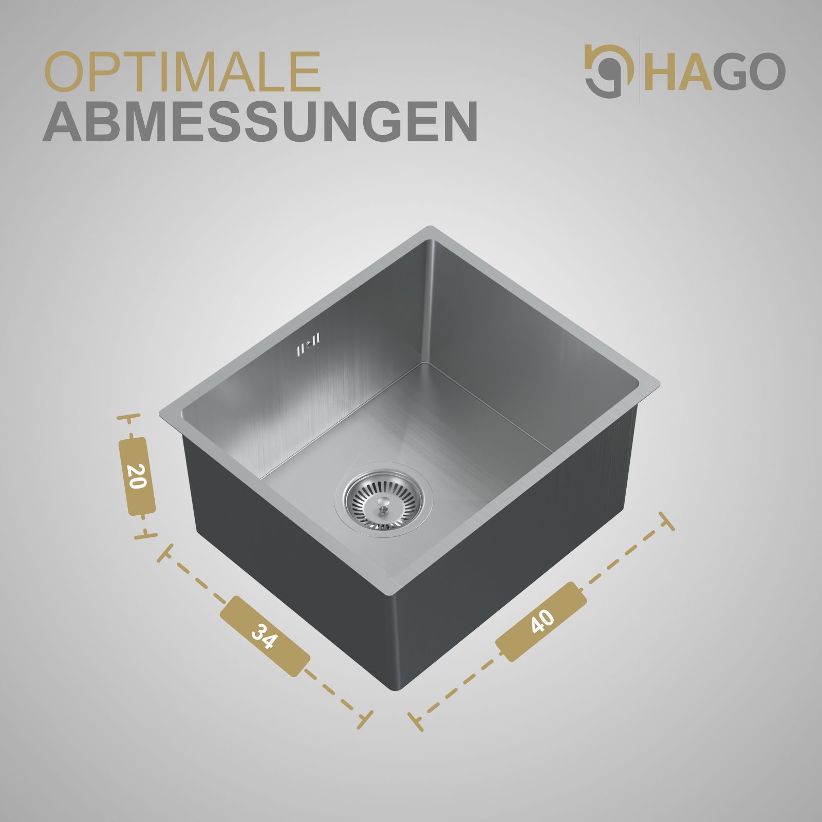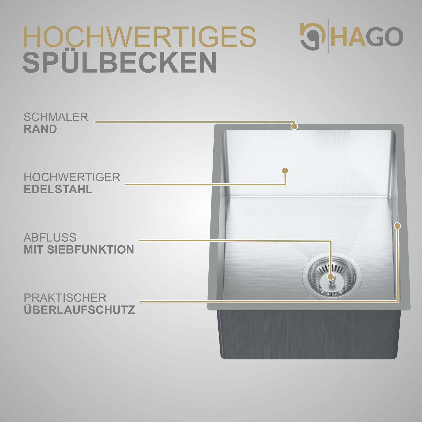 HAGO® Edelstahl Einbauspüle 40x34cm Küchenspüle Spülbecken Ablaufgarnitur silber