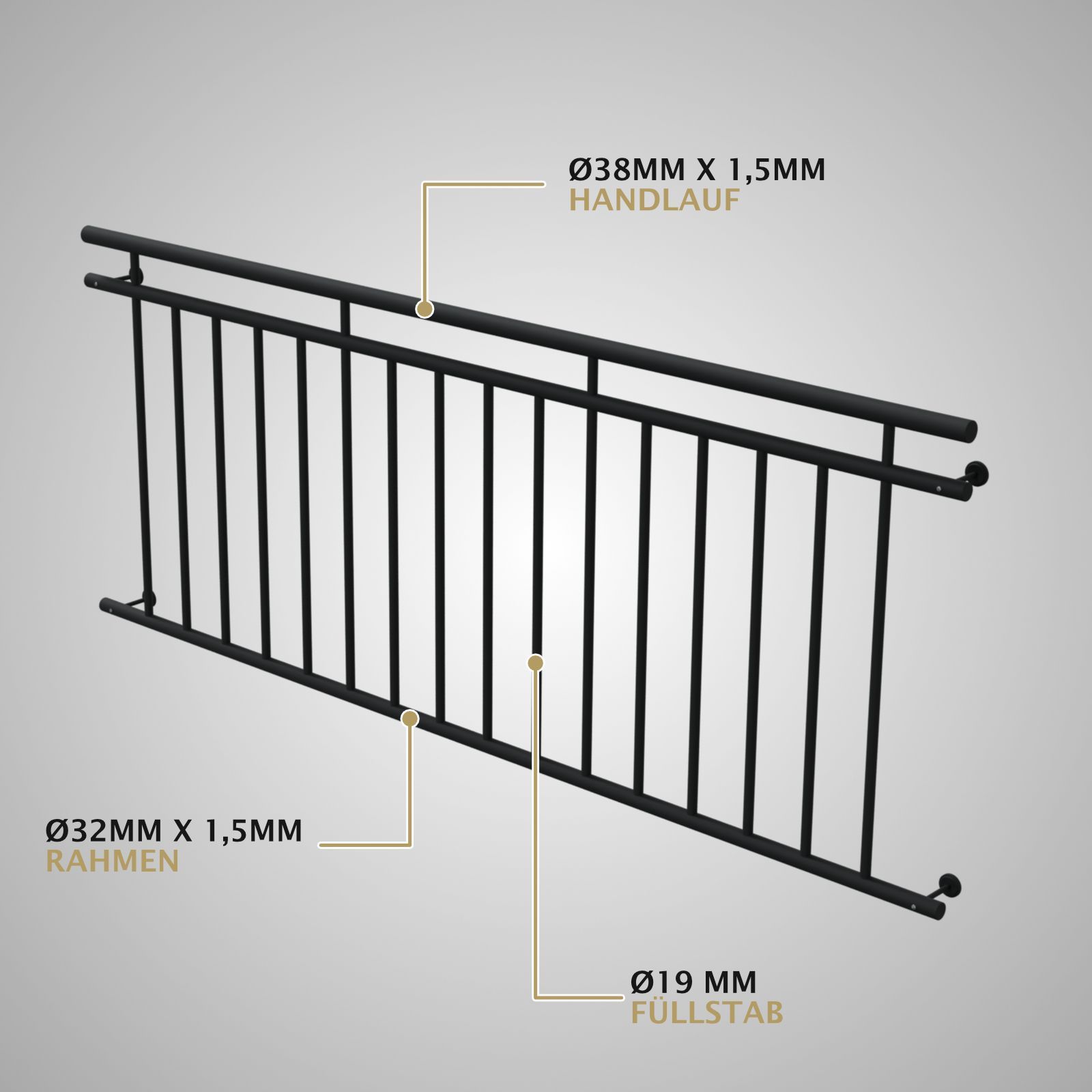 HAGO® Französischer Balkon Stahl Schwarz Fenstergitter Brüstung Geländer 225x90