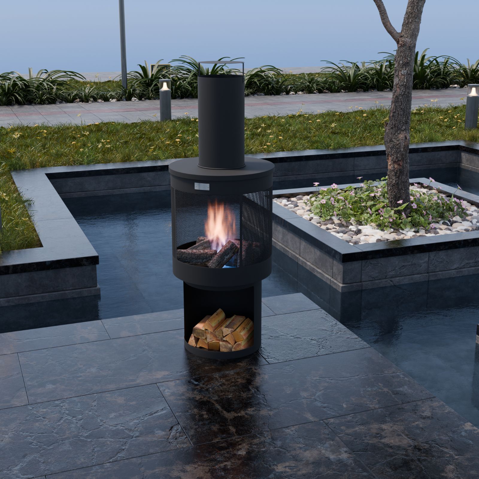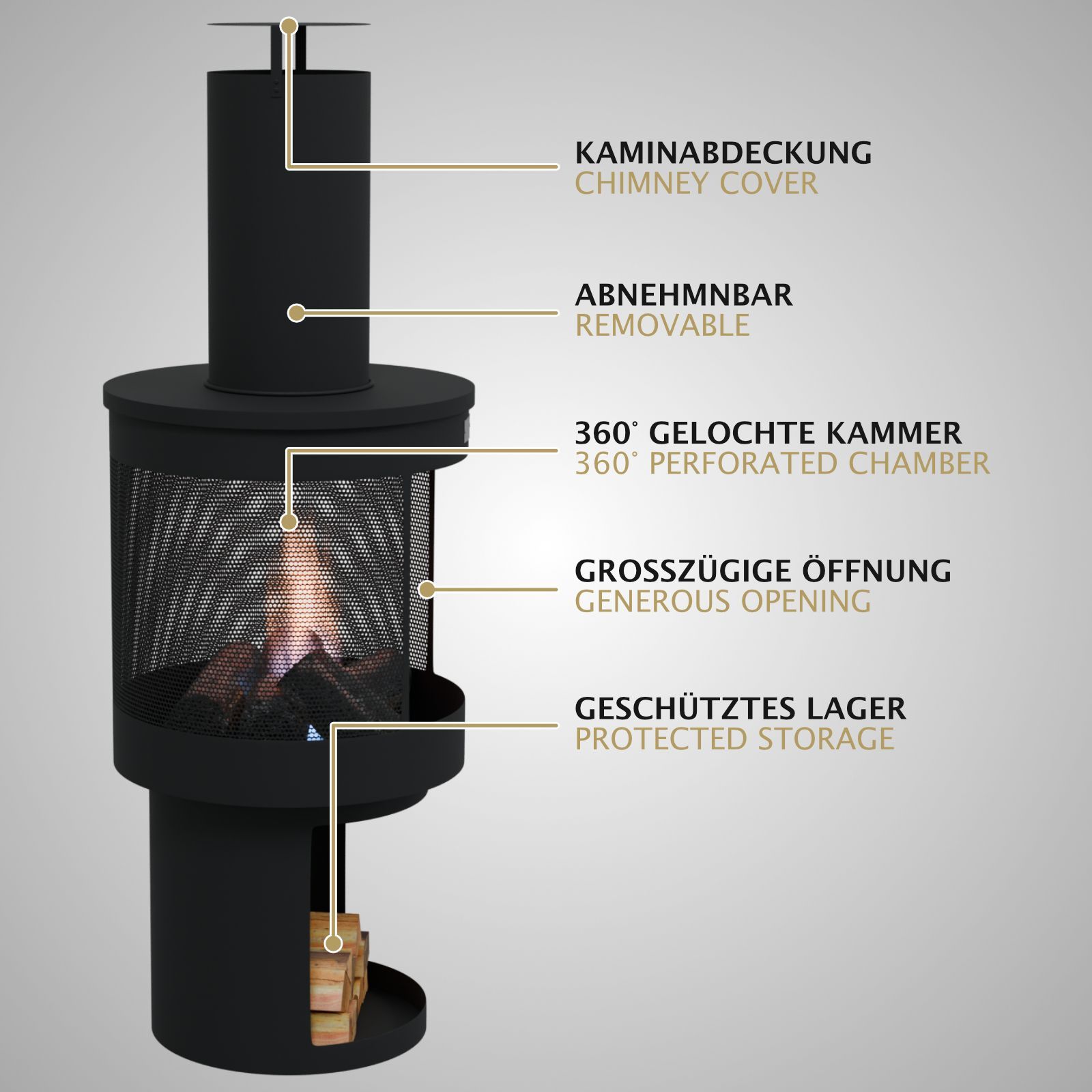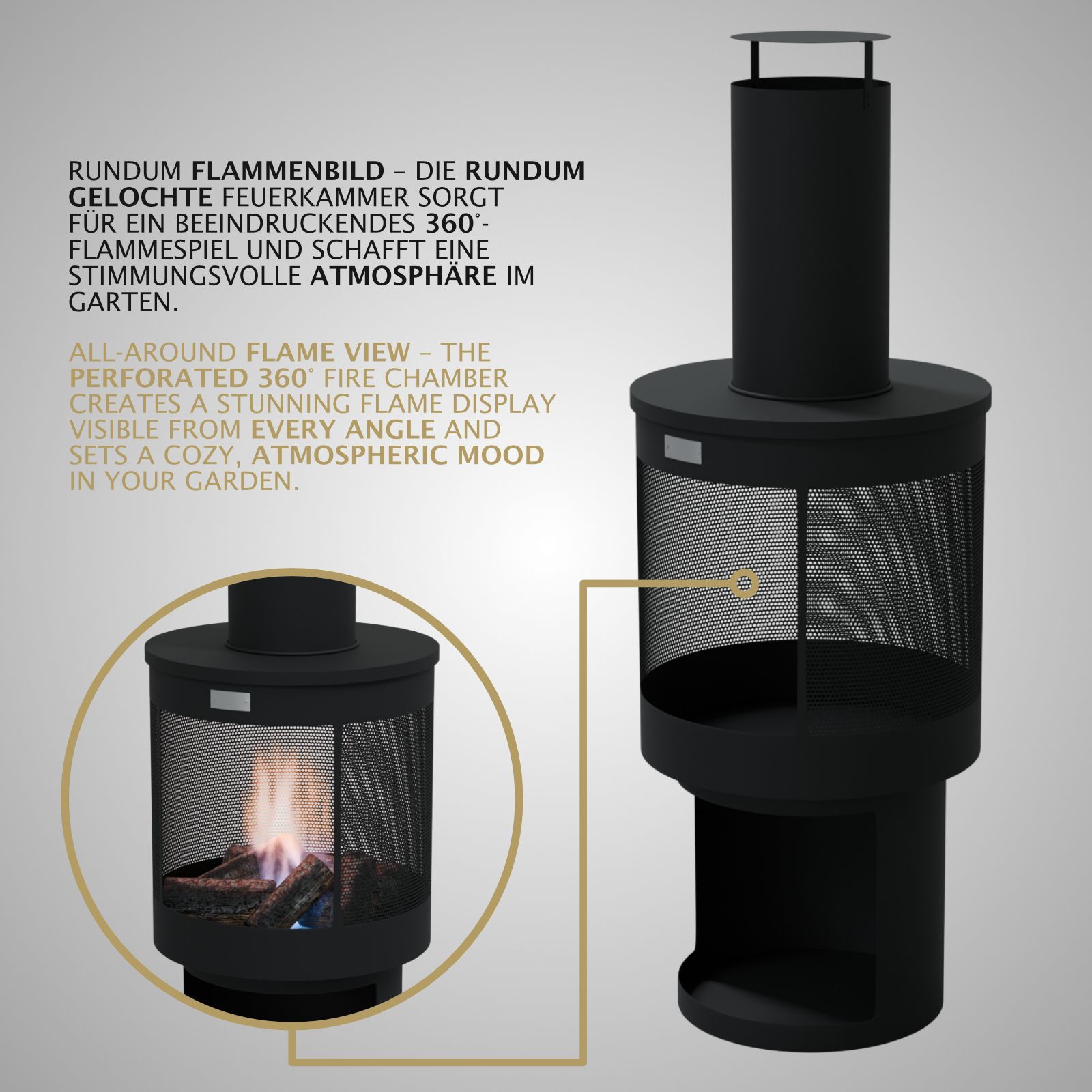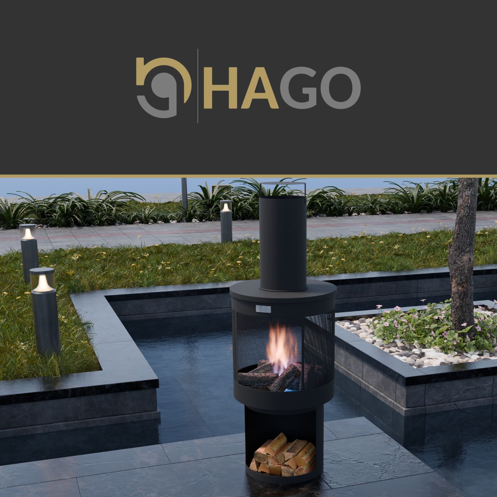 HAGO® Gartenkamin Terrassenofen Gartenofen Stahl Schwarz Schürhaken Feuerstelle