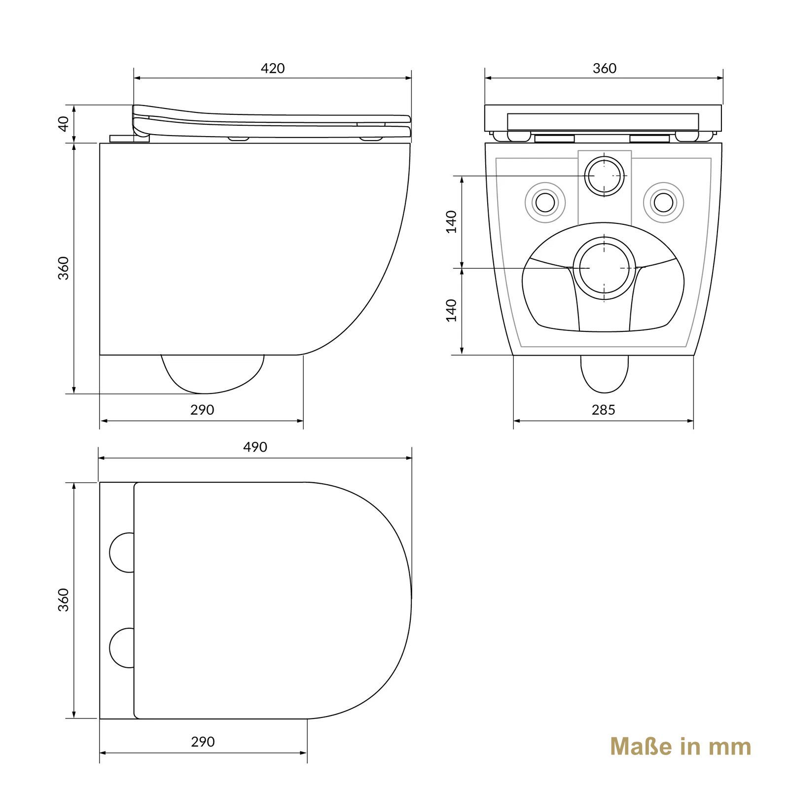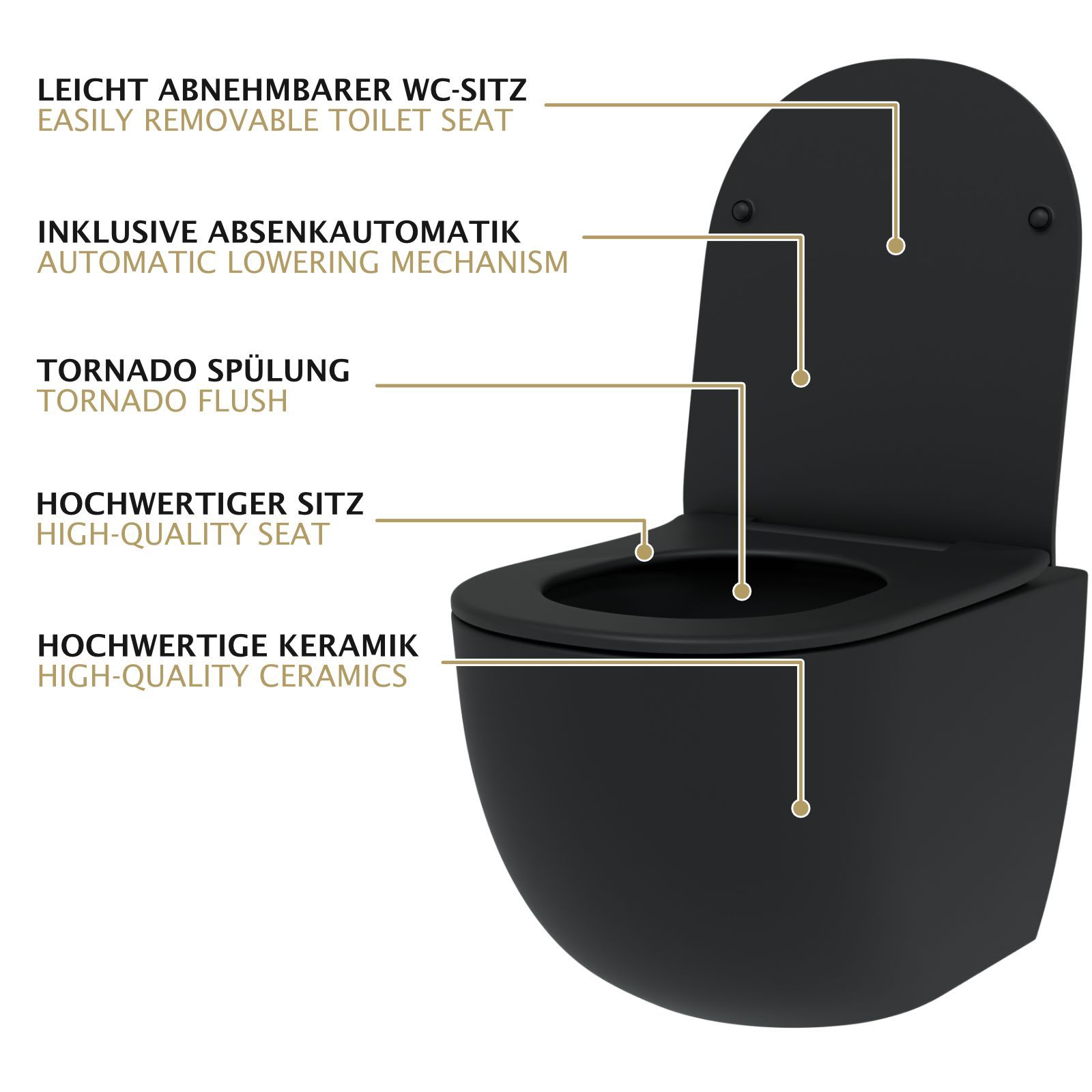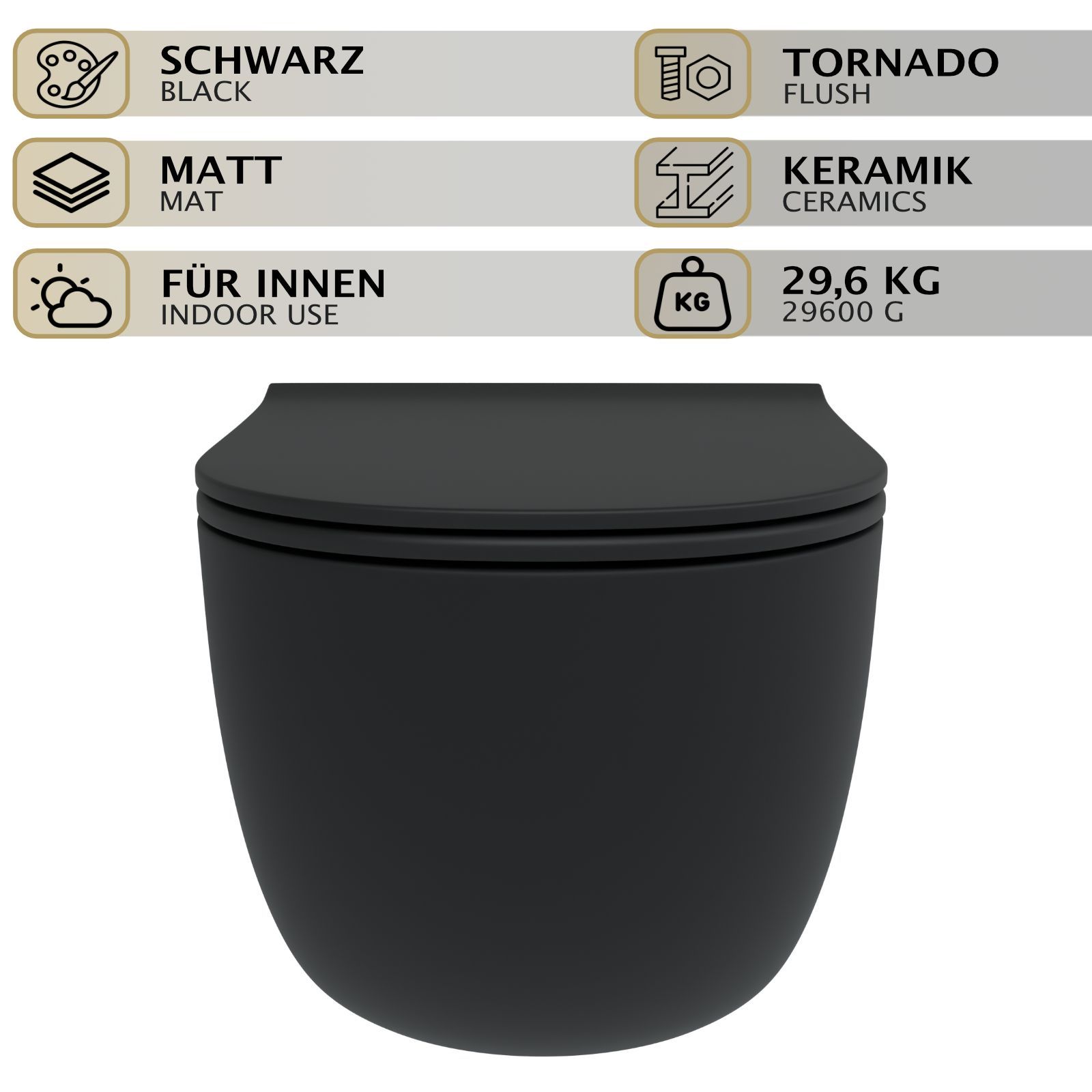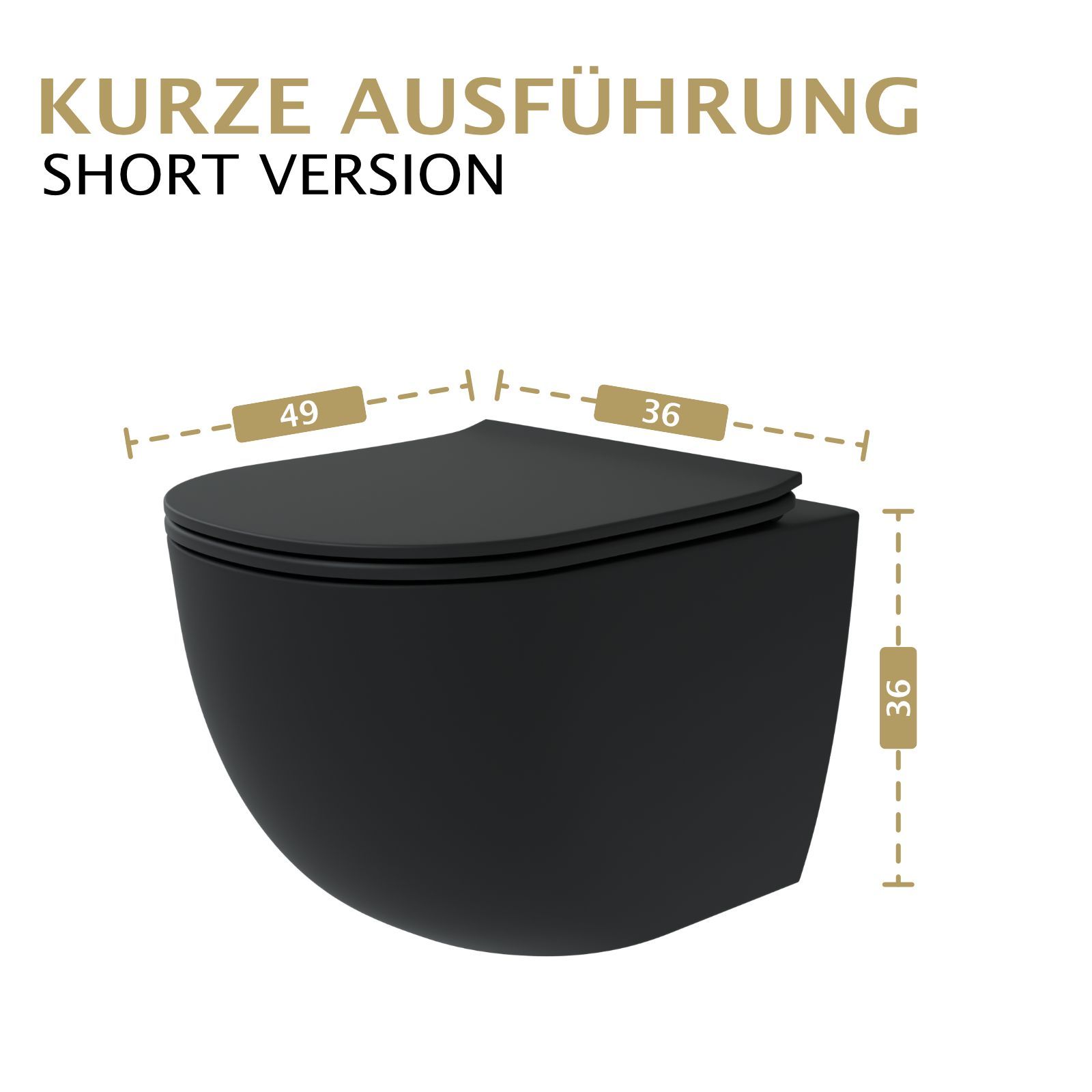 HAGO® Hänge WC Spülrandlos Tornadospülung Softclose Duroplast Schwarz 49cm Kurz
