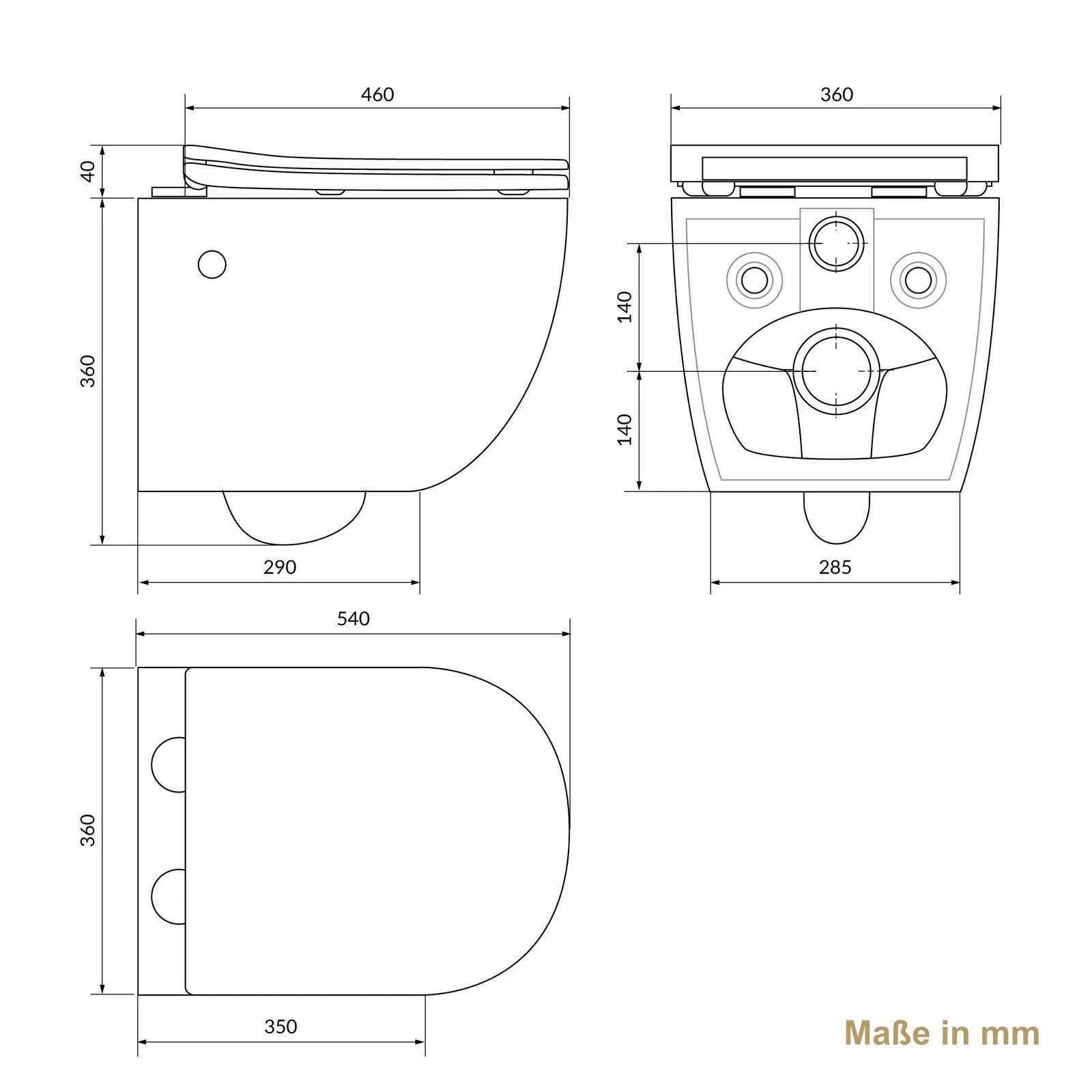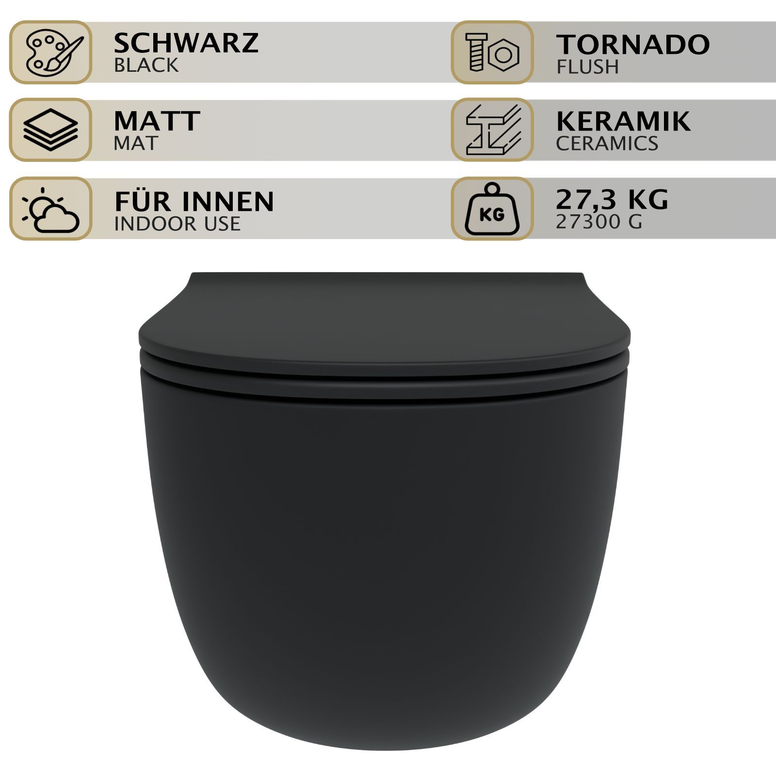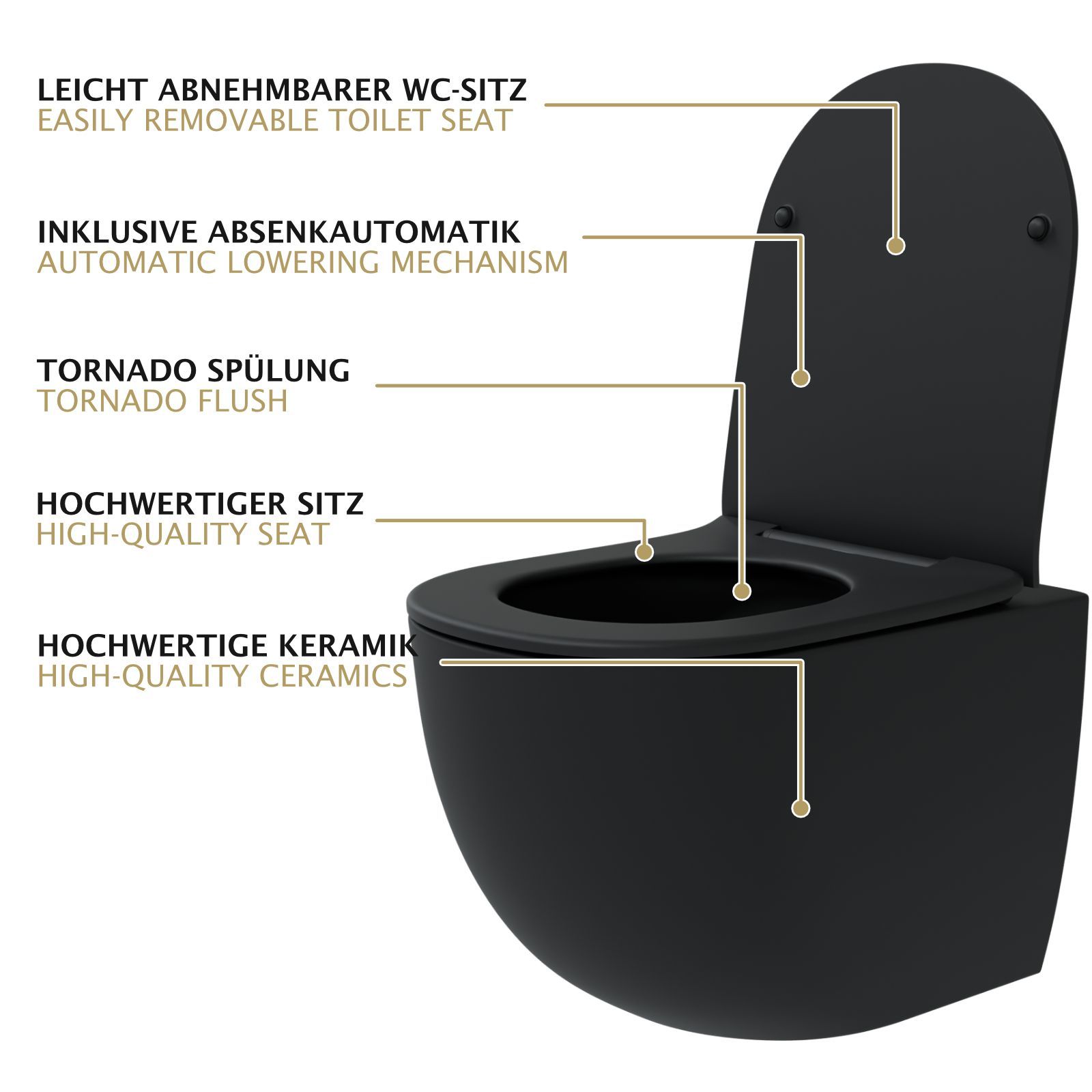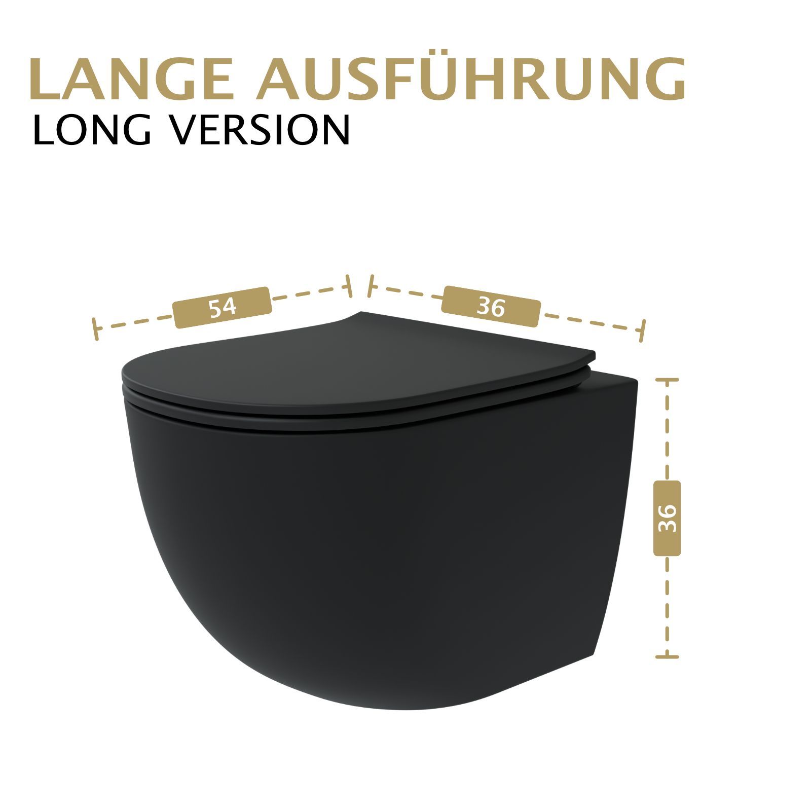 HAGO® Hänge WC Spülrandlos Tornadospülung Softclose Duroplast Schwarz 54cm Lang