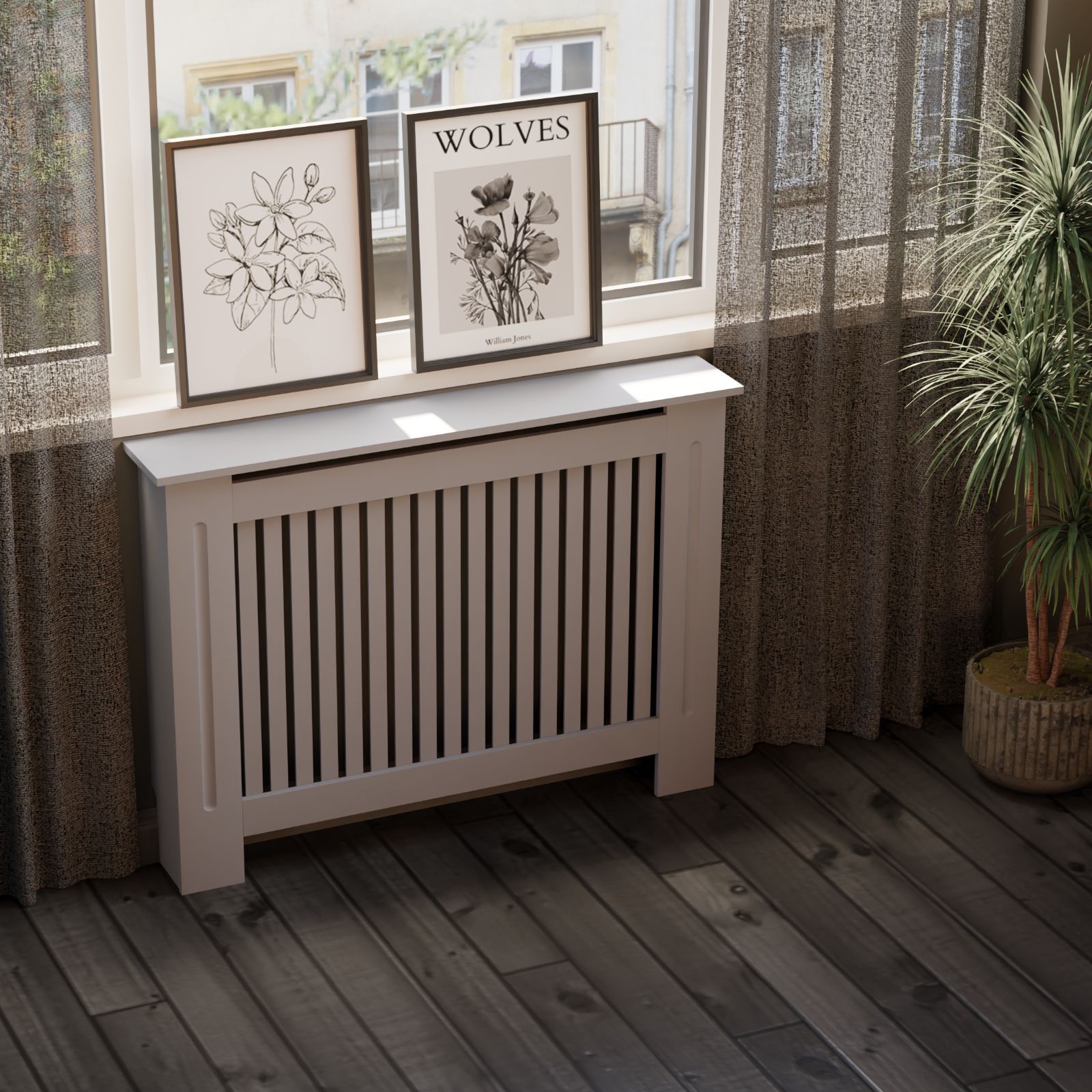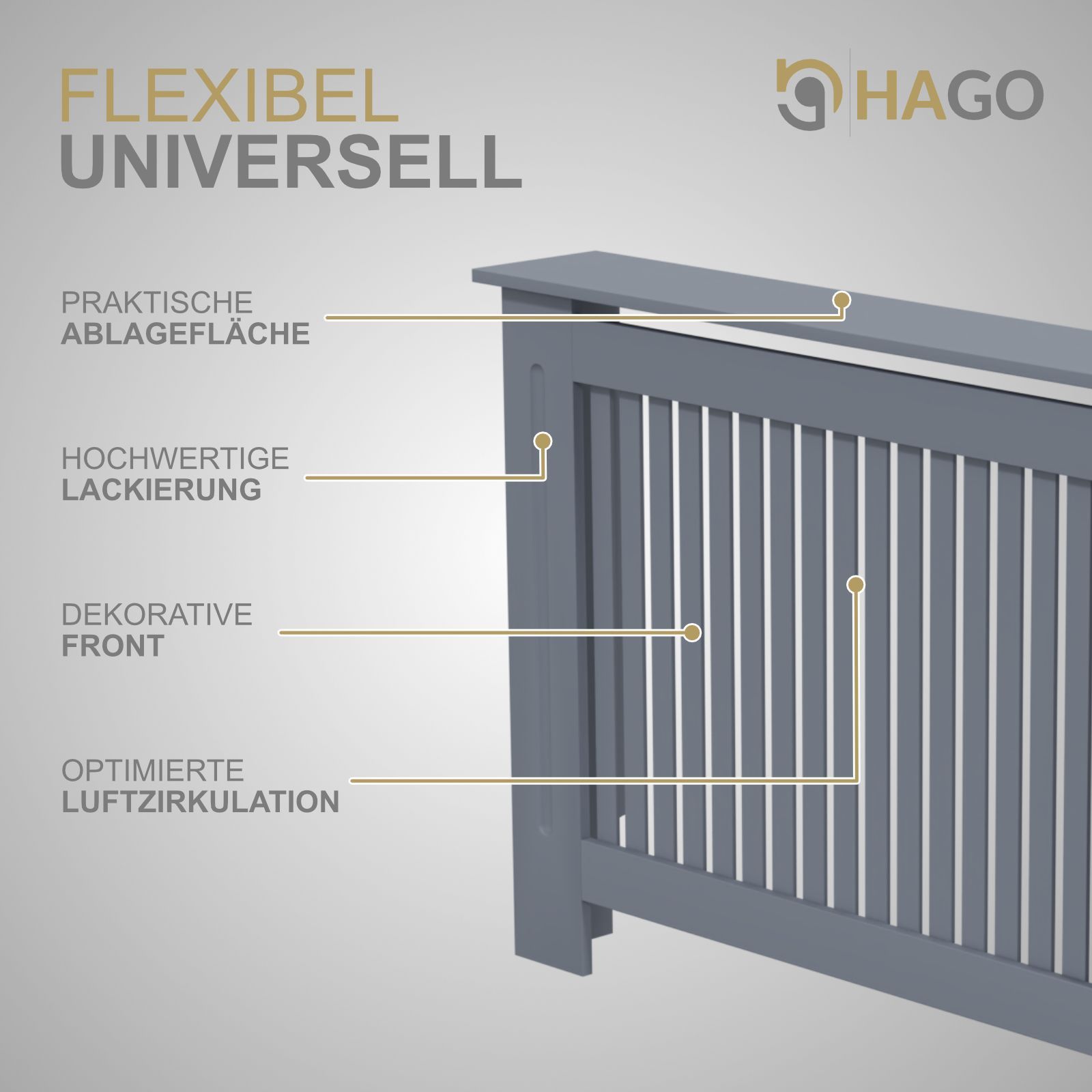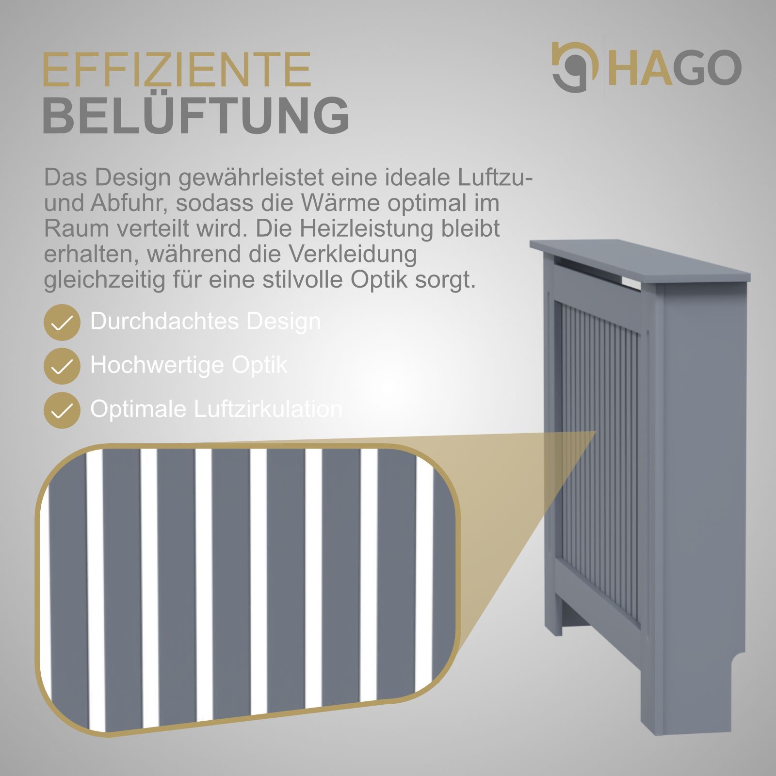 HAGO® Heizkörperverkleidung Heizungsabdeckung Holz 112x19x82 Grau Landhaus Stil