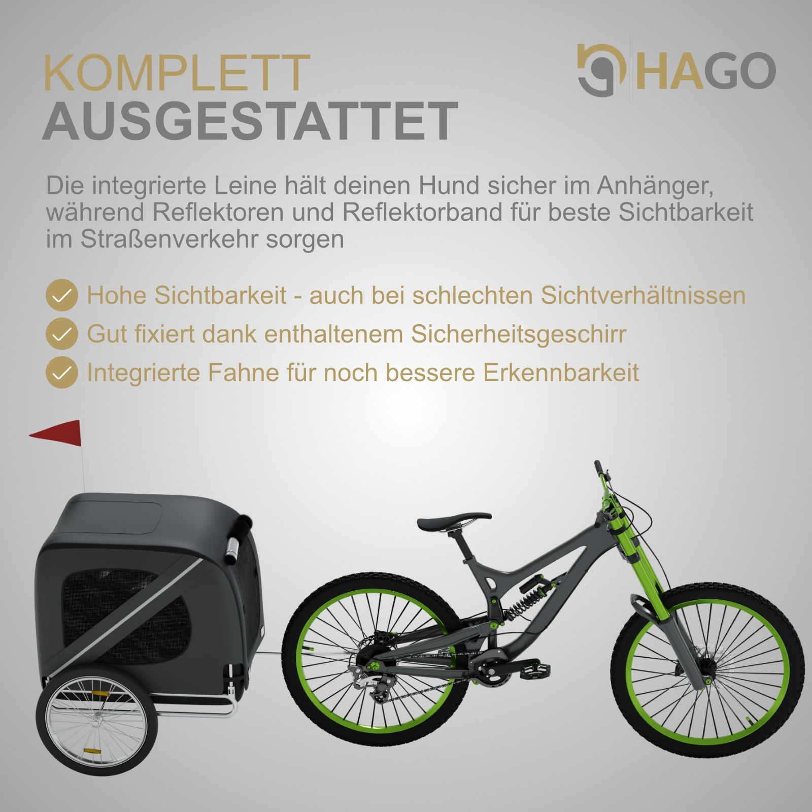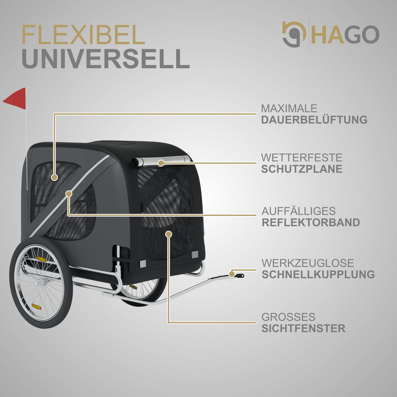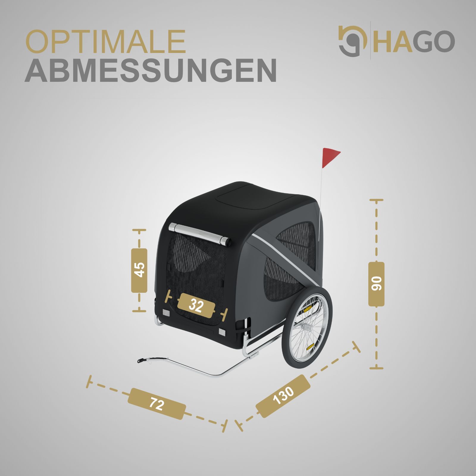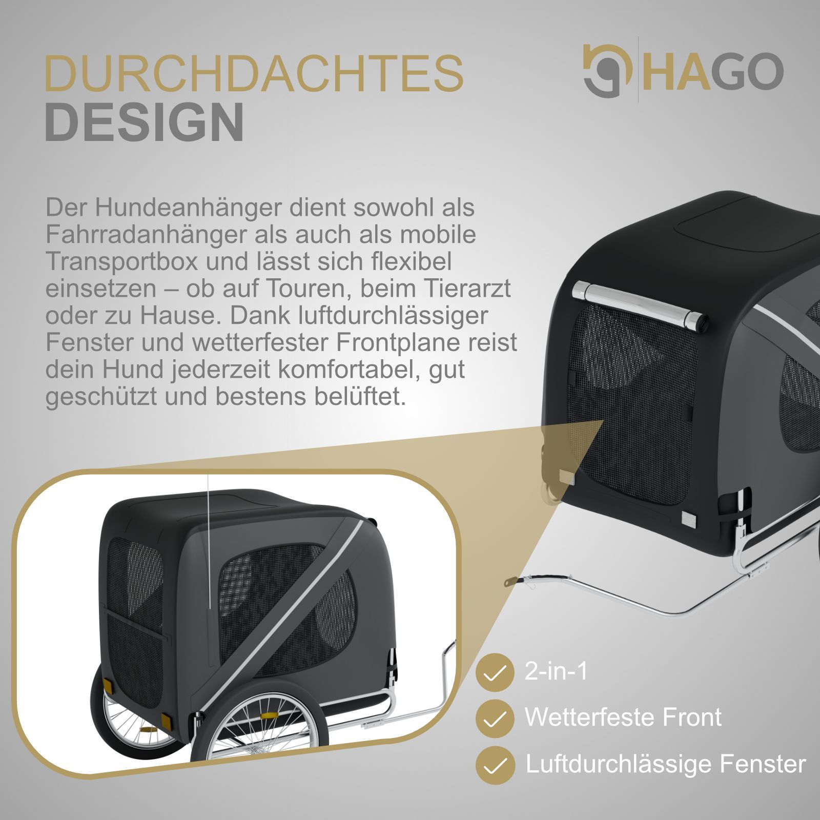 HAGO® Hundeanhänger Fahrrad Buggy Transportbox klappbar Stahl 40kg Schwarz Grau