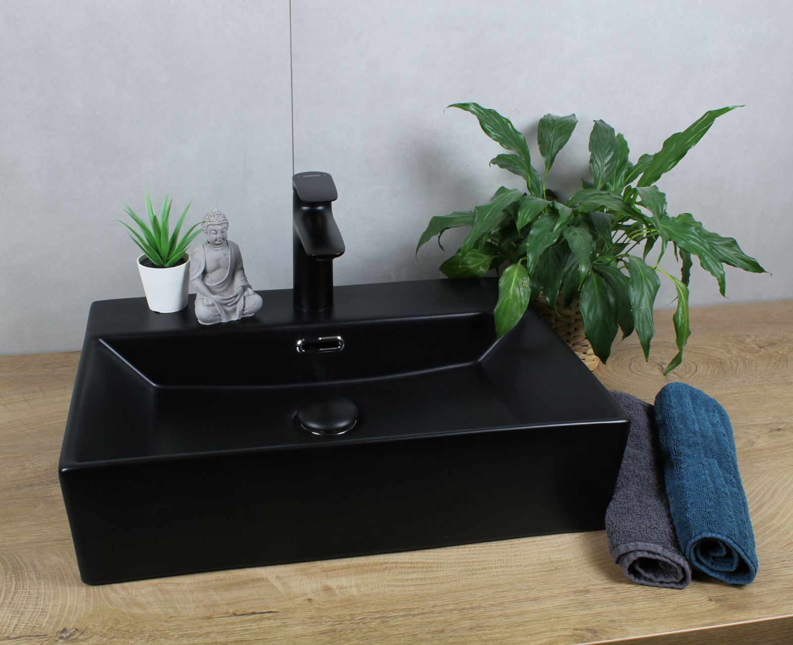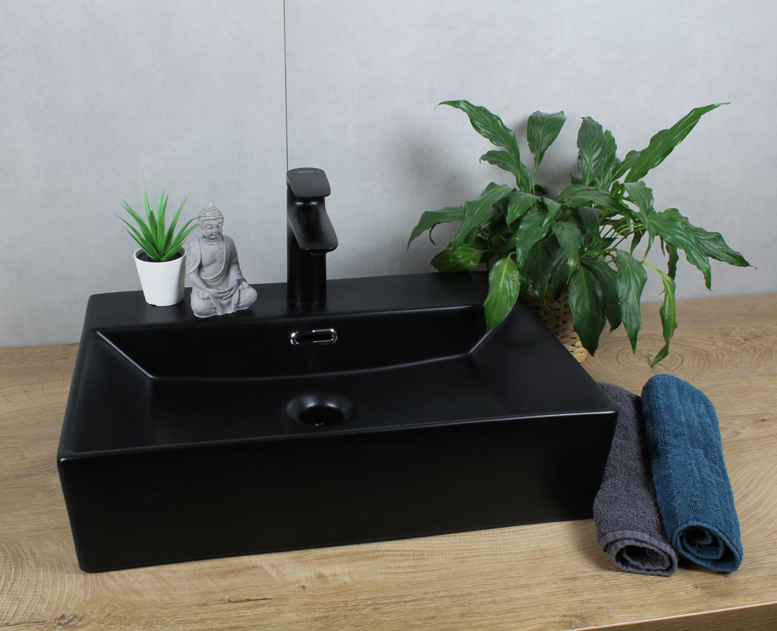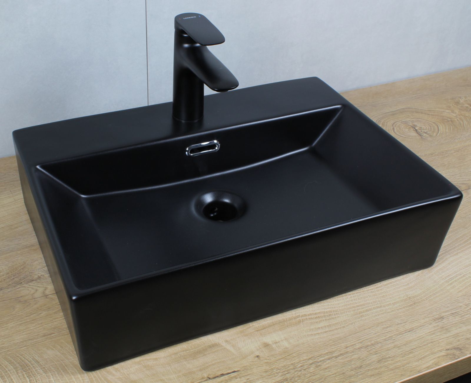 HAGO® Keramik Waschbecken eckig 510x360x130 mm schwarz matt mit Überlauf Aufsatz