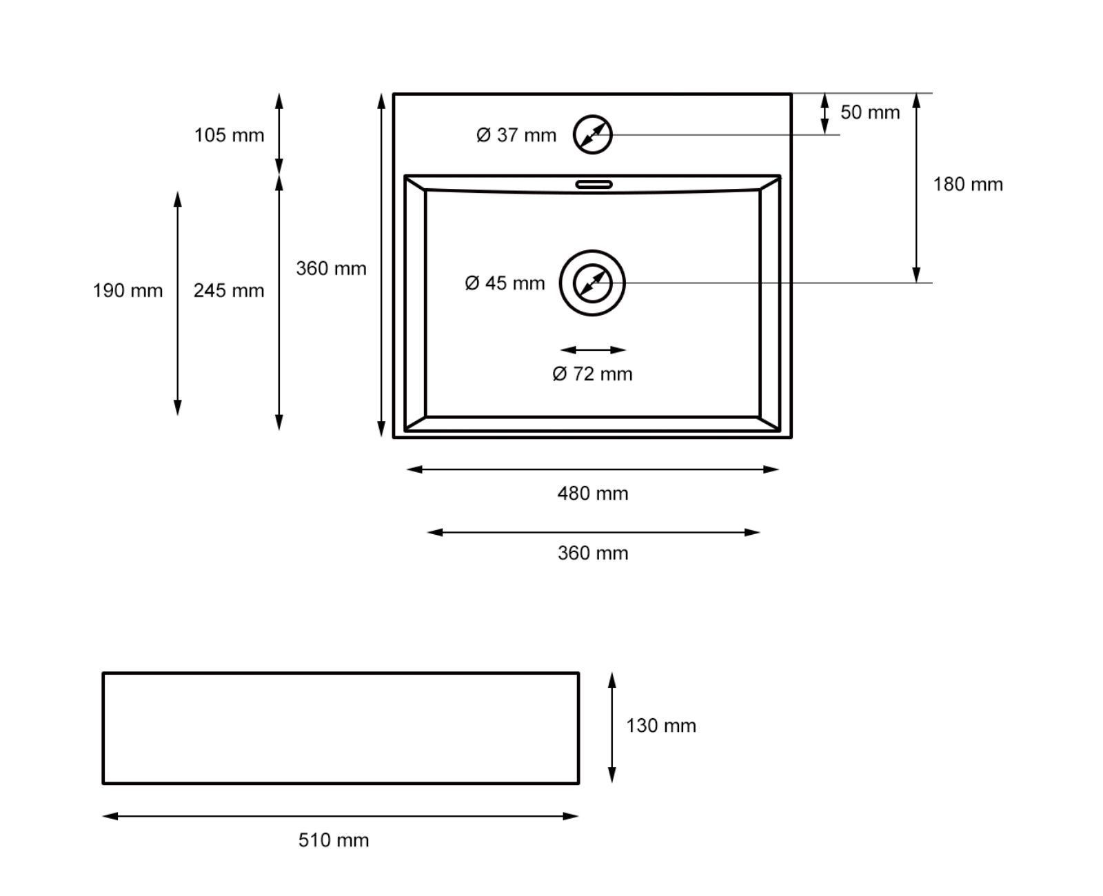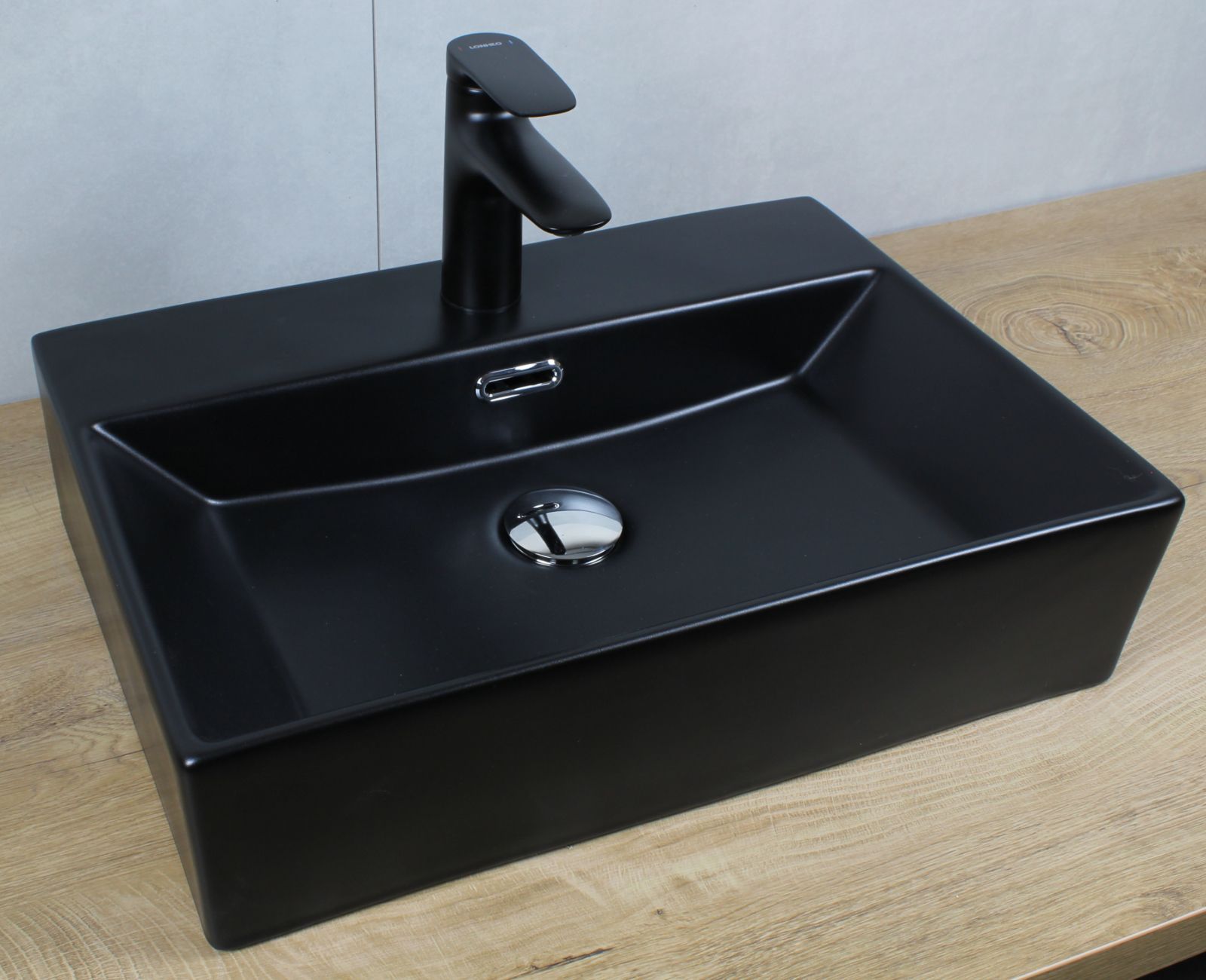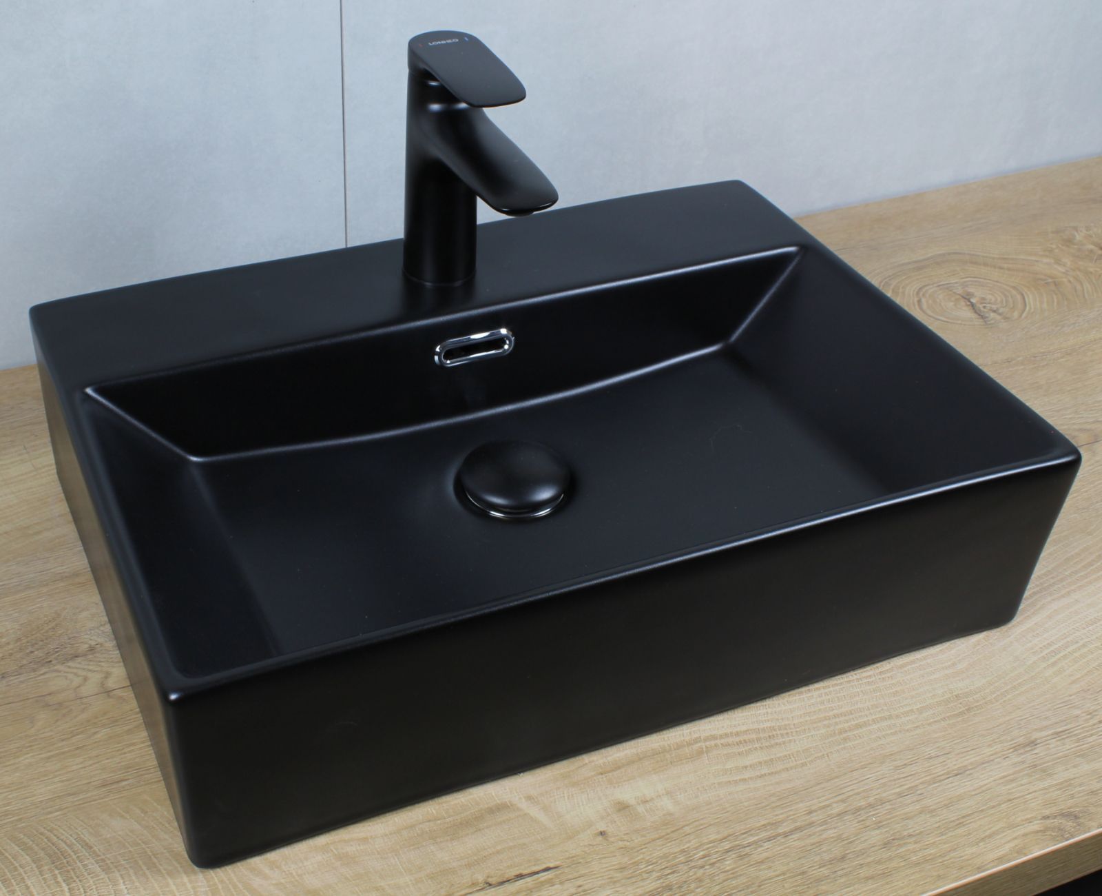 HAGO® Keramik Waschbecken eckig 510x360x130 mm schwarz matt mit Überlauf Aufsatz