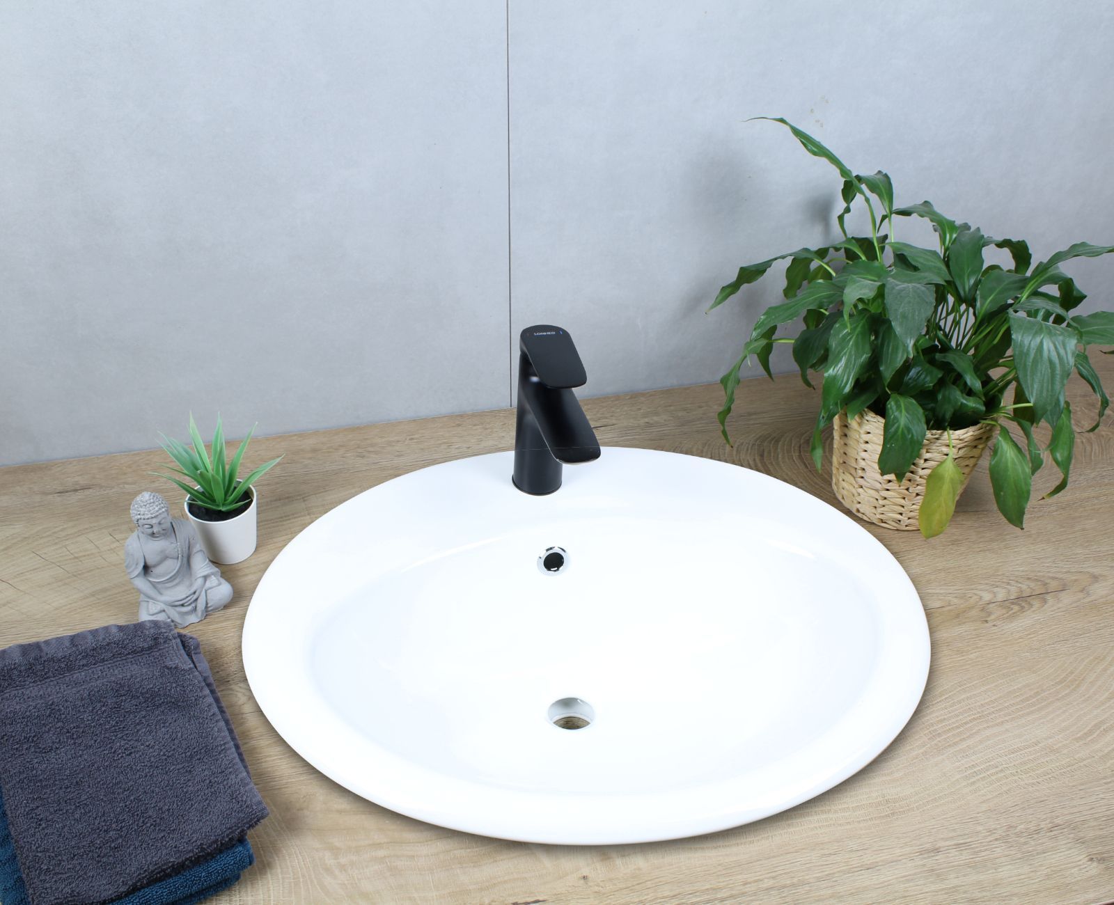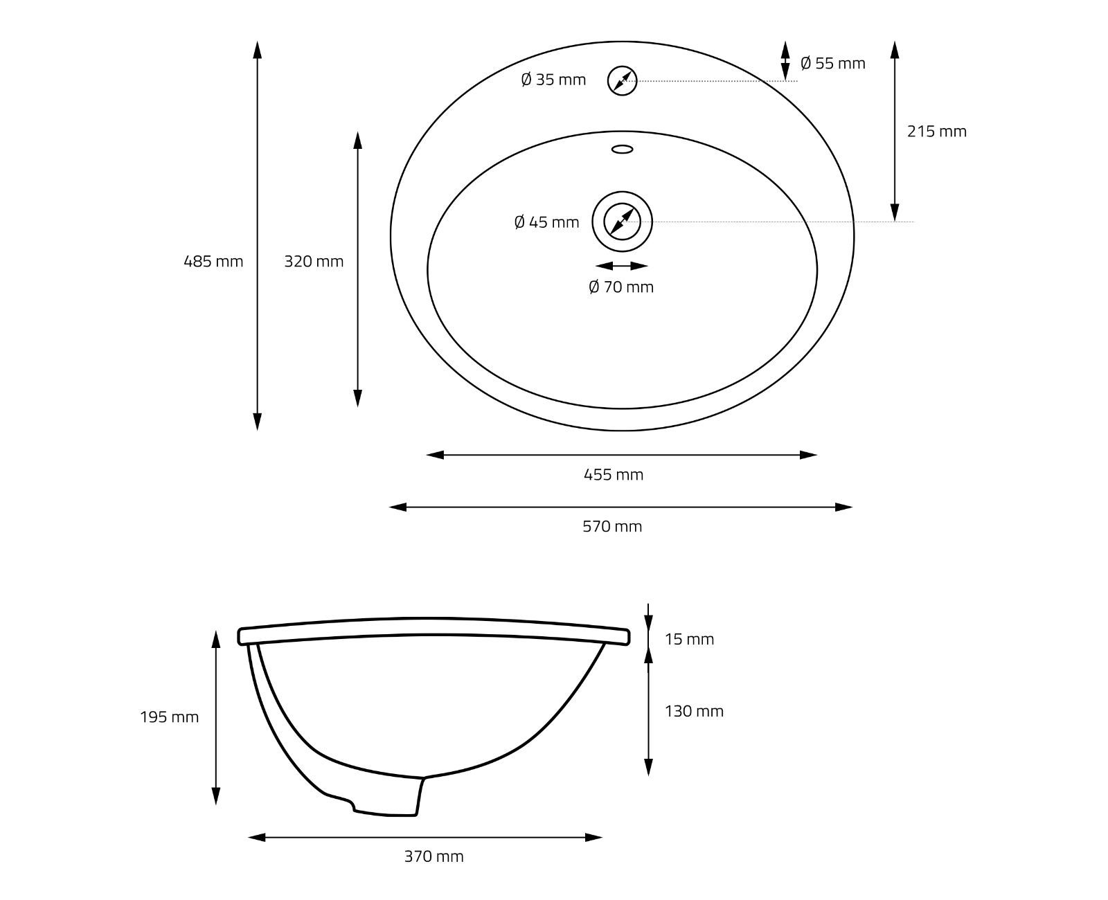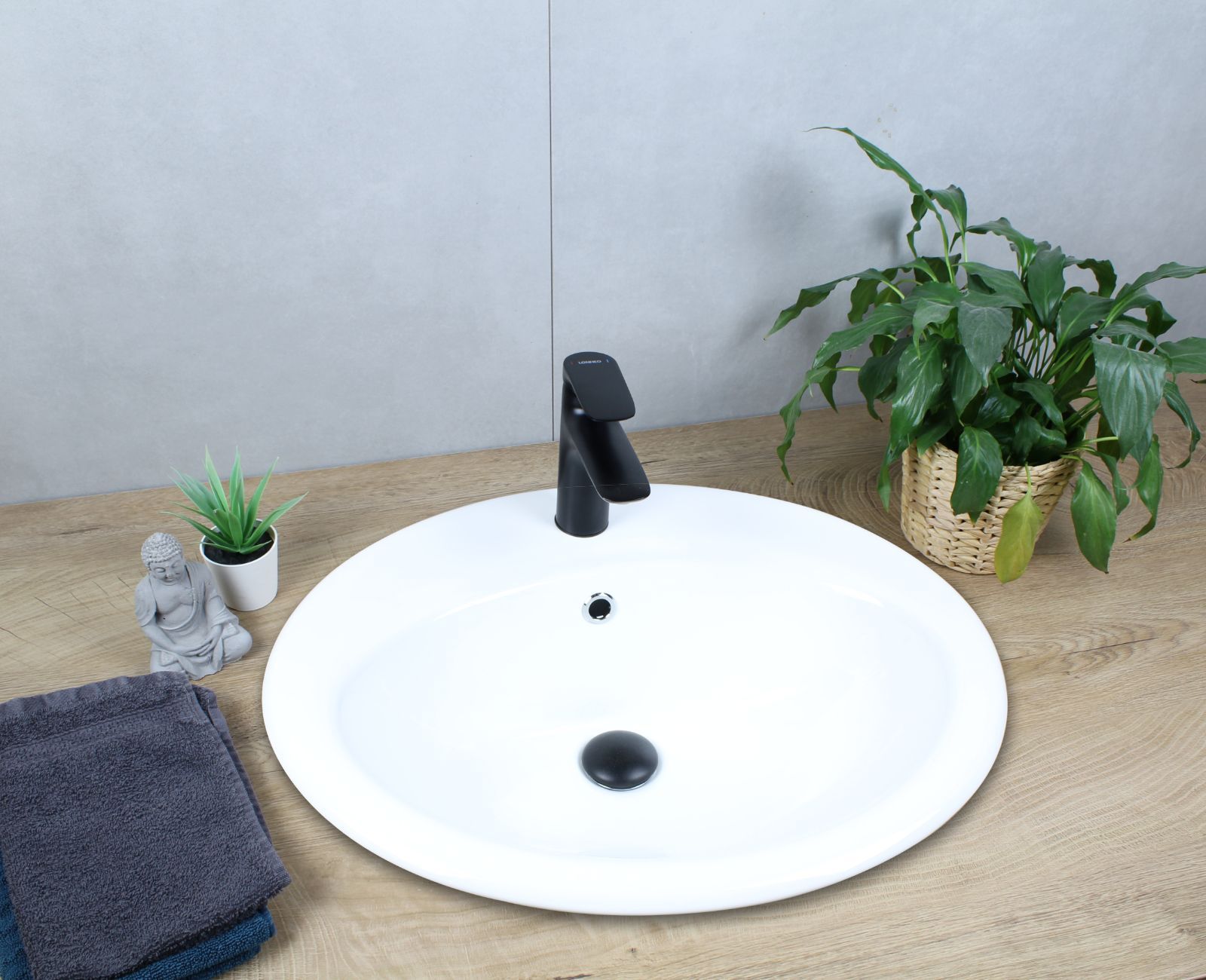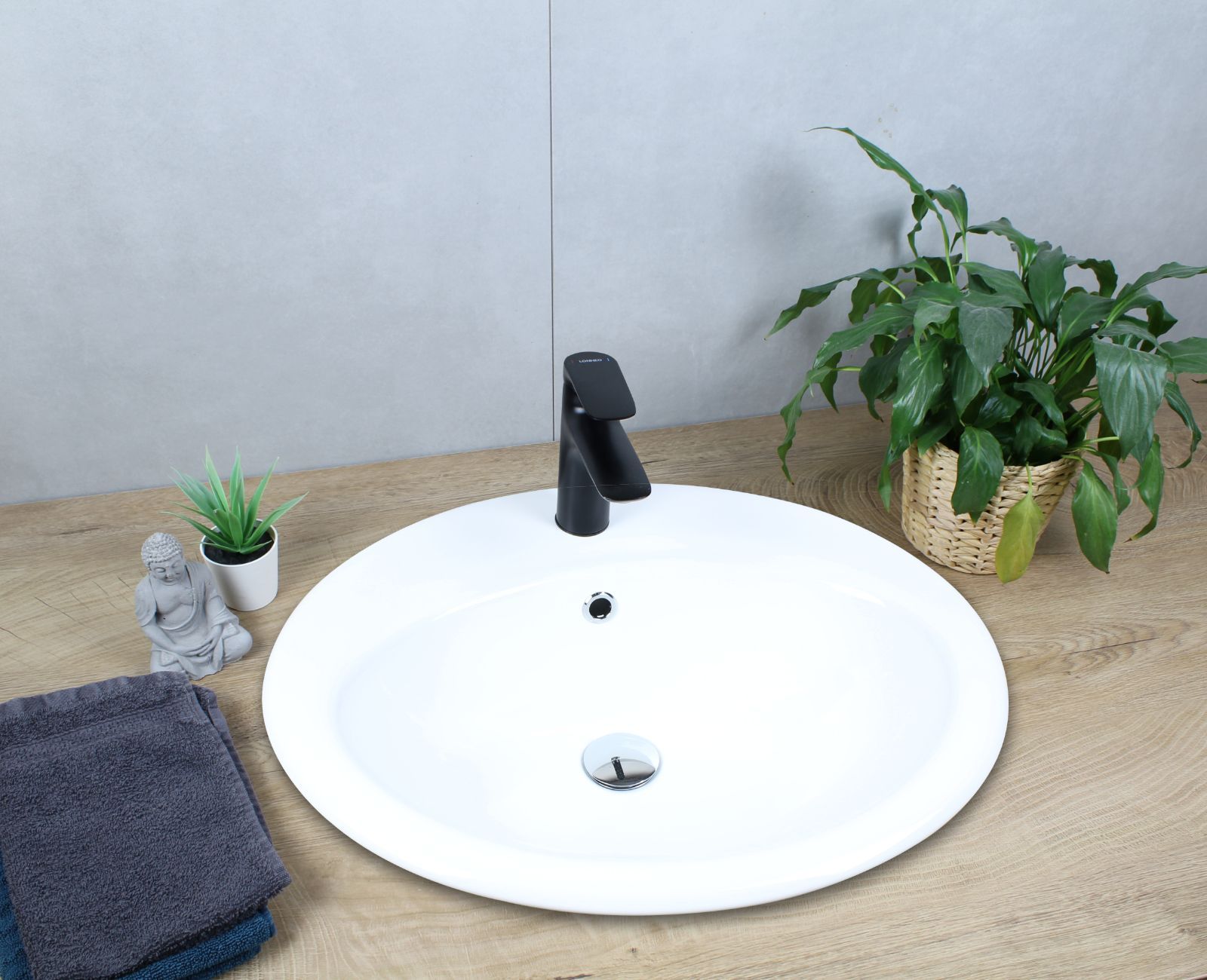 HAGO® Keramik Waschbecken oval 570x485x195 weiß mit Überlauf Einbauwaschbecken
