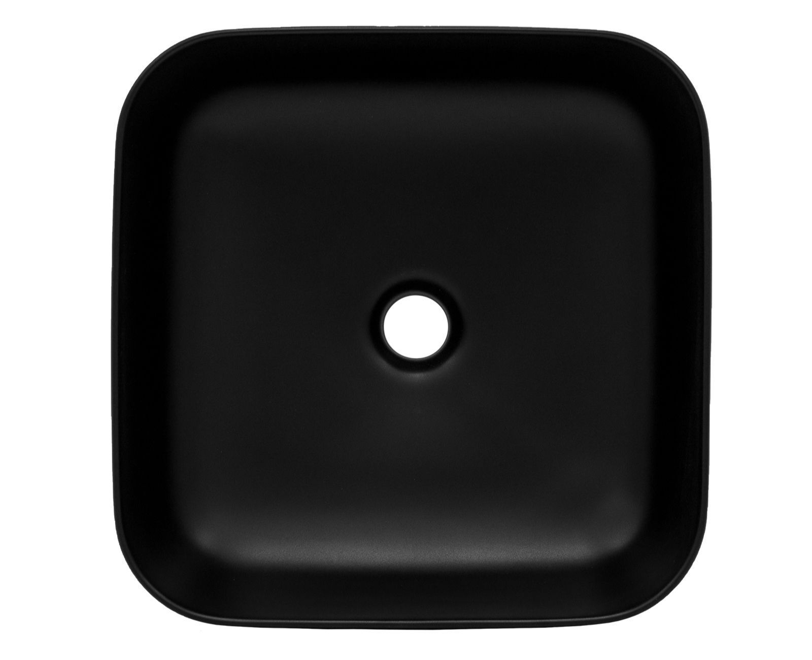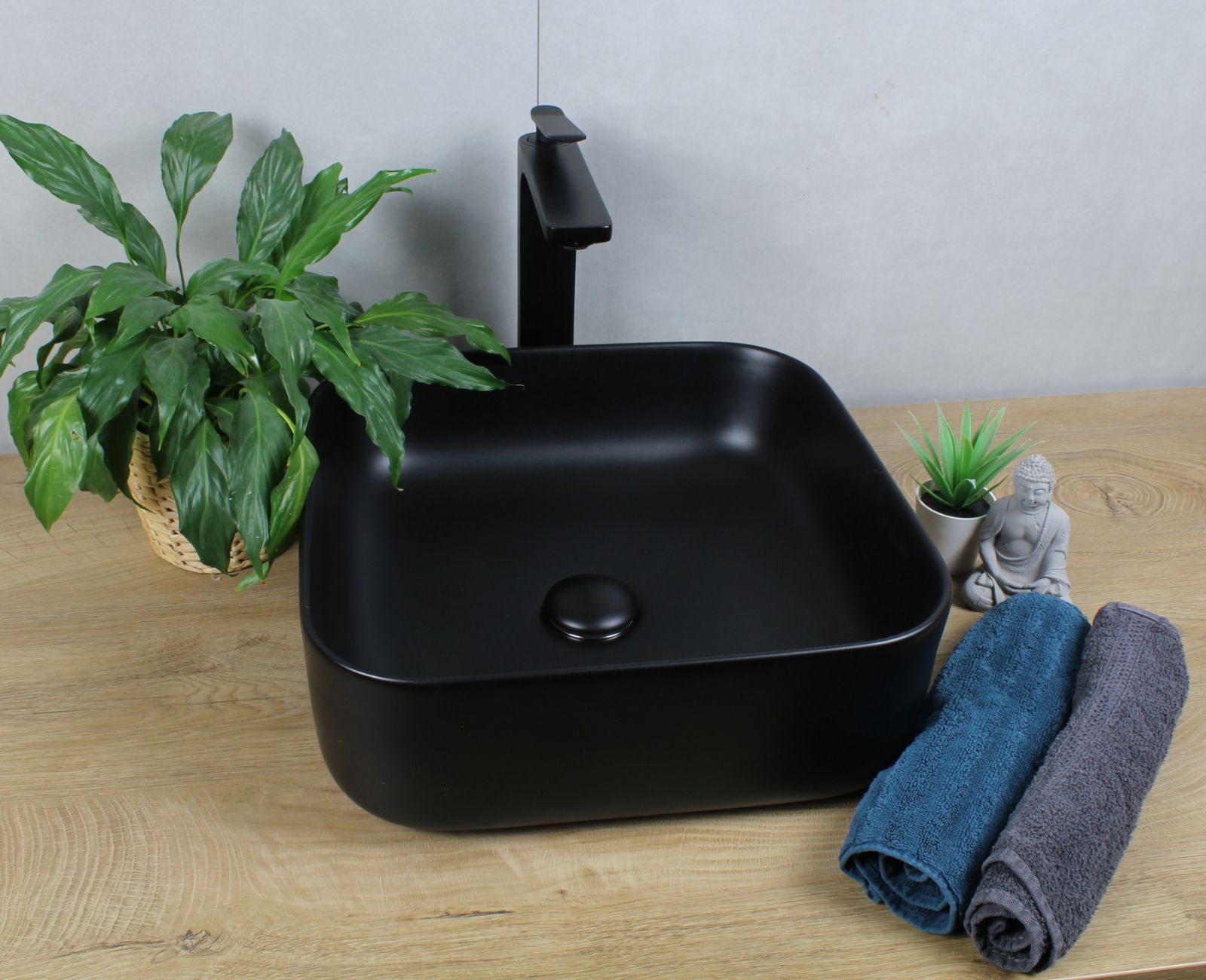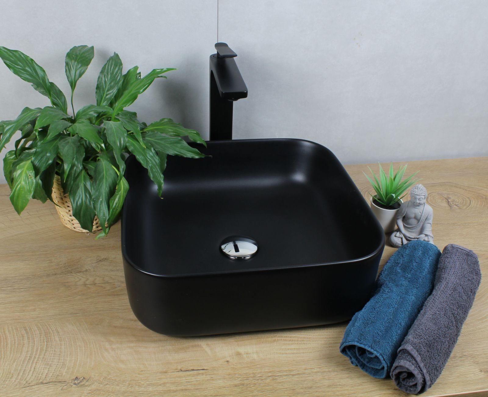 HAGO® Keramik Waschbecken quadratisch 385x385x140 schwarz ohne Überlauf Aufsatz