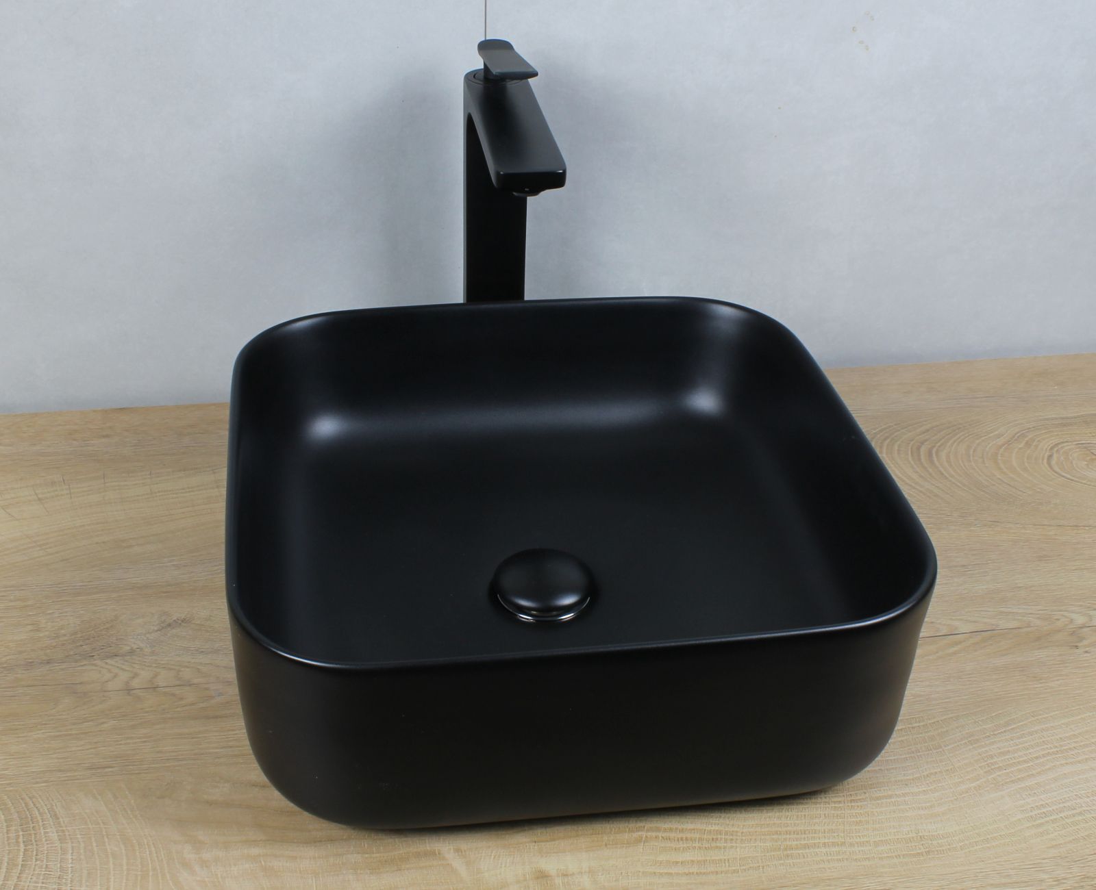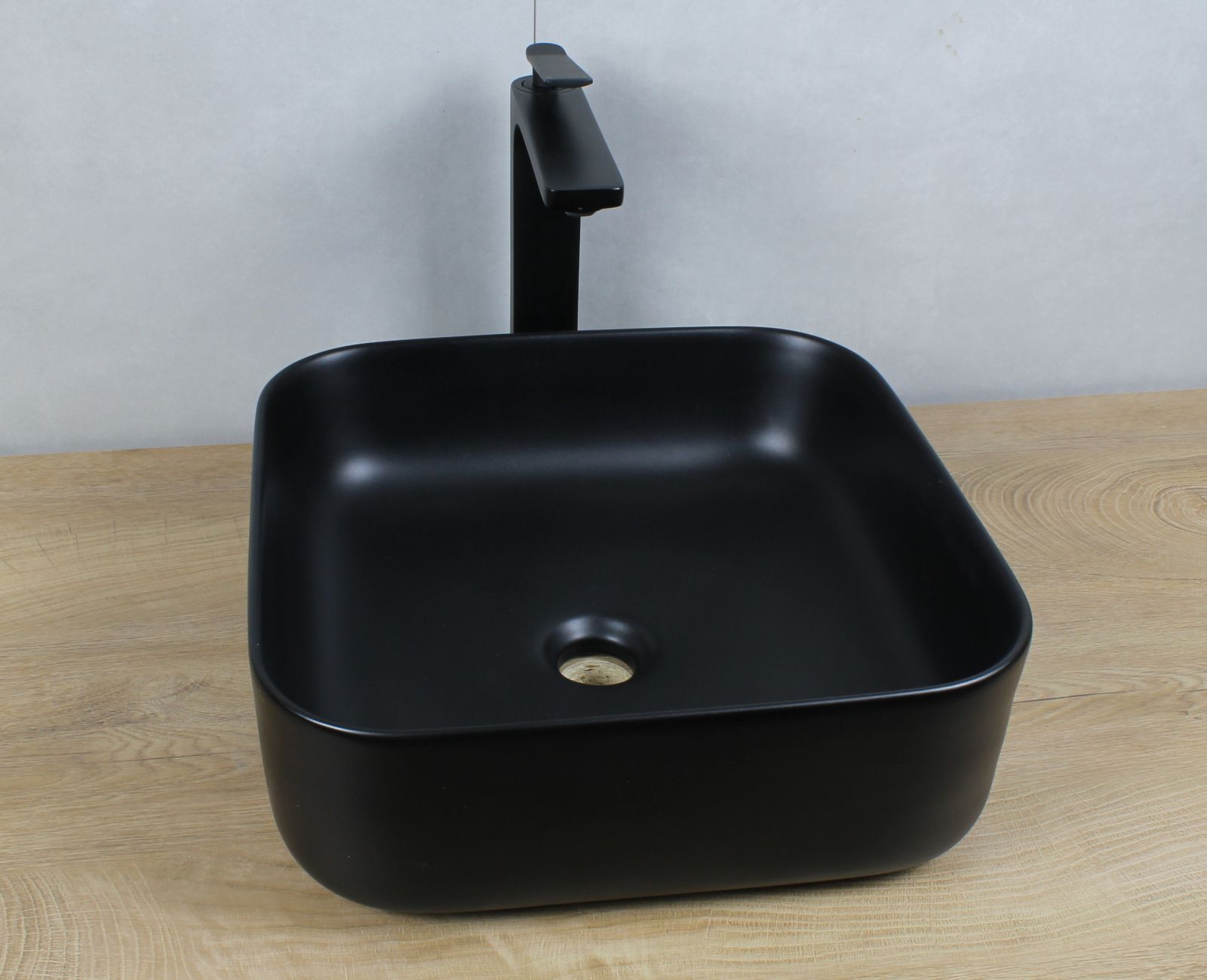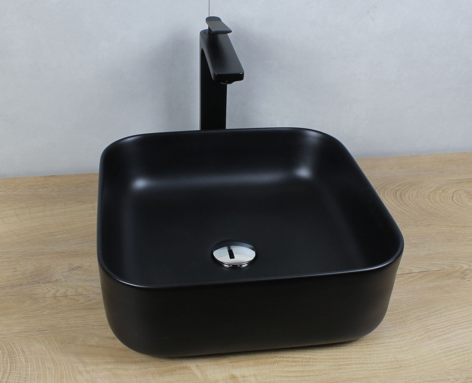 HAGO® Keramik Waschbecken quadratisch 385x385x140 schwarz ohne Überlauf Aufsatz