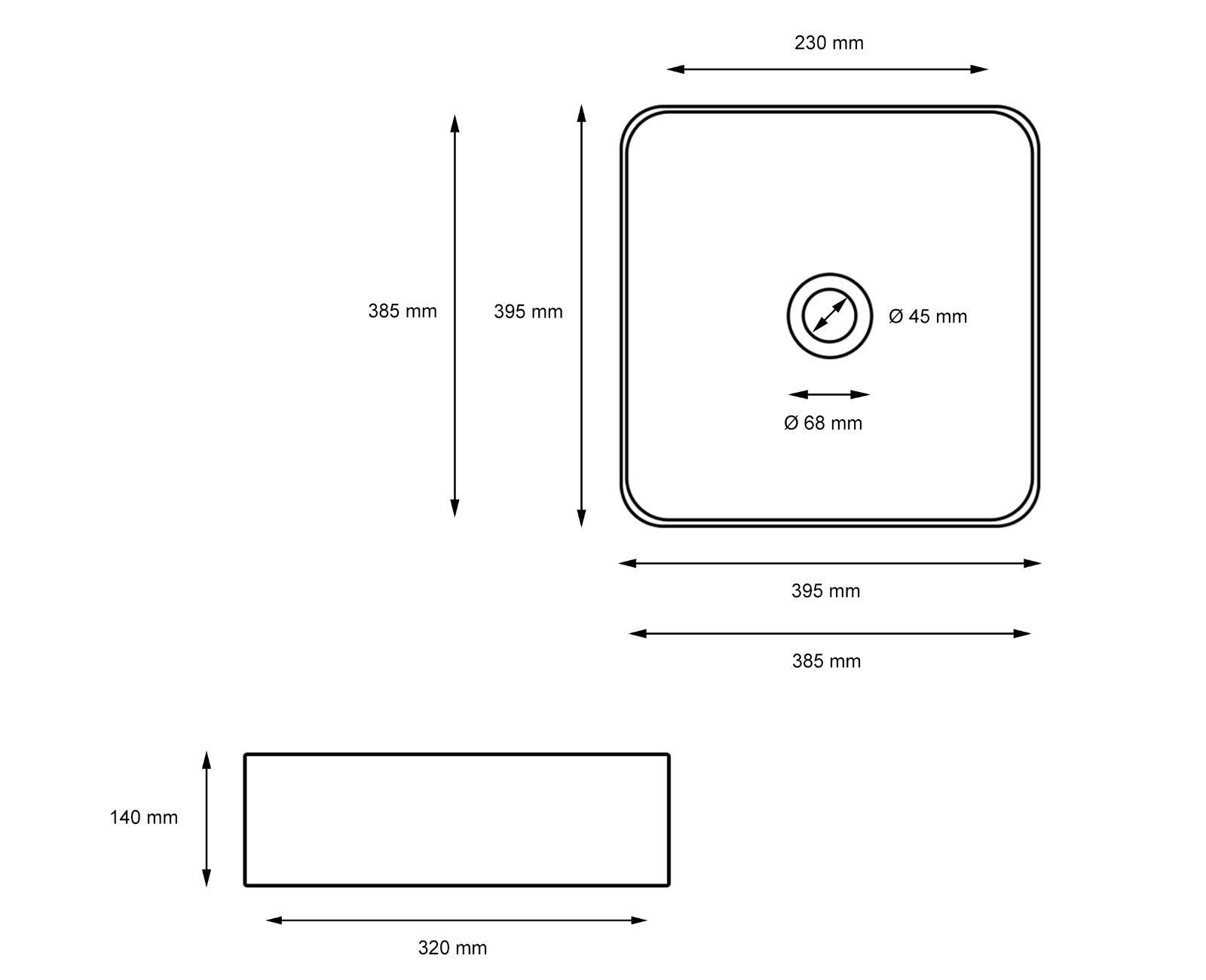 • HAGO® Waschbecken Keramik quadratisch 39x39cm weiß abgerundete Ecken Standard