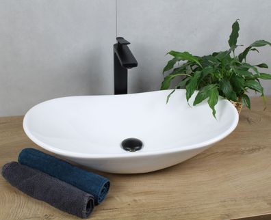 • HAGO® Aufsatzwaschbecken Keramik oval 63x42x12cm weiß Waschschale Kieselstein