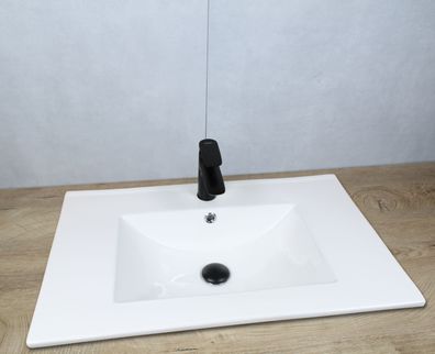• HAGO® Waschbecken Keramik rechteckig 60x38 weiß schmaler Rand Standard-Anschluss