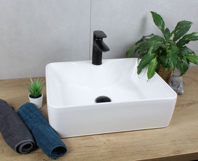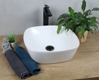 • HAGO® Waschbecken Keramik Weiß Aufsatzwaschbecken 50x39x13cm Abgerundete Ecken