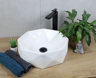 • HAGO® Keramik Waschbecken rund Ø 420 x 135 mm weiß ohne Überlauf Aufsatz Diamant