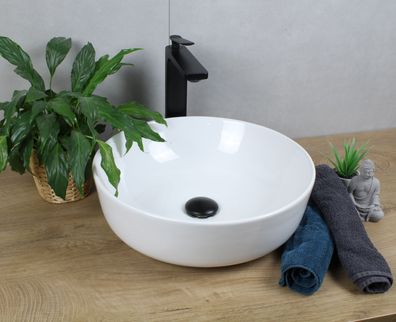 • HAGO® Keramik Waschbecken rund Ø 400 x 135 weiß ohne Überlauf Aufsatzwaschbecken