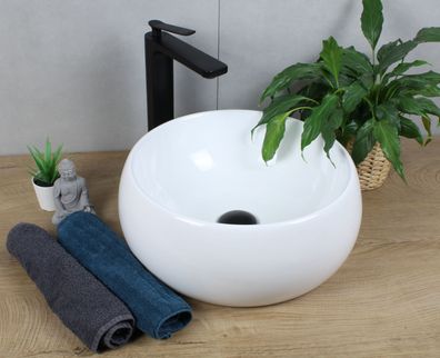 • HAGO® Keramik Waschbecken rund Ø 400x155 weiß ohne Überlauf Aufsatzwaschbecken