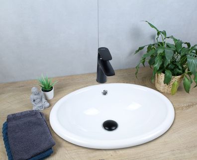 • HAGO® Keramik Waschbecken oval 570x485x195 weiß mit Überlauf Einbauwaschbecken