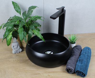 • HAGO® Keramik Waschbecken rund Ø 350 x 120 schwarz matt ohne Überlauf Aufsatz