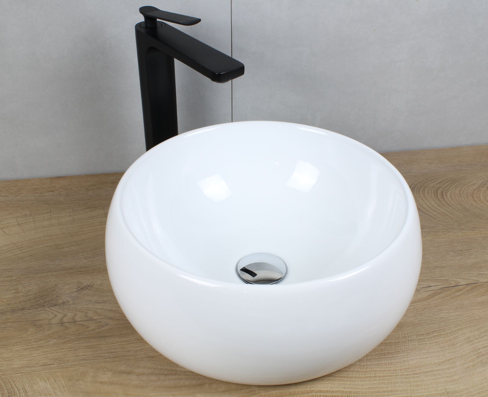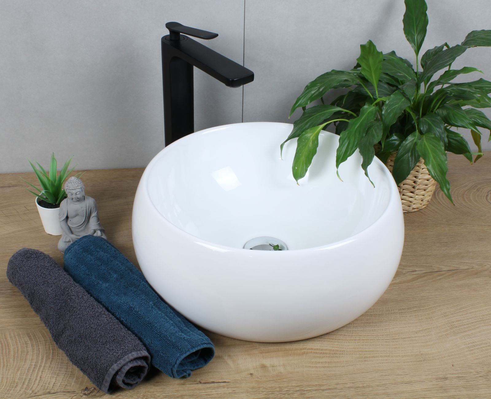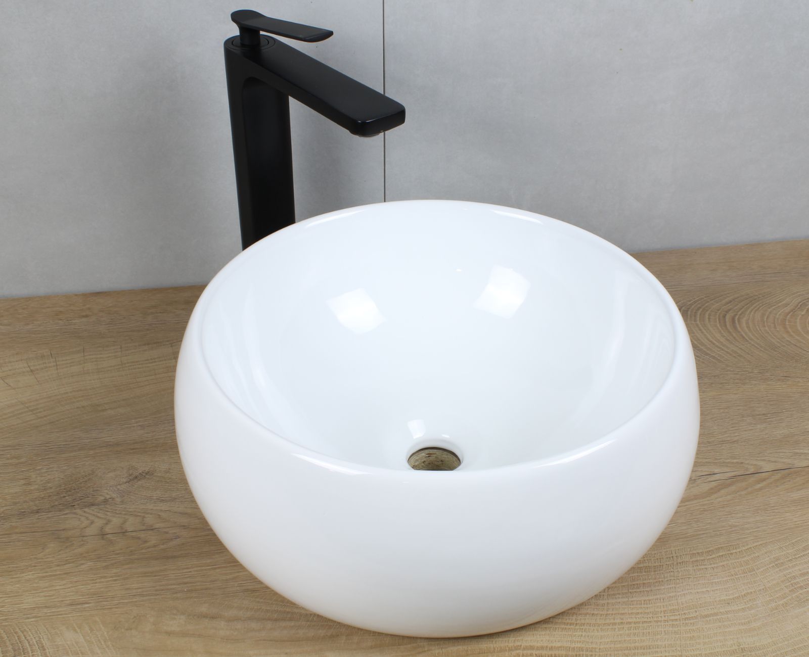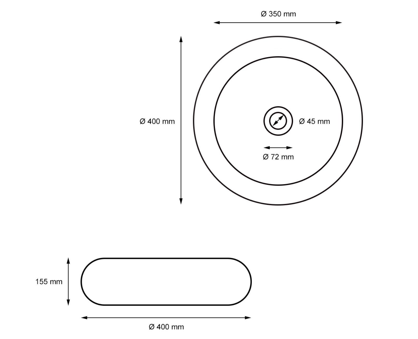 HAGO® Keramik Waschbecken rund Ø 400x155 weiß ohne Überlauf Aufsatzwaschbecken