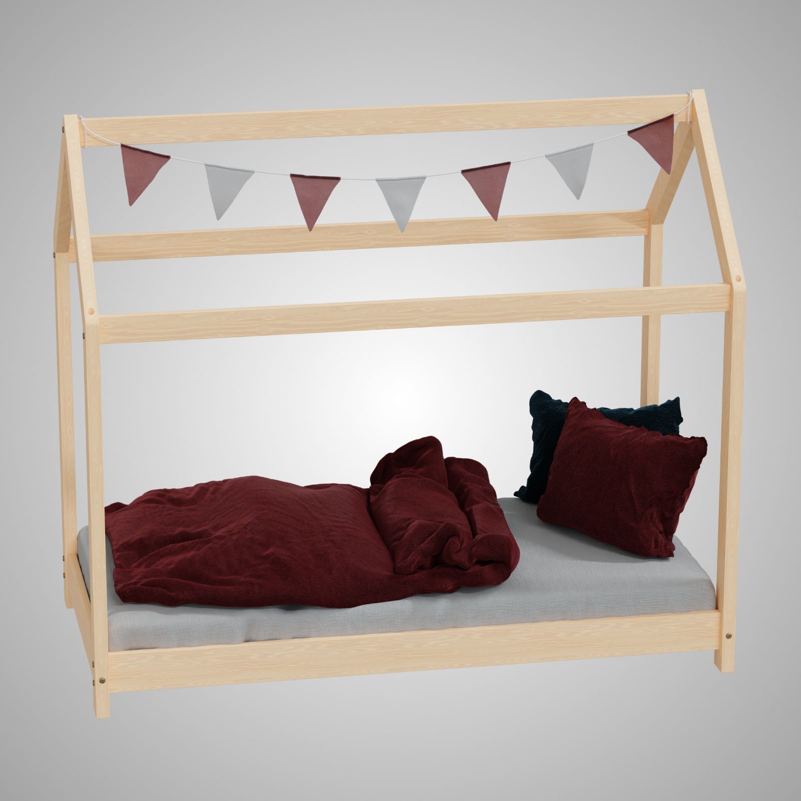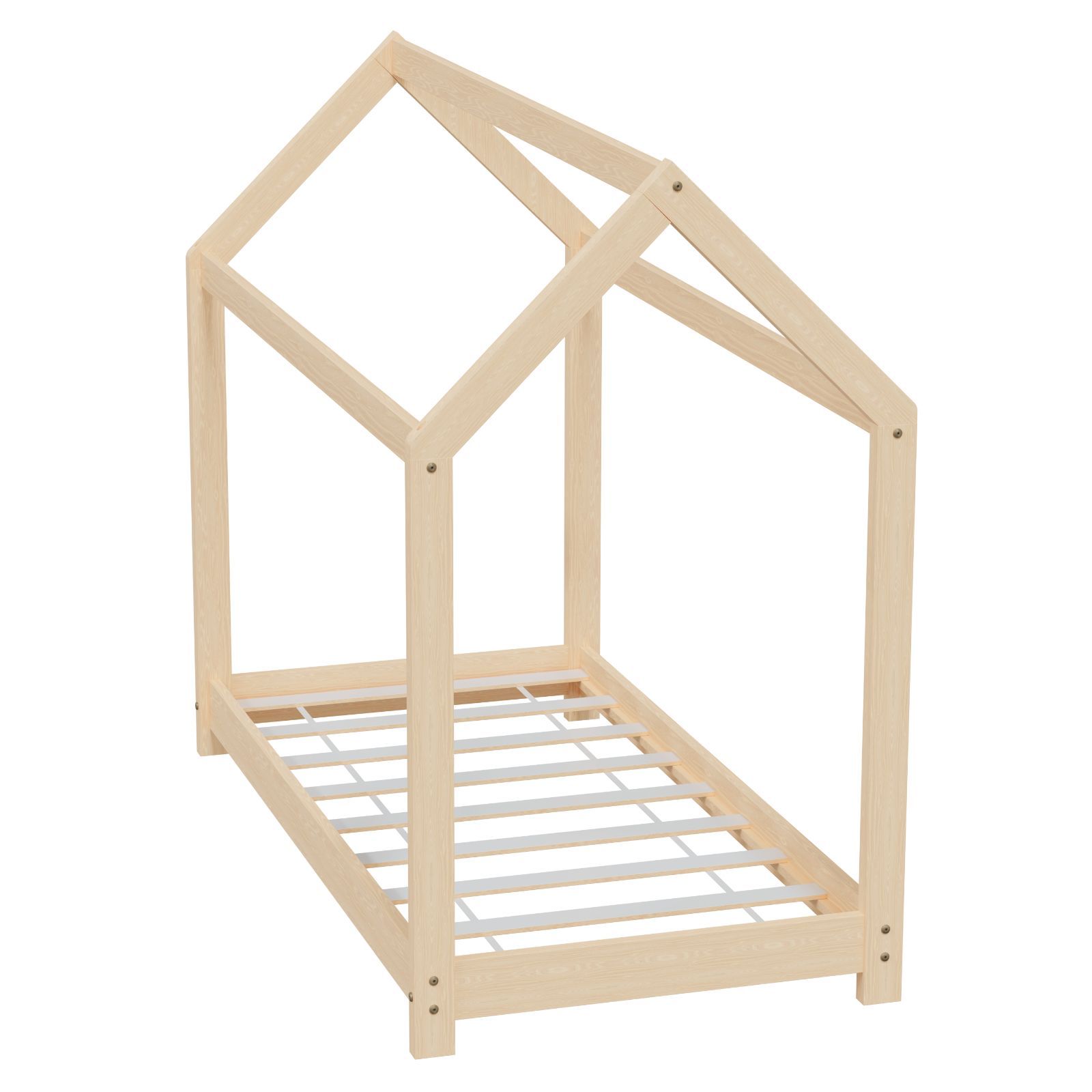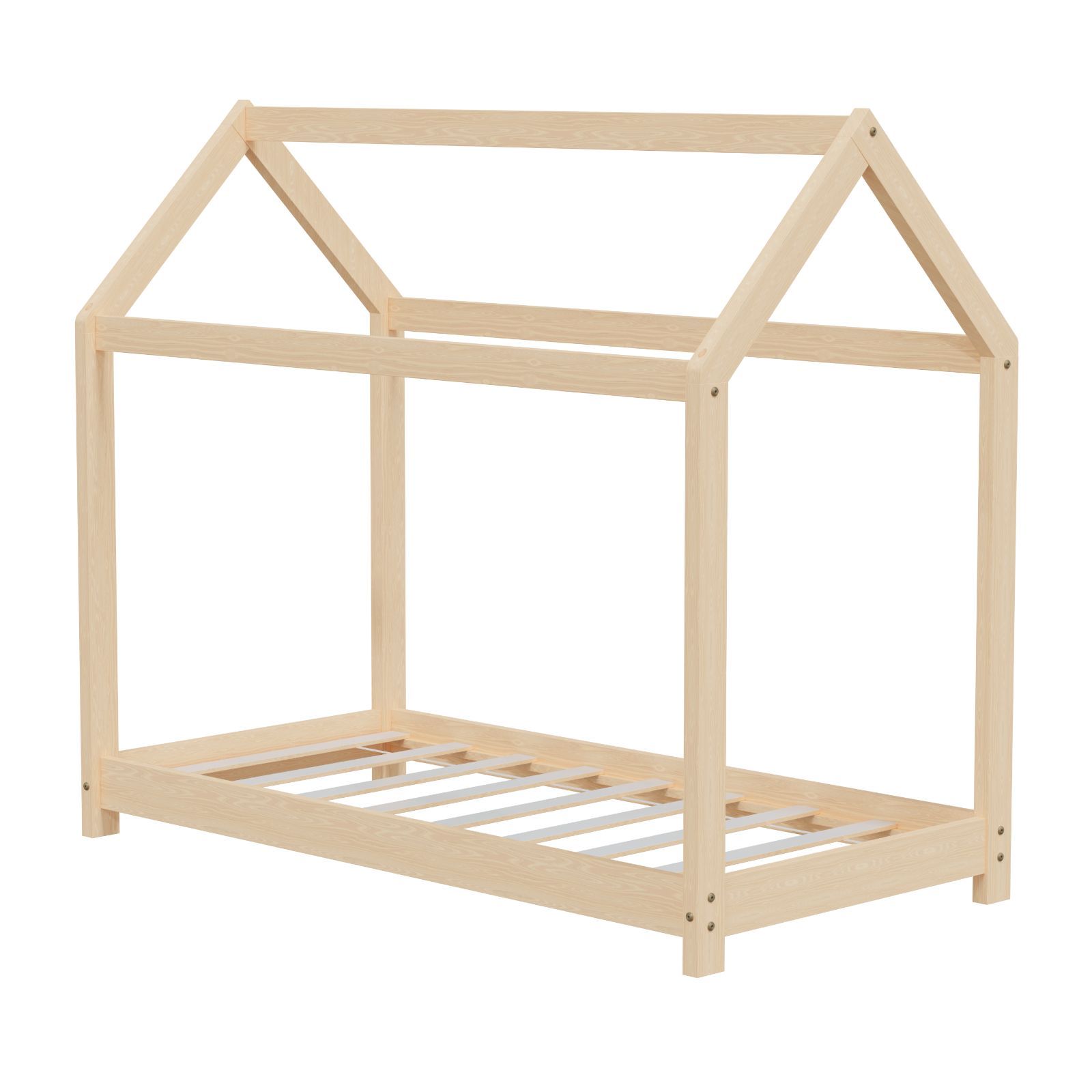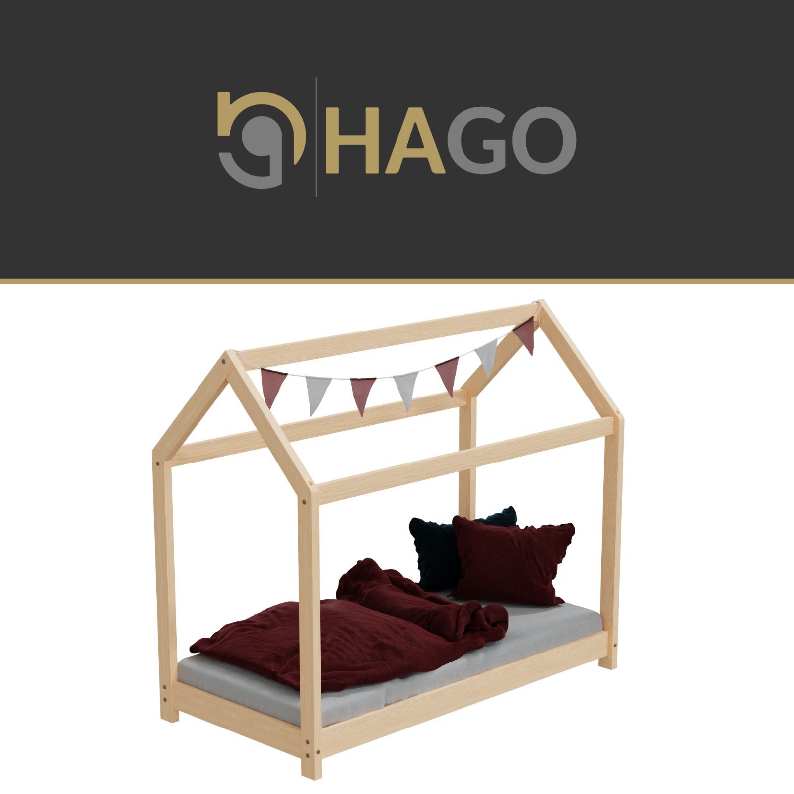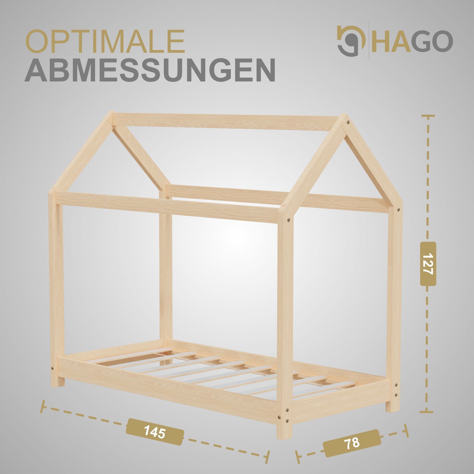 HAGO® Kinderbett 70x140cm Natur Holz Hausoptik Lattenrost Montessori Bodentief