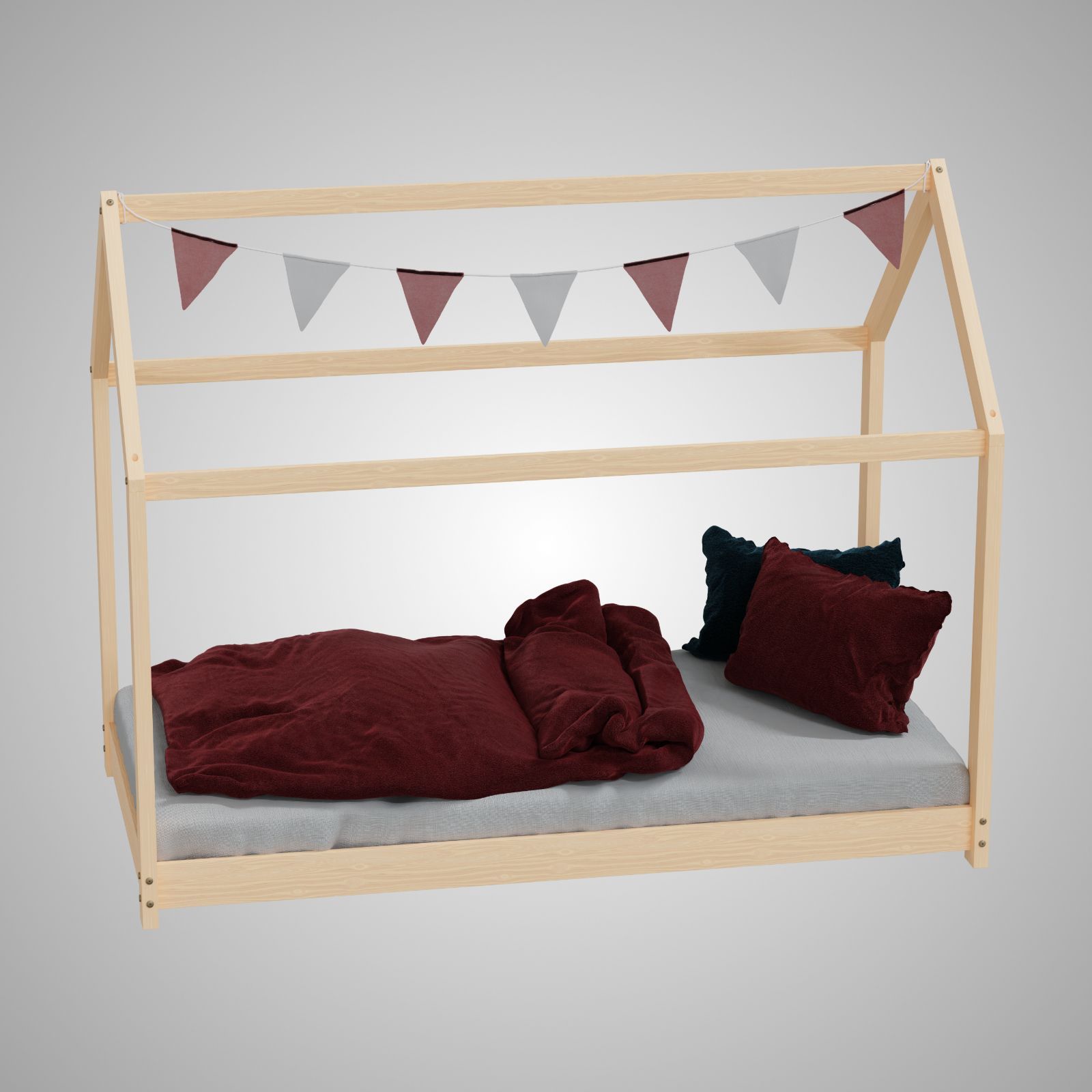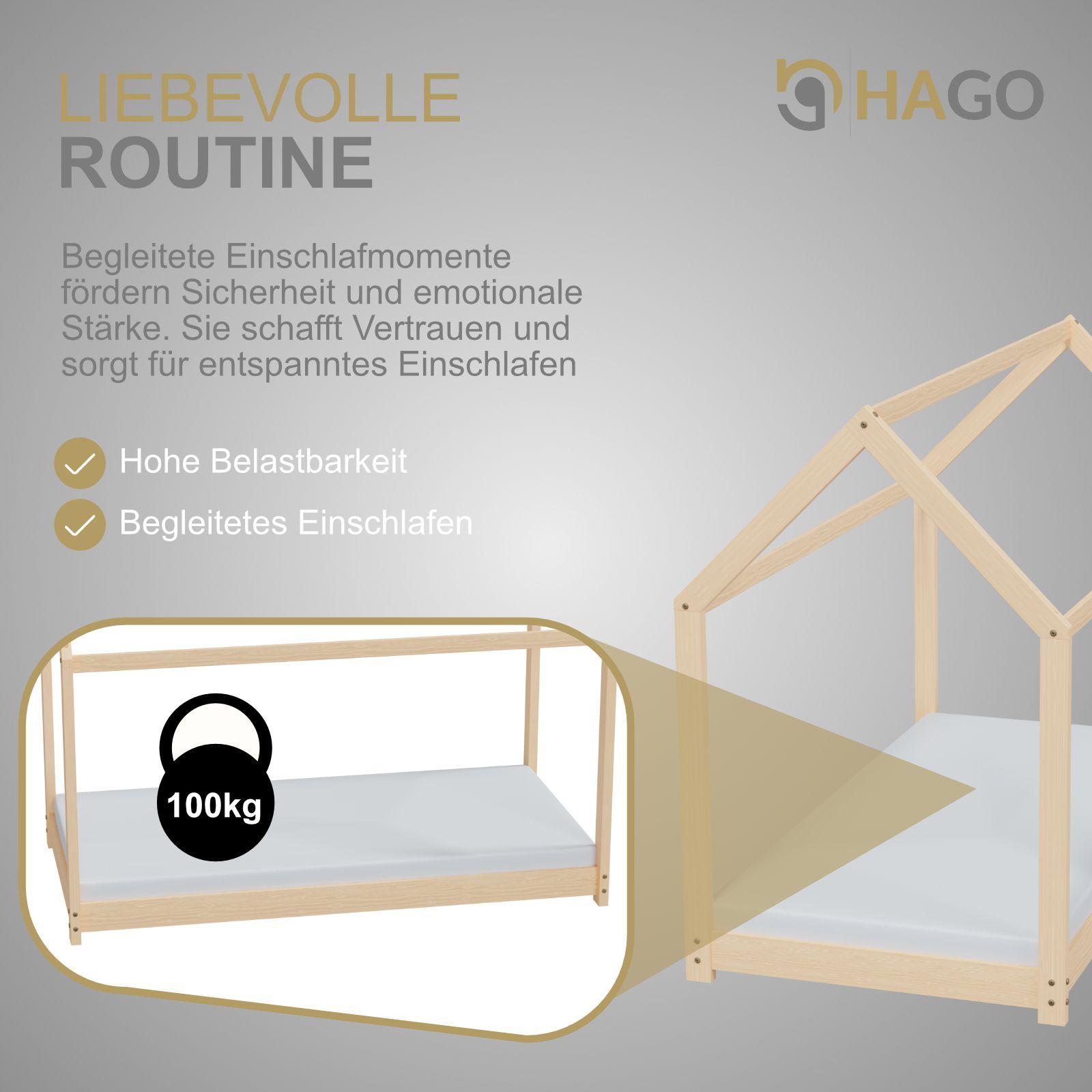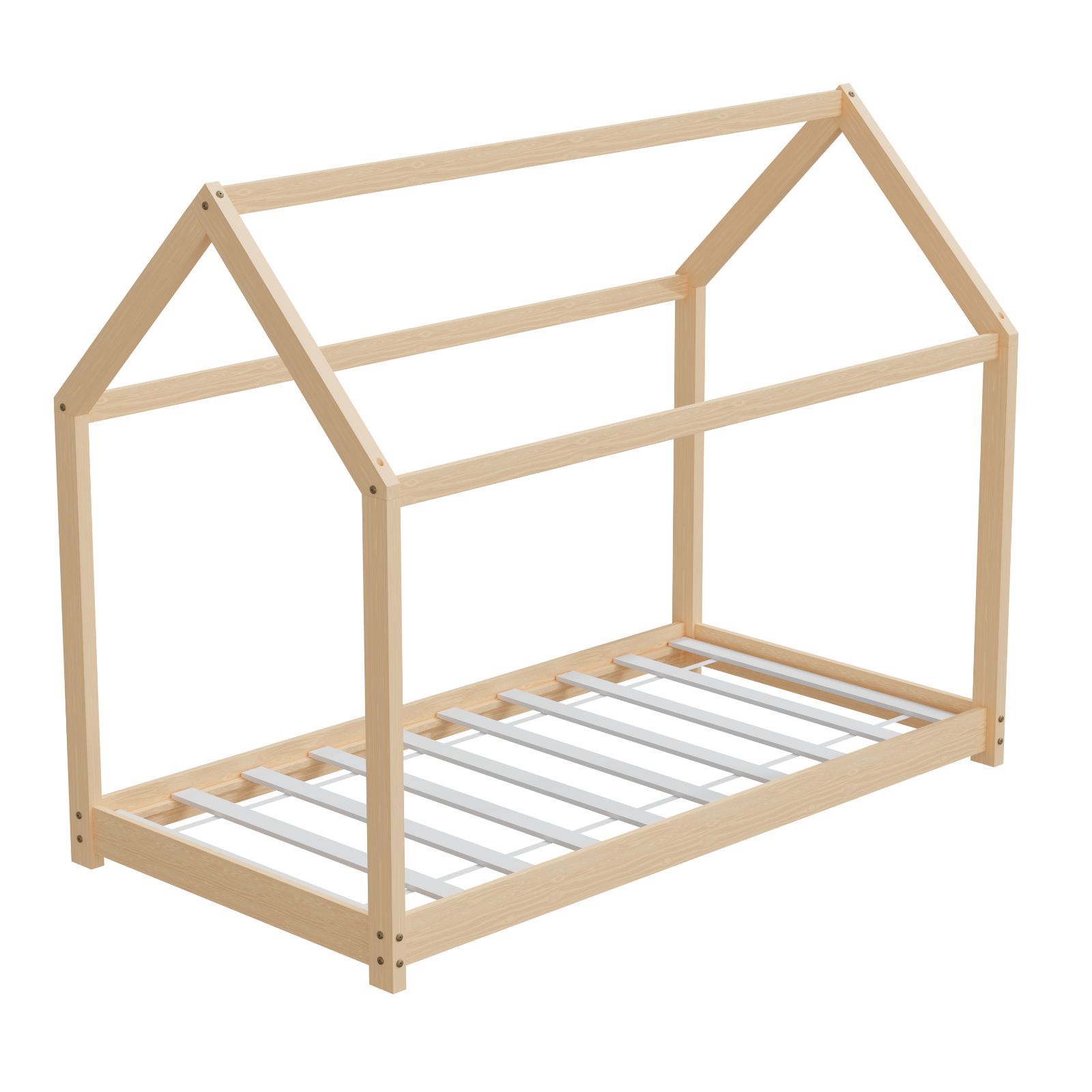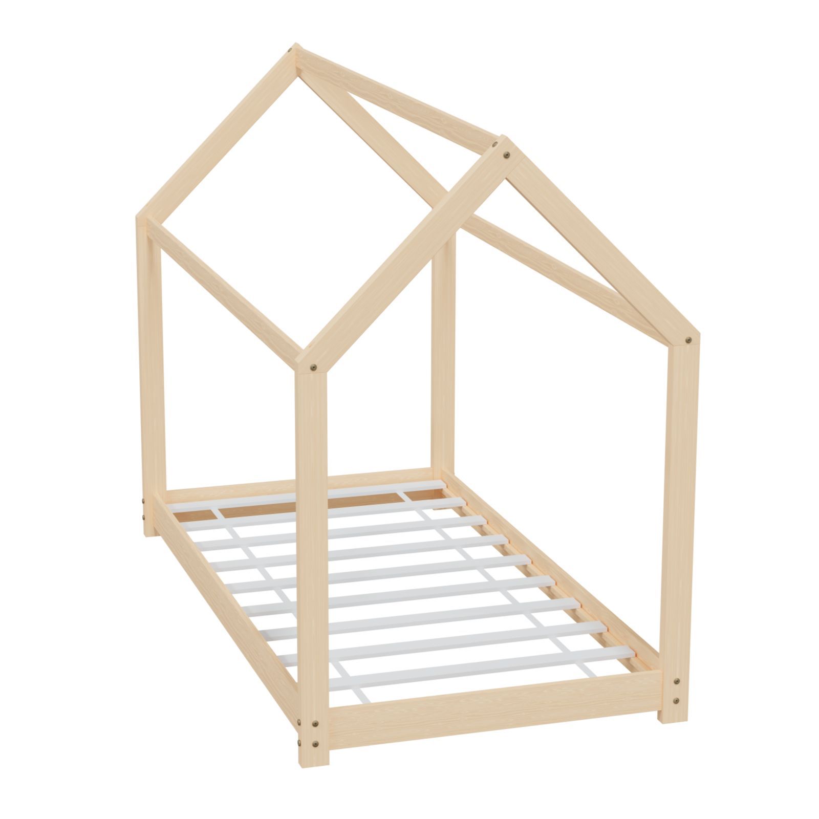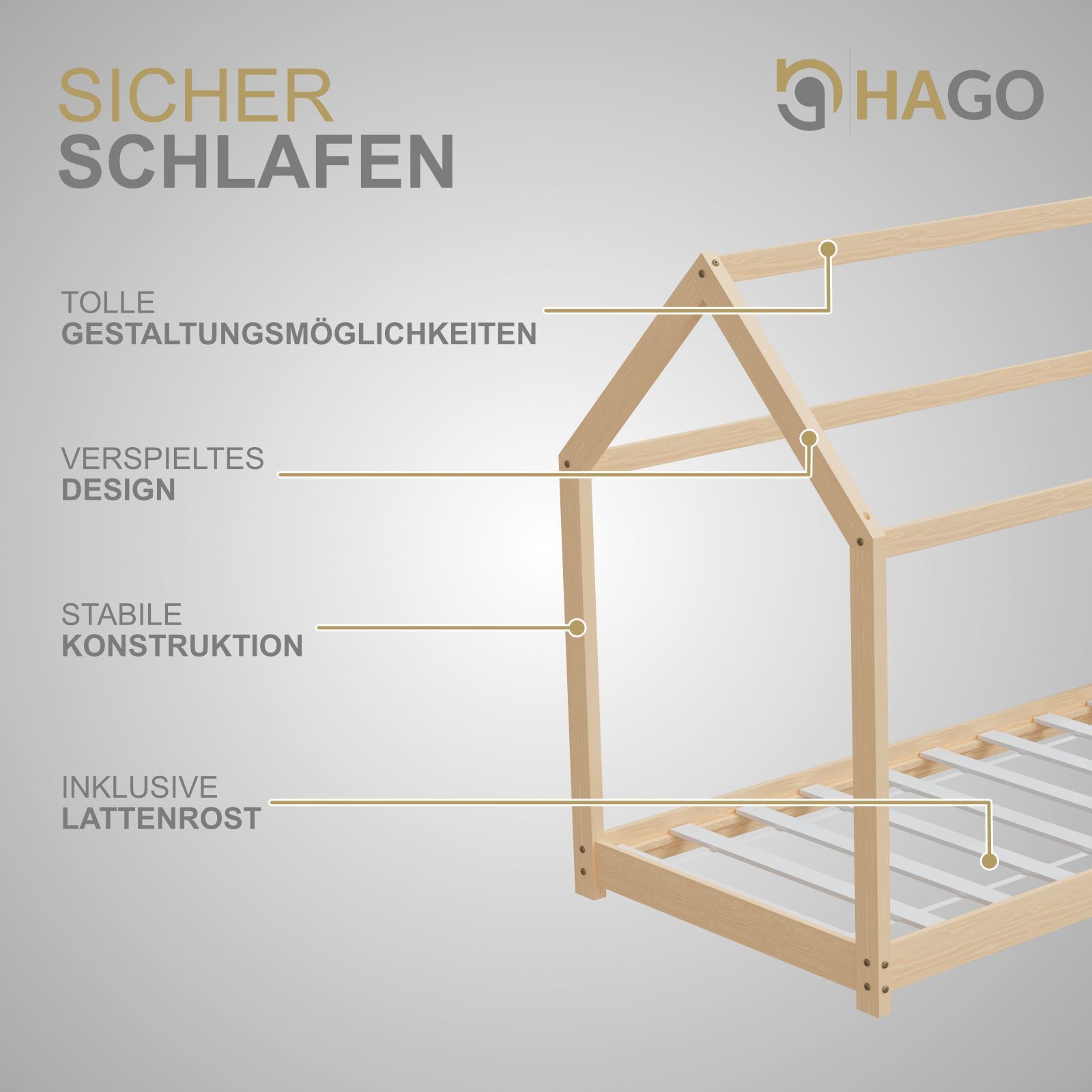 HAGO® Kinderbett 80x160cm Natur Holz Hausoptik Lattenrost Montessori Bodentief