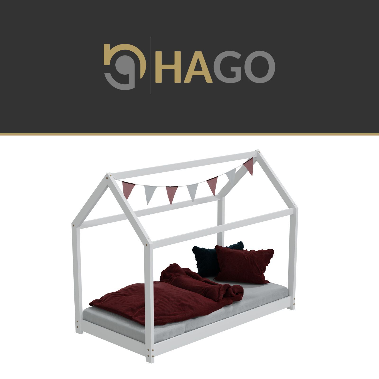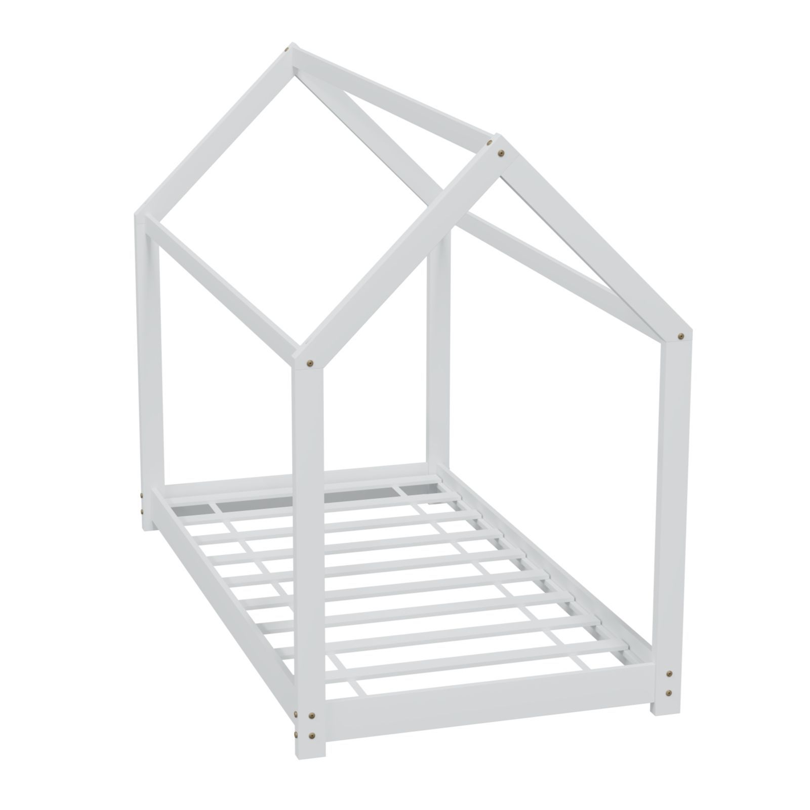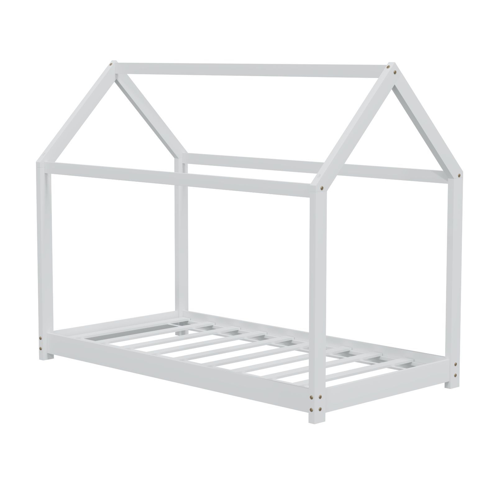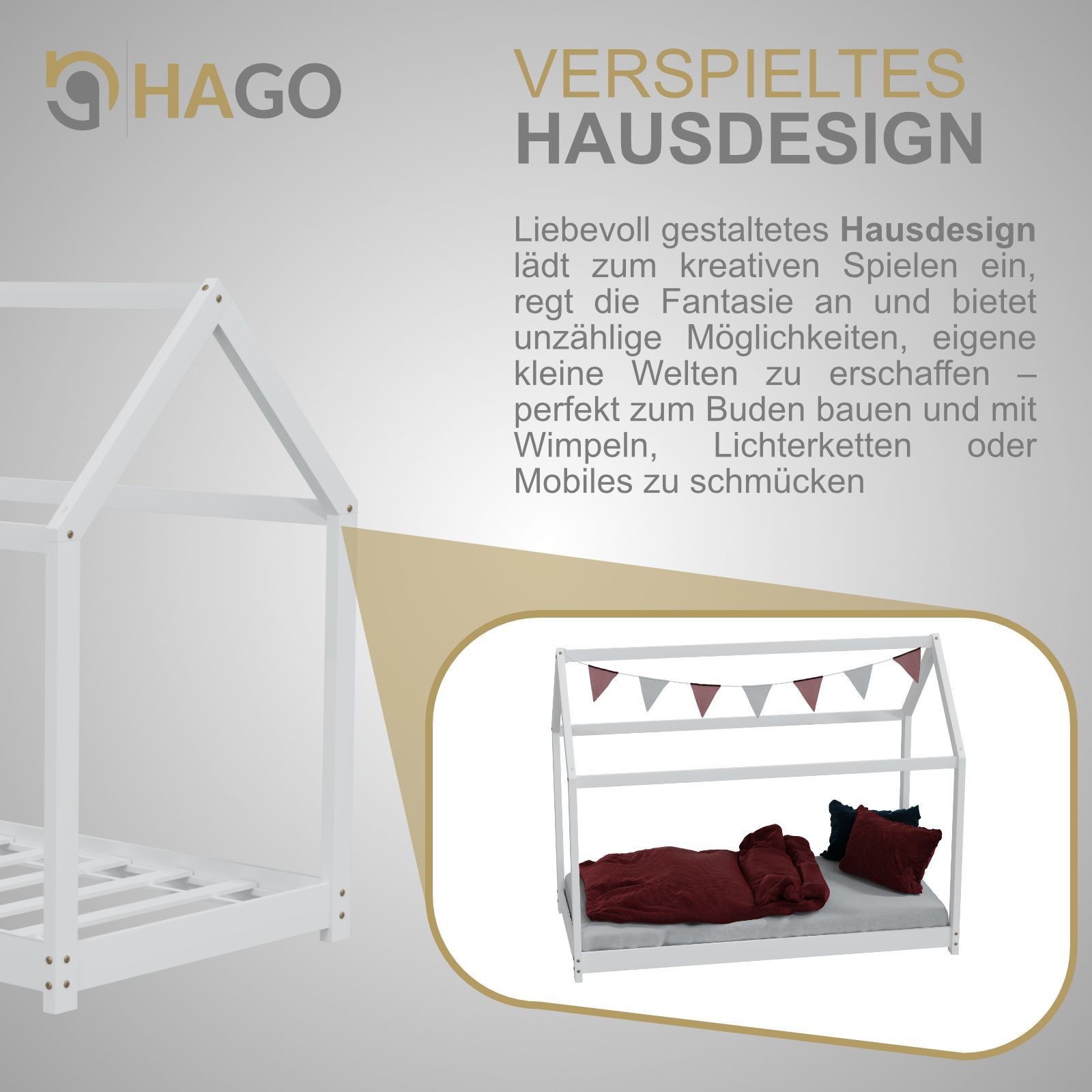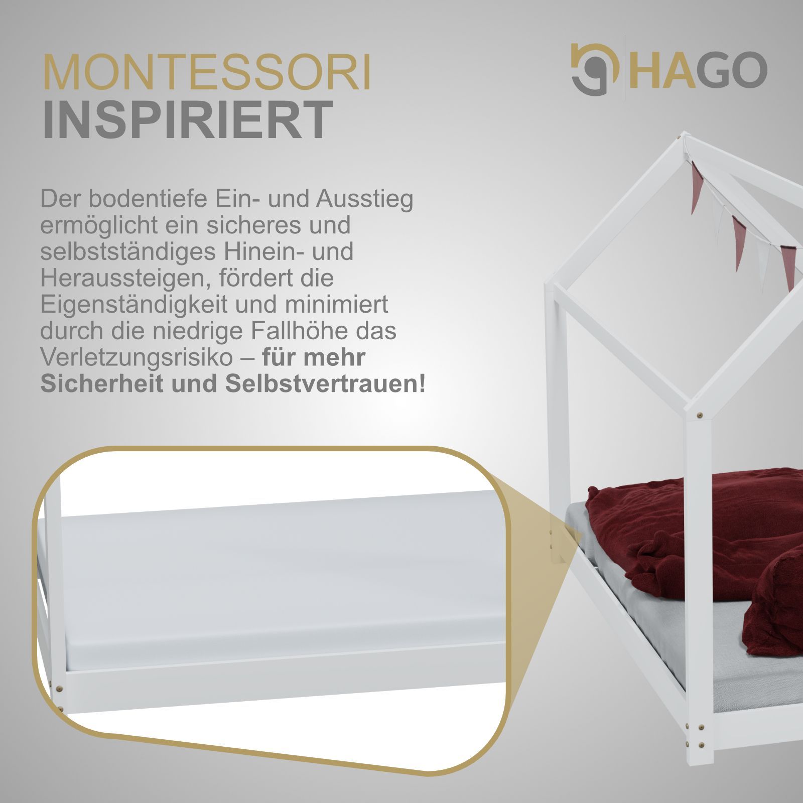 HAGO® Kinderbett 80x160cm Weiß Holz Hausoptik Lattenrost Montessori Bodentief