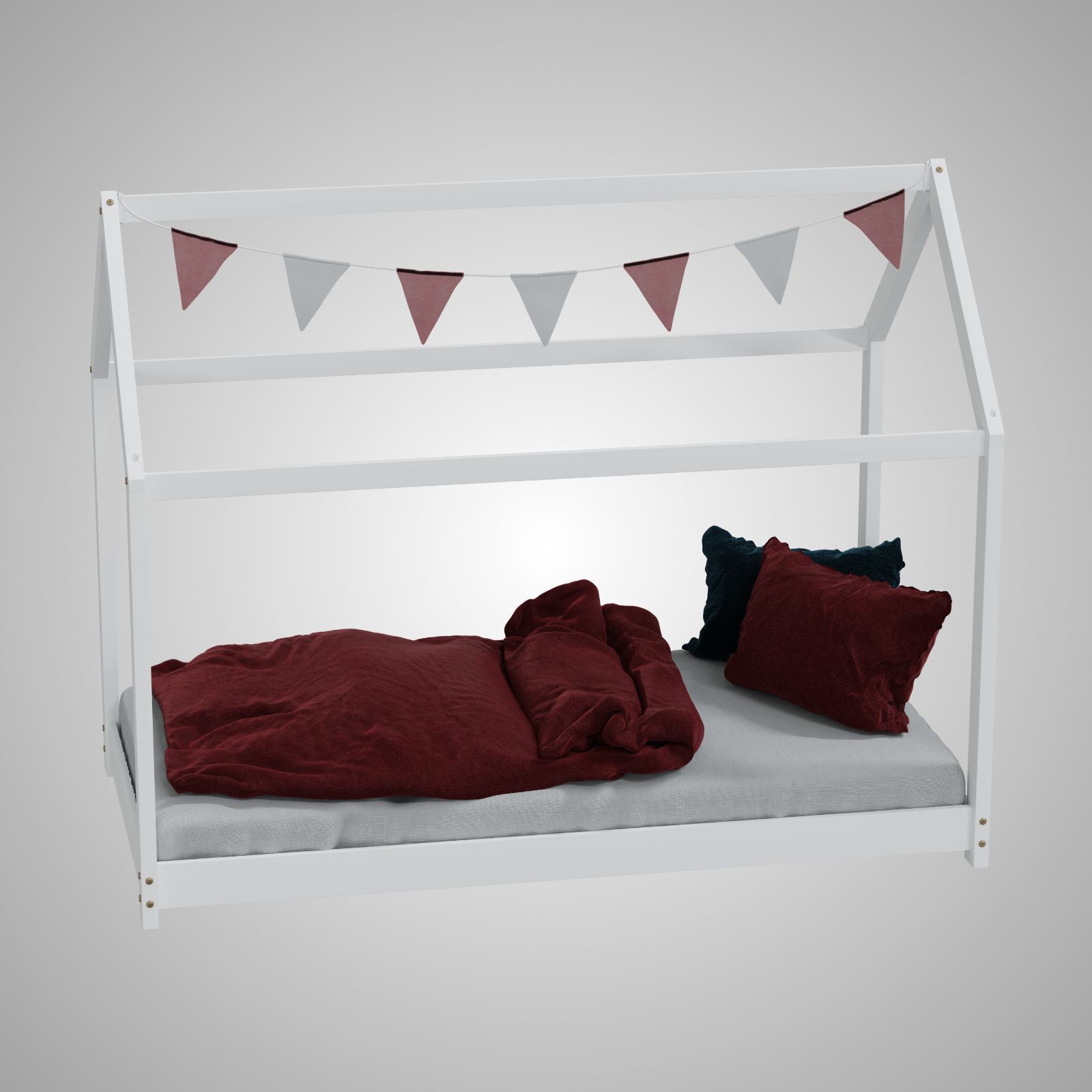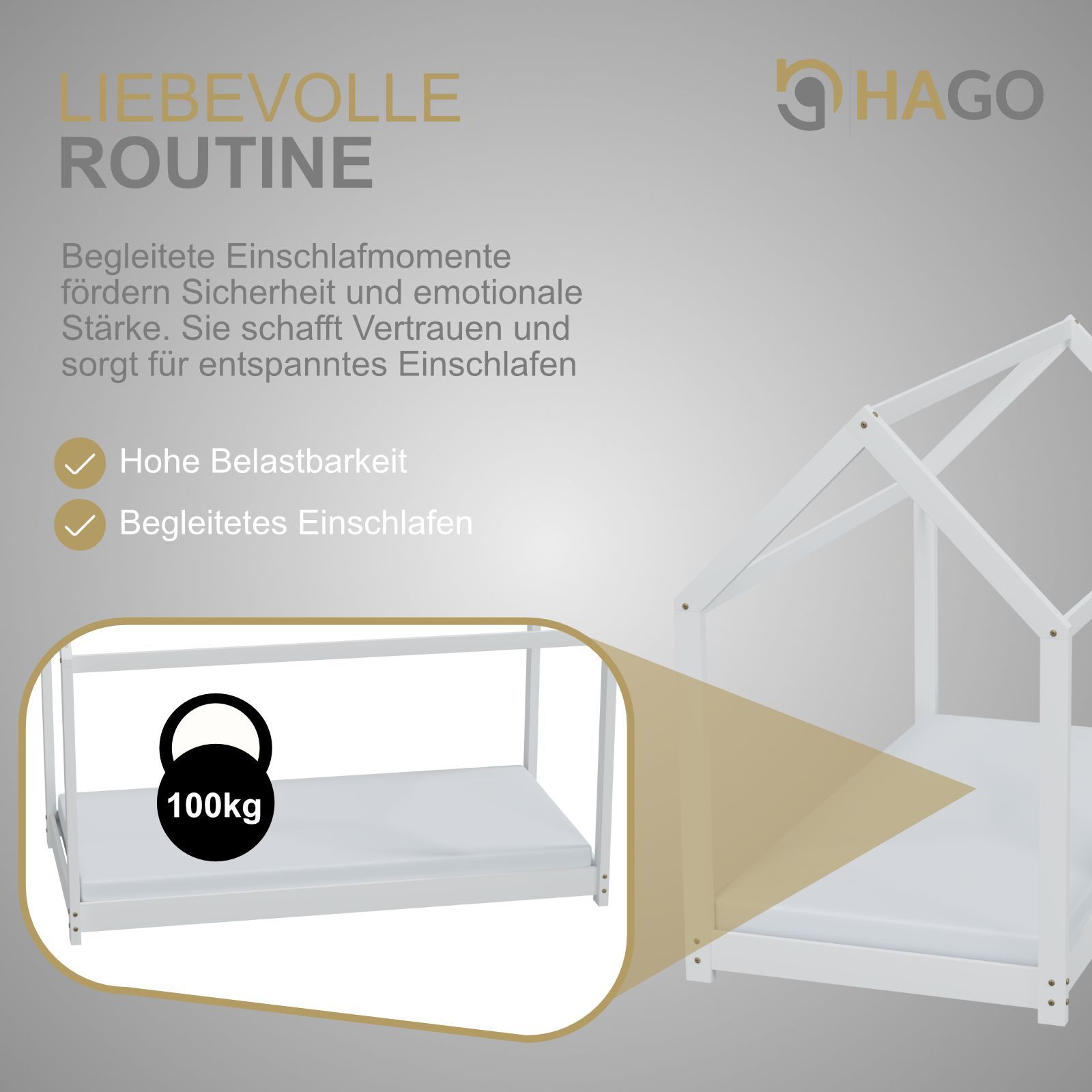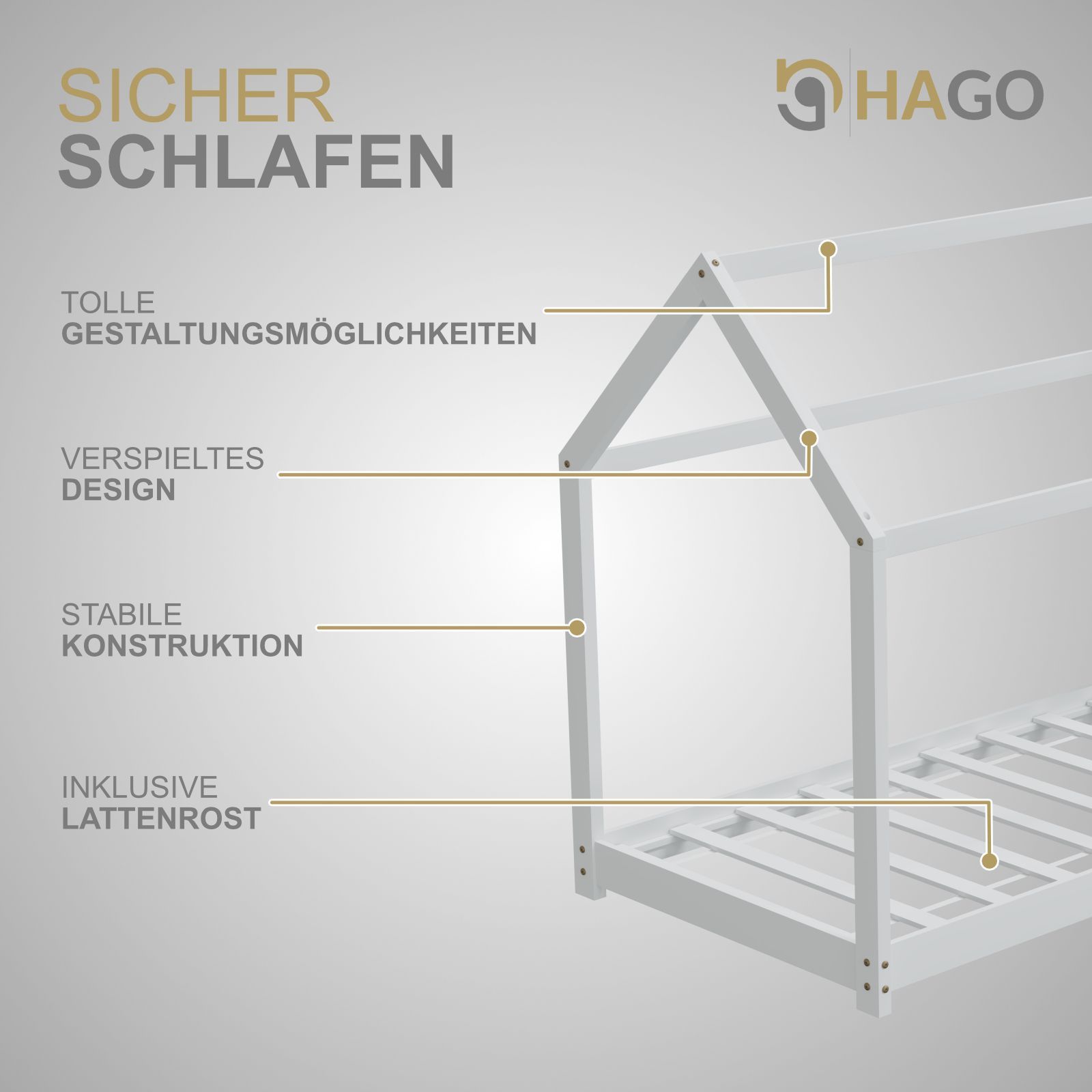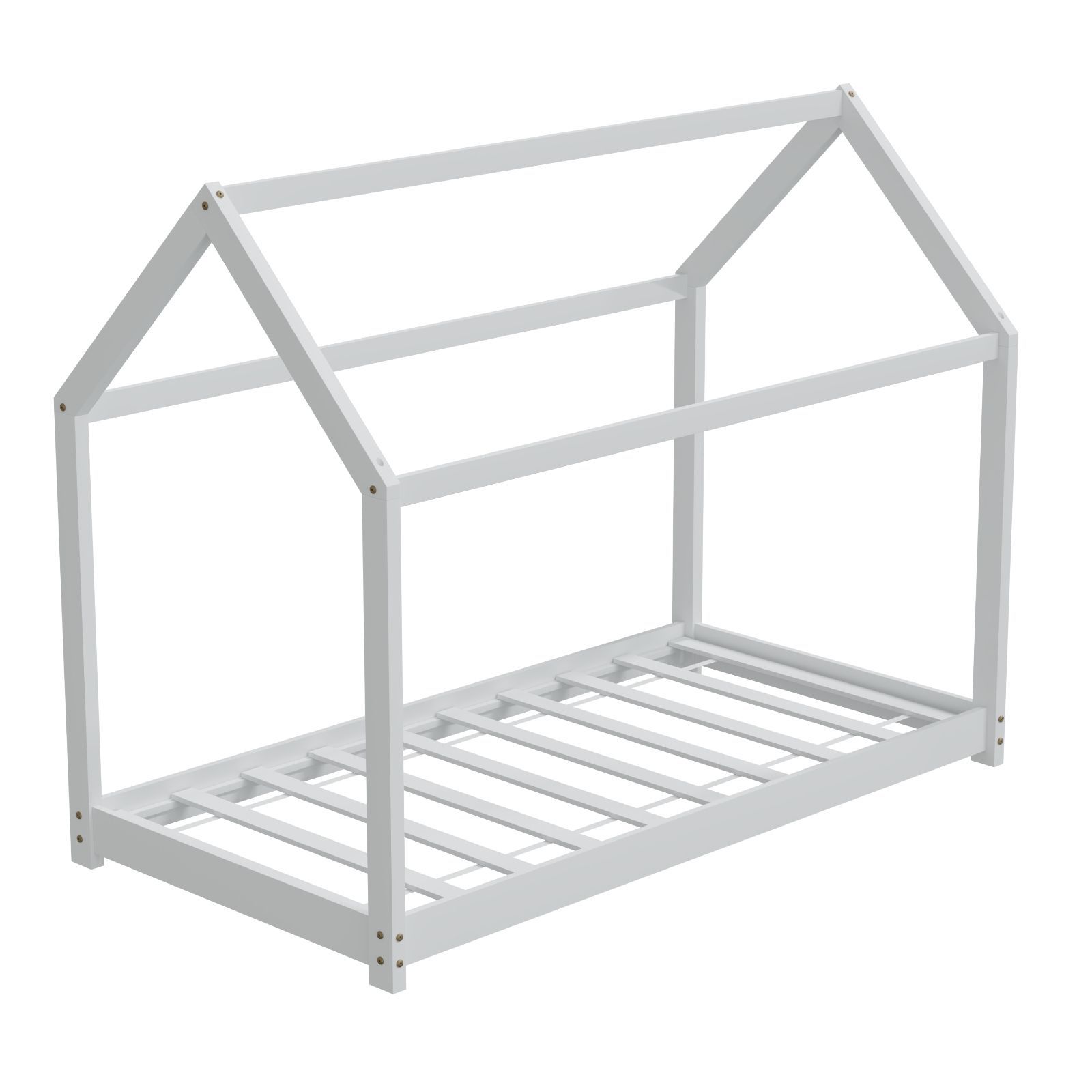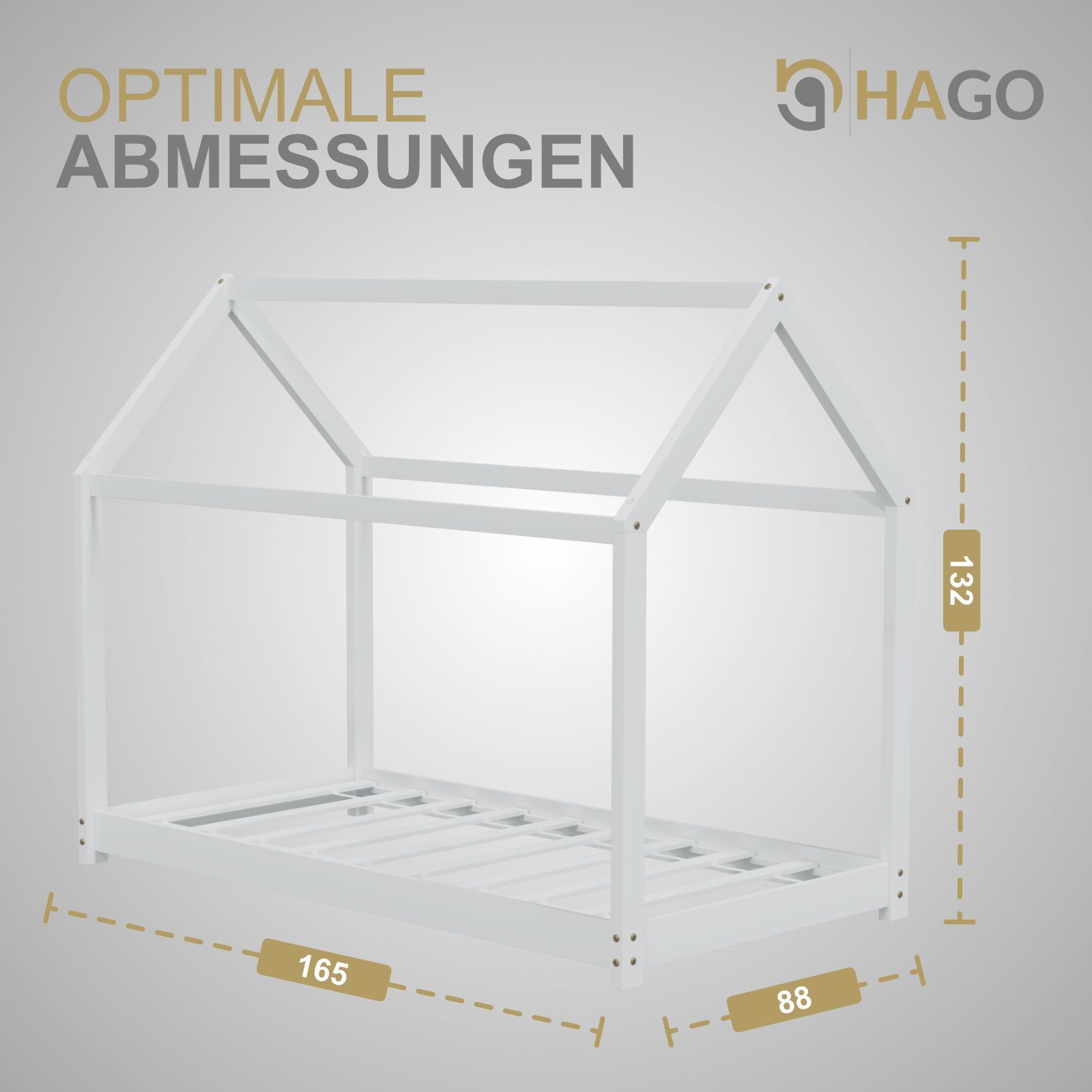 HAGO® Kinderbett 80x160cm Weiß Holz Hausoptik Lattenrost Montessori Bodentief