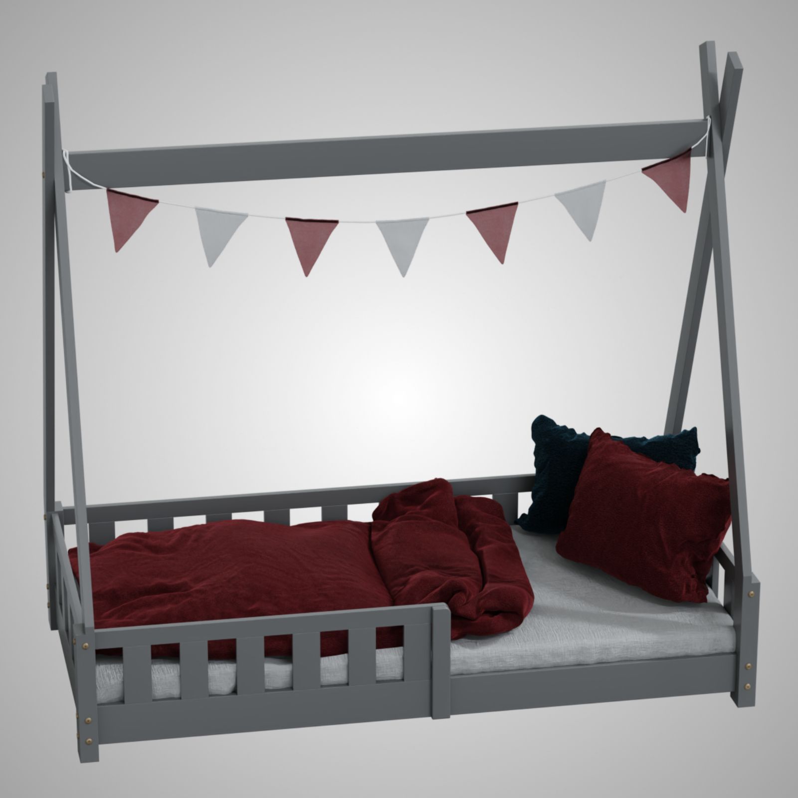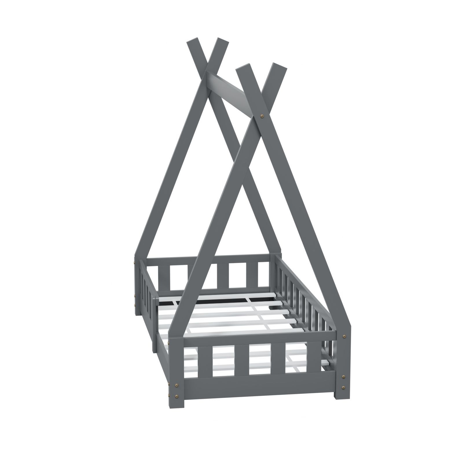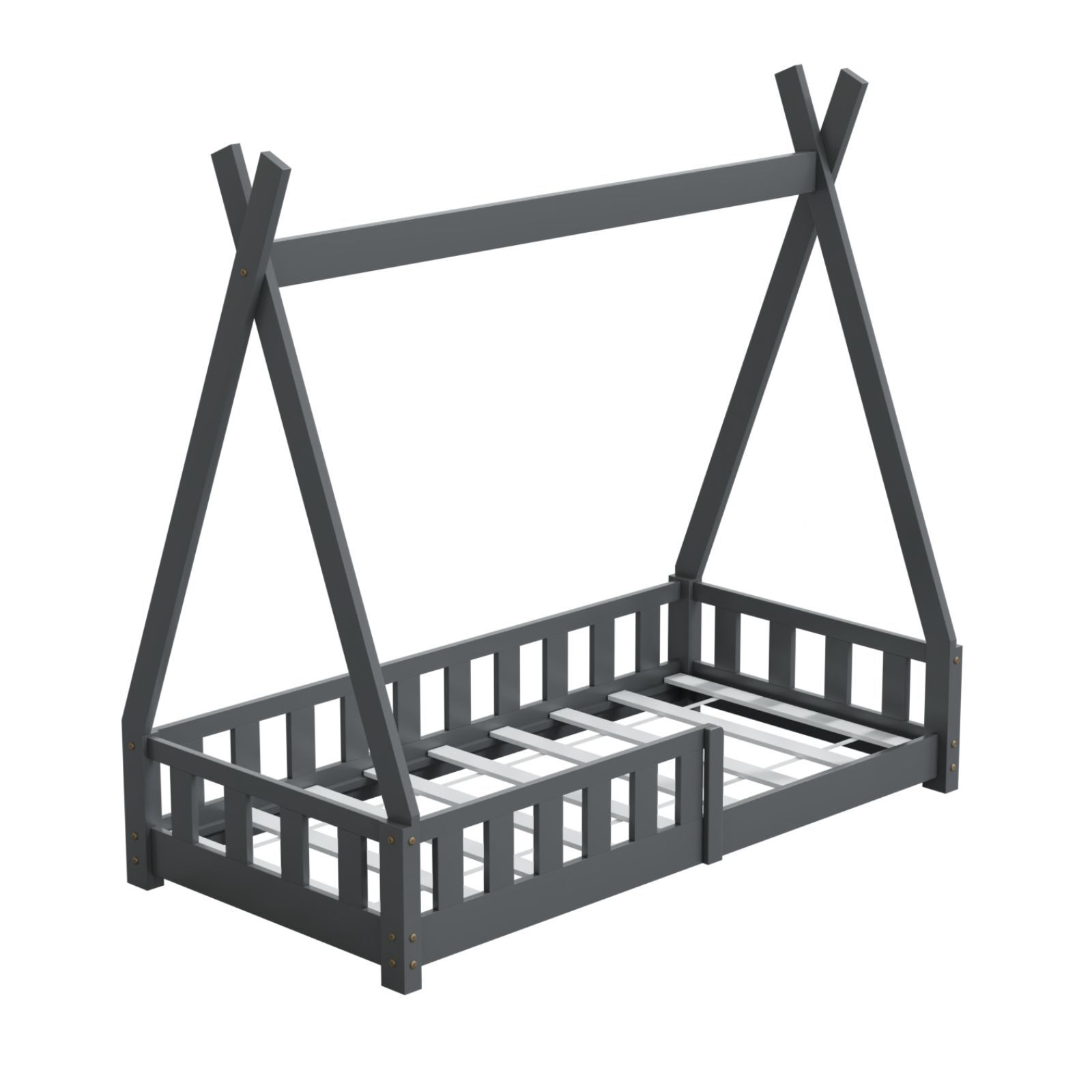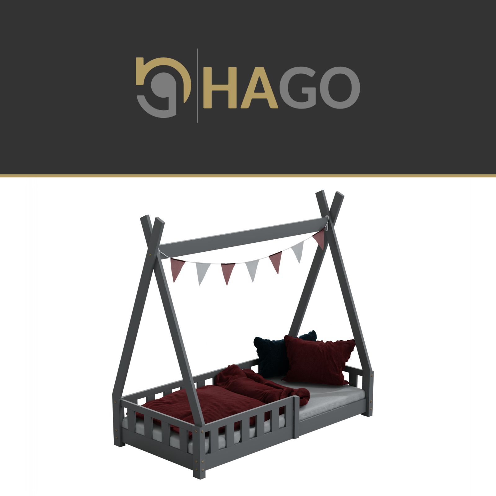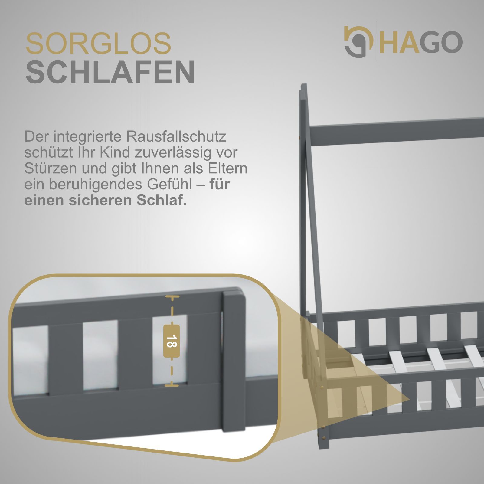 HAGO Kinderbett Tipi Bett Holzhaus 140x70 Rausfallschutz Lattenrost Kiefer Grau