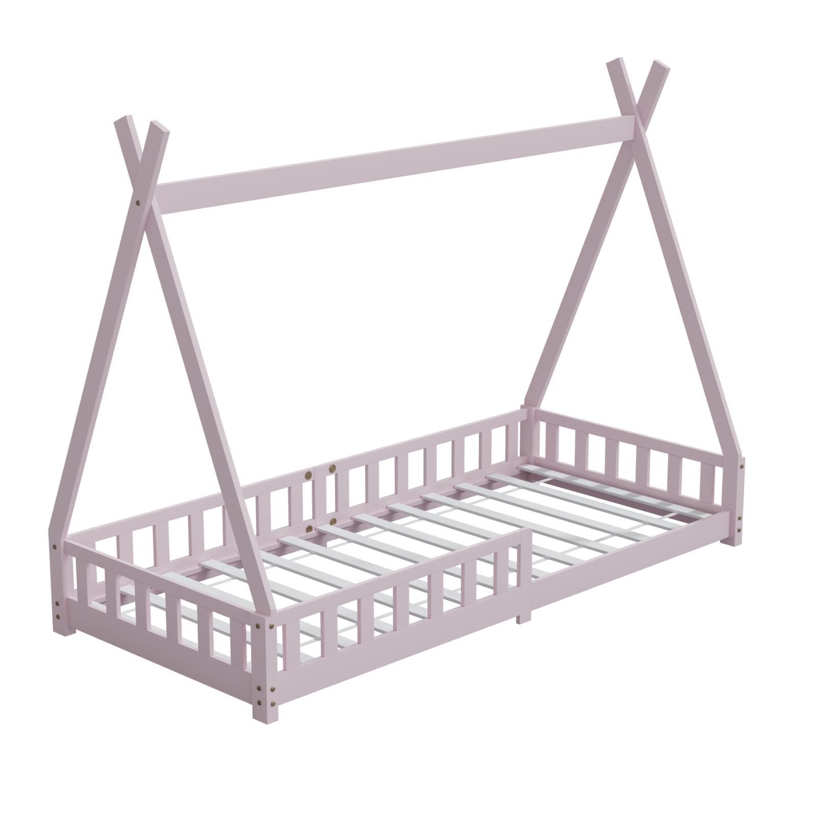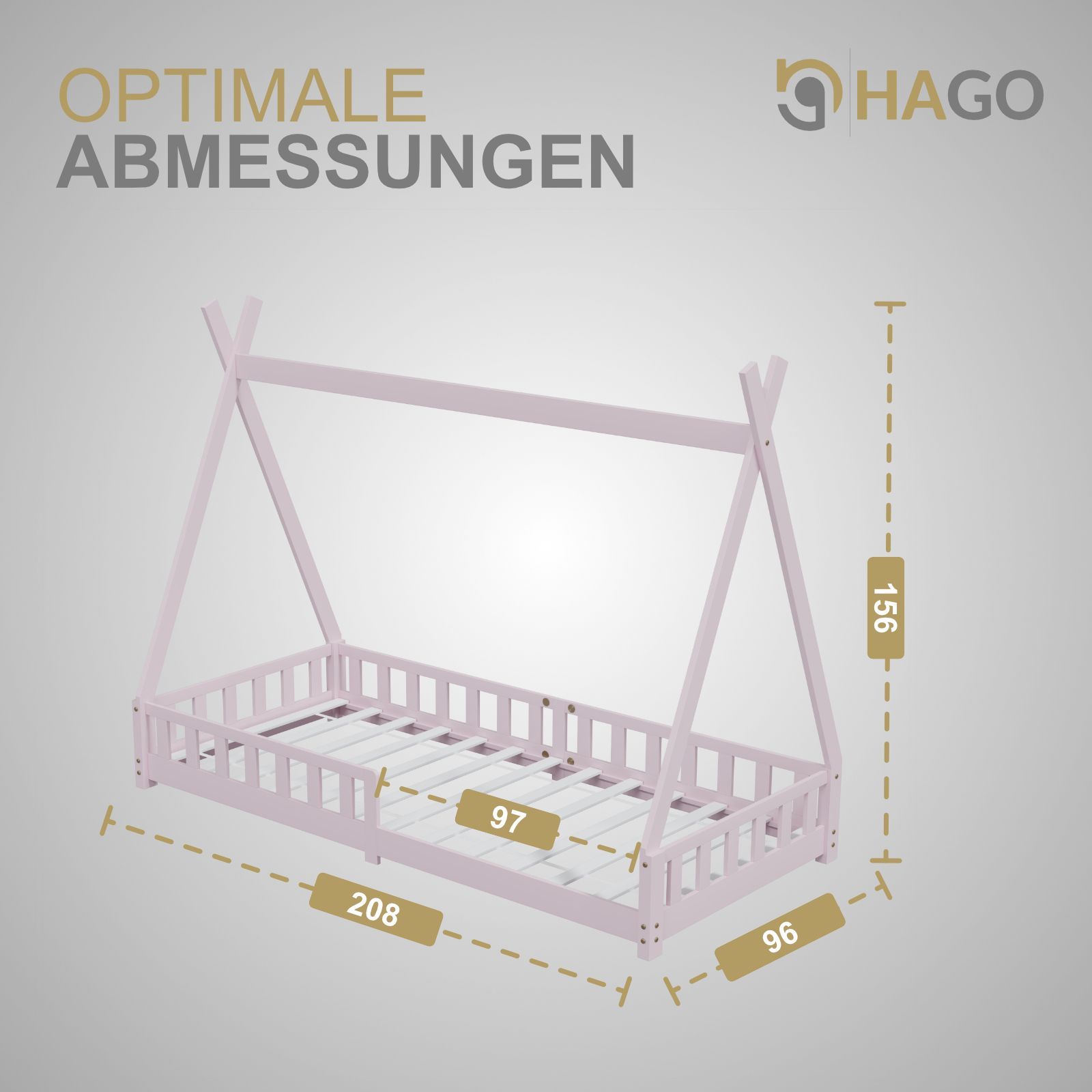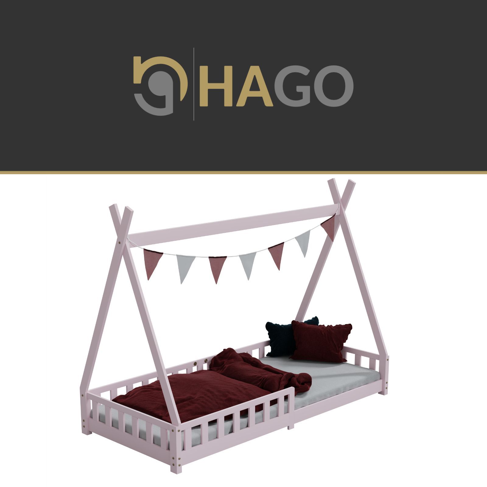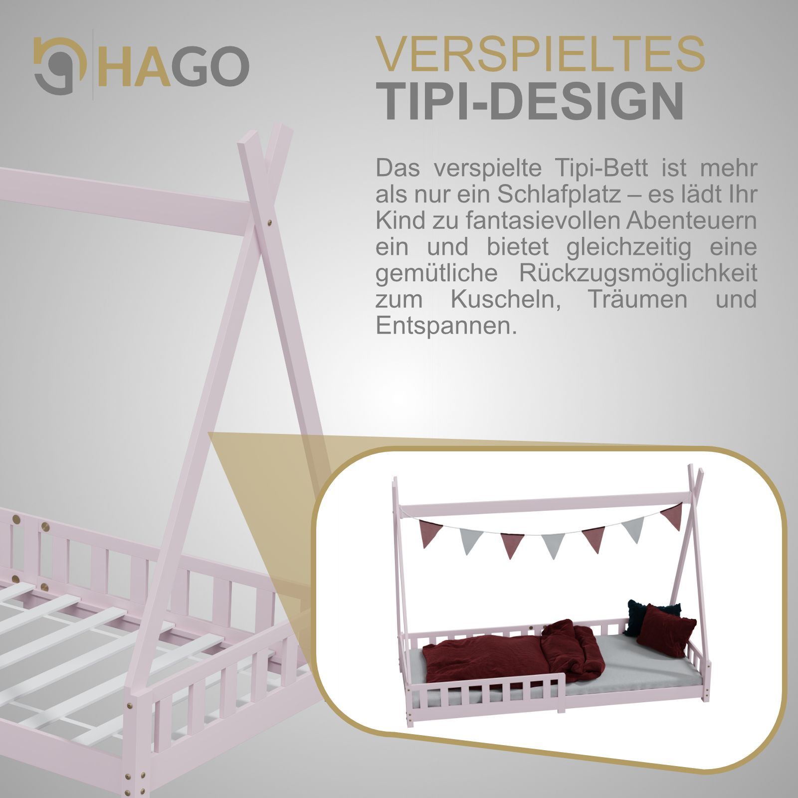 HAGO Kinderbett Tipi Bett Holzhaus 200x90 Rausfallschutz Lattenrost Kiefer Rosa