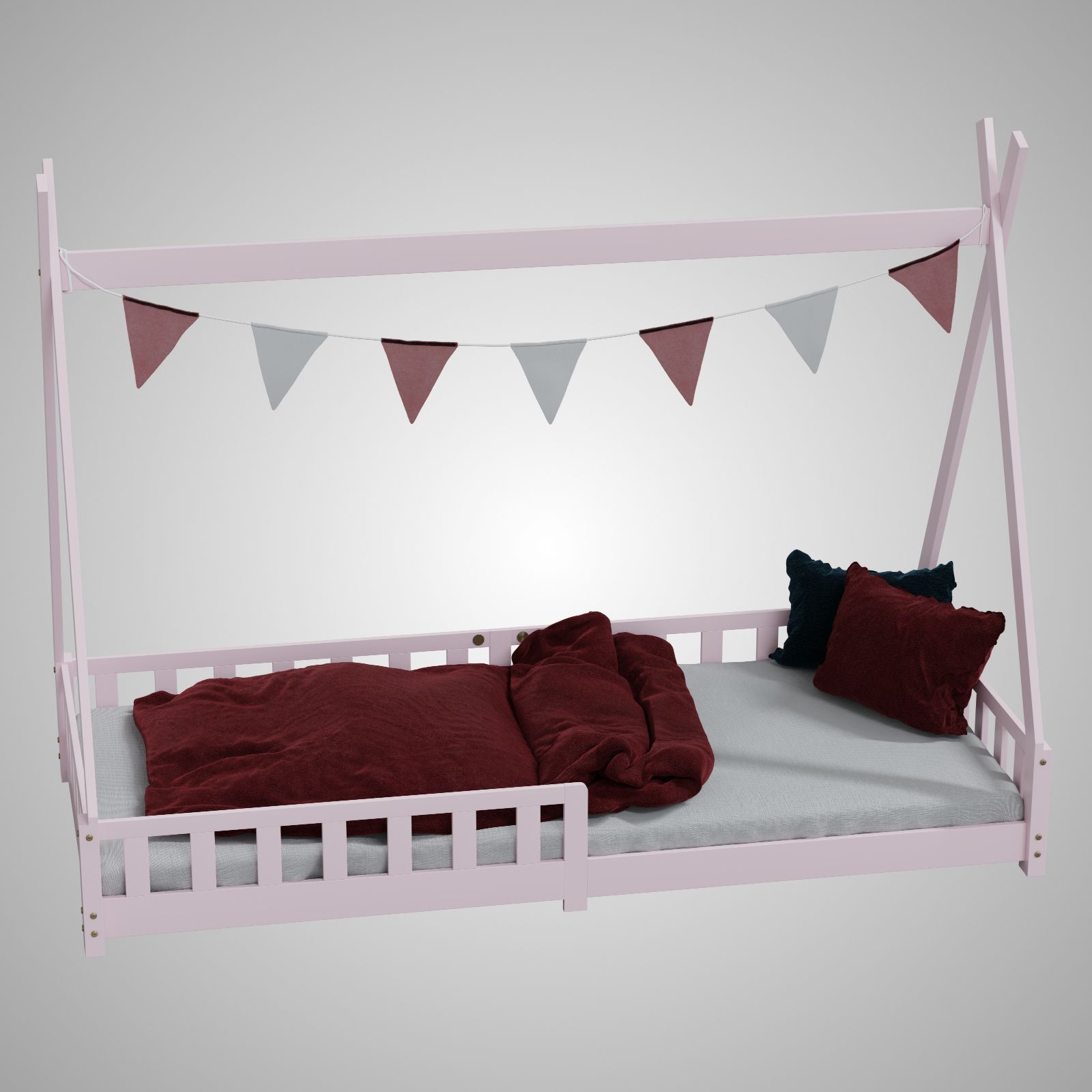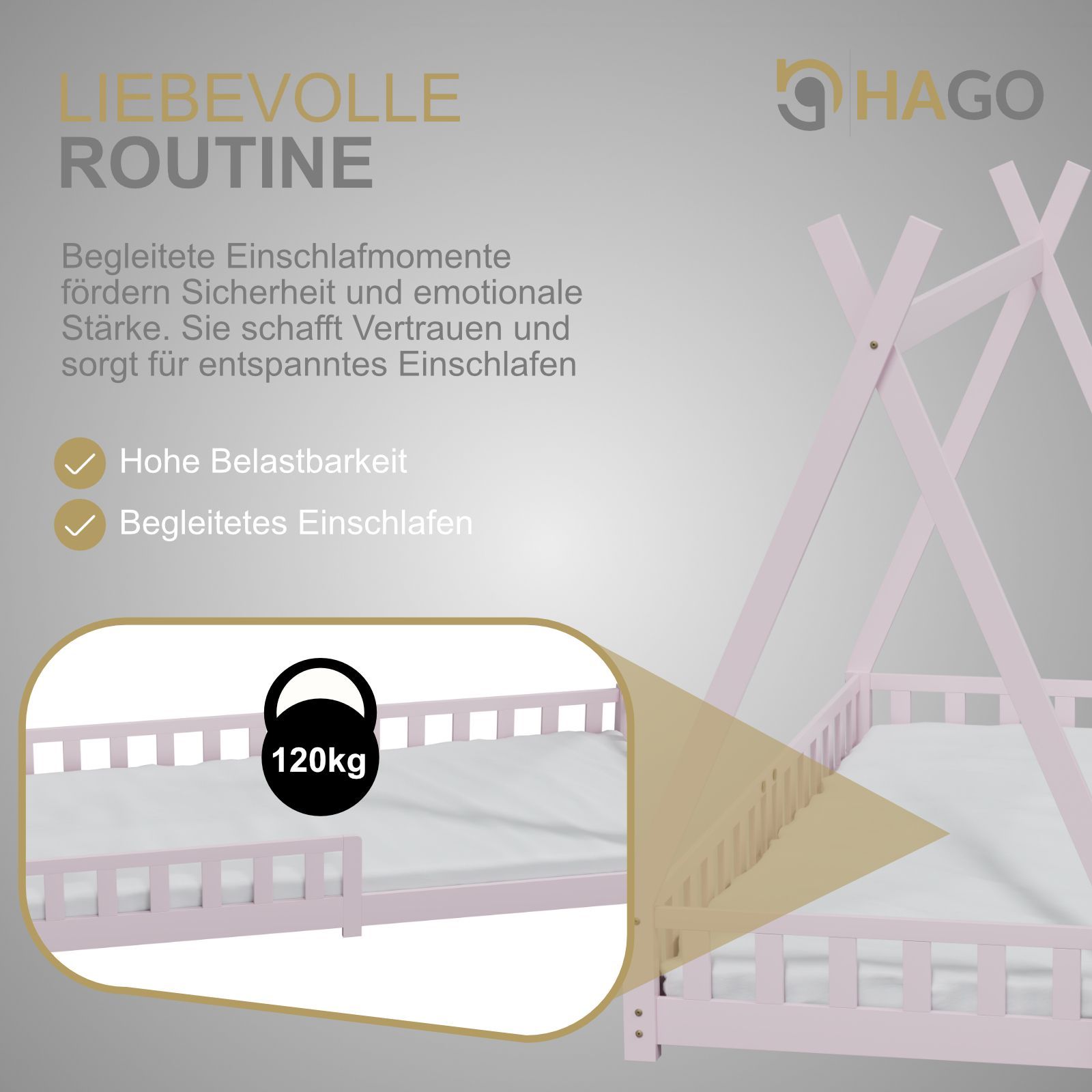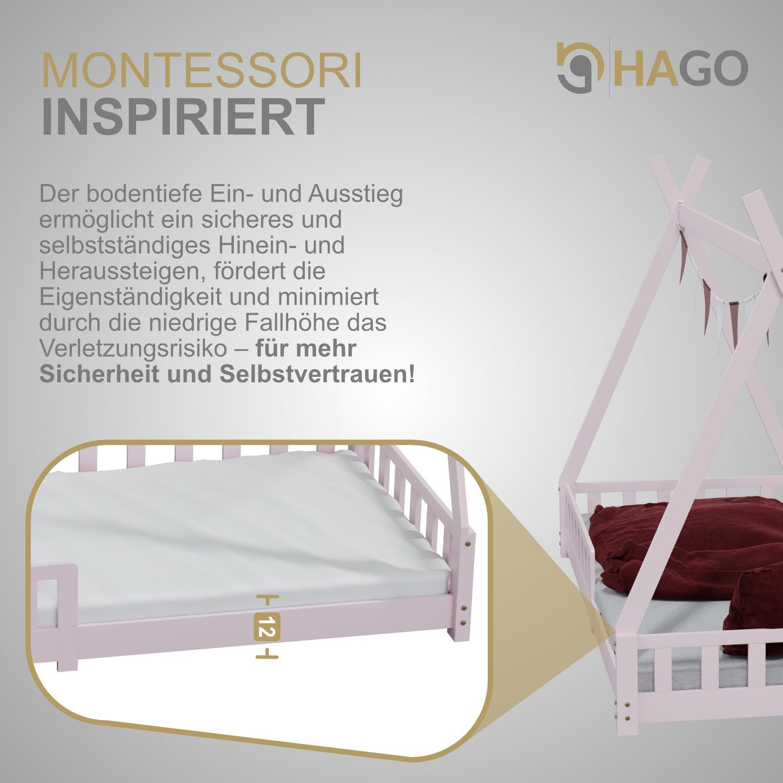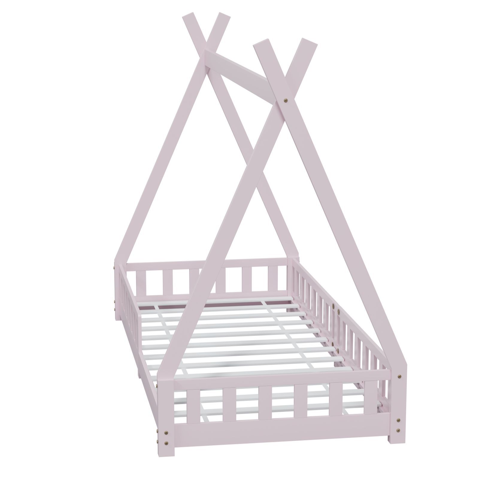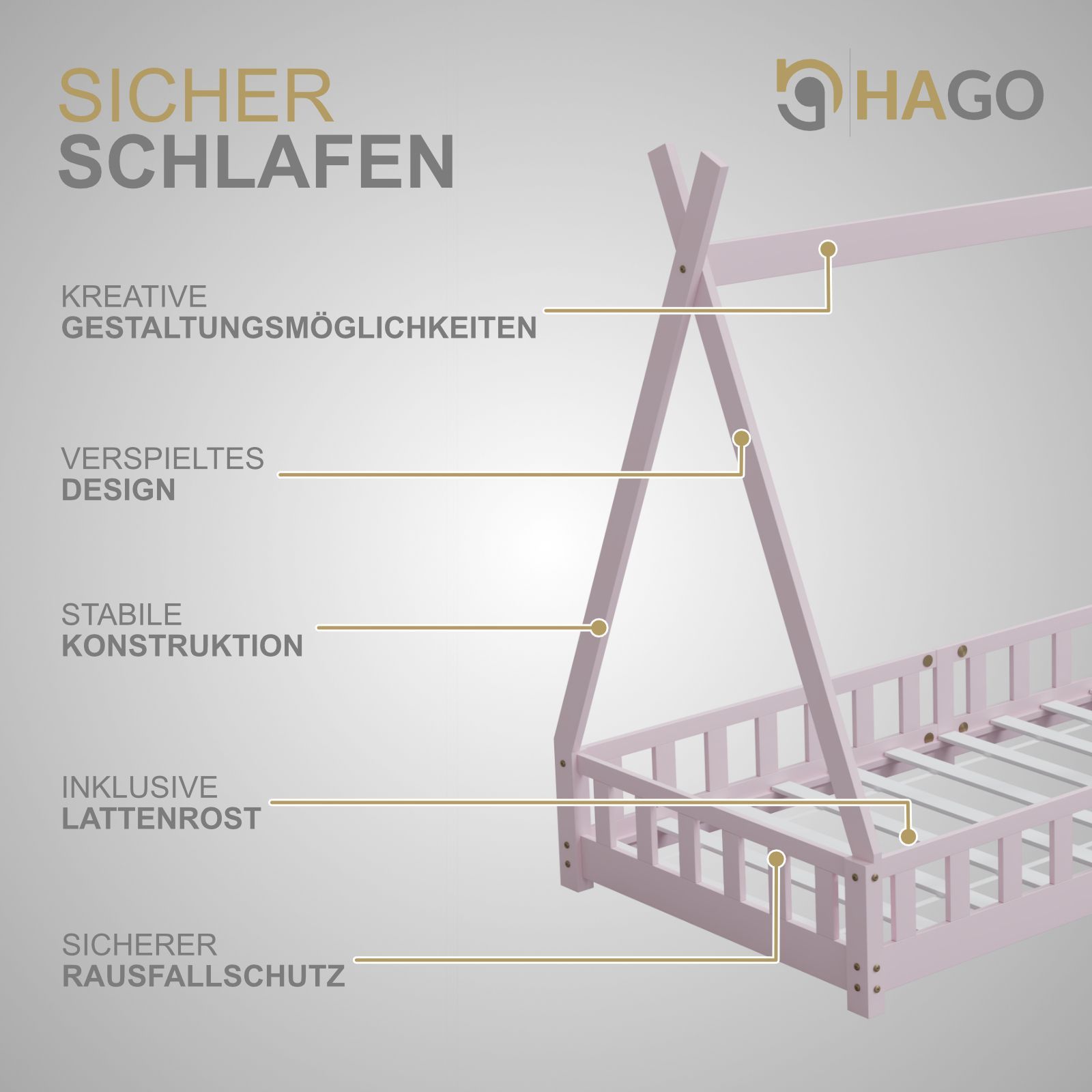 HAGO Kinderbett Tipi Bett Holzhaus 200x90 Rausfallschutz Lattenrost Kiefer Rosa