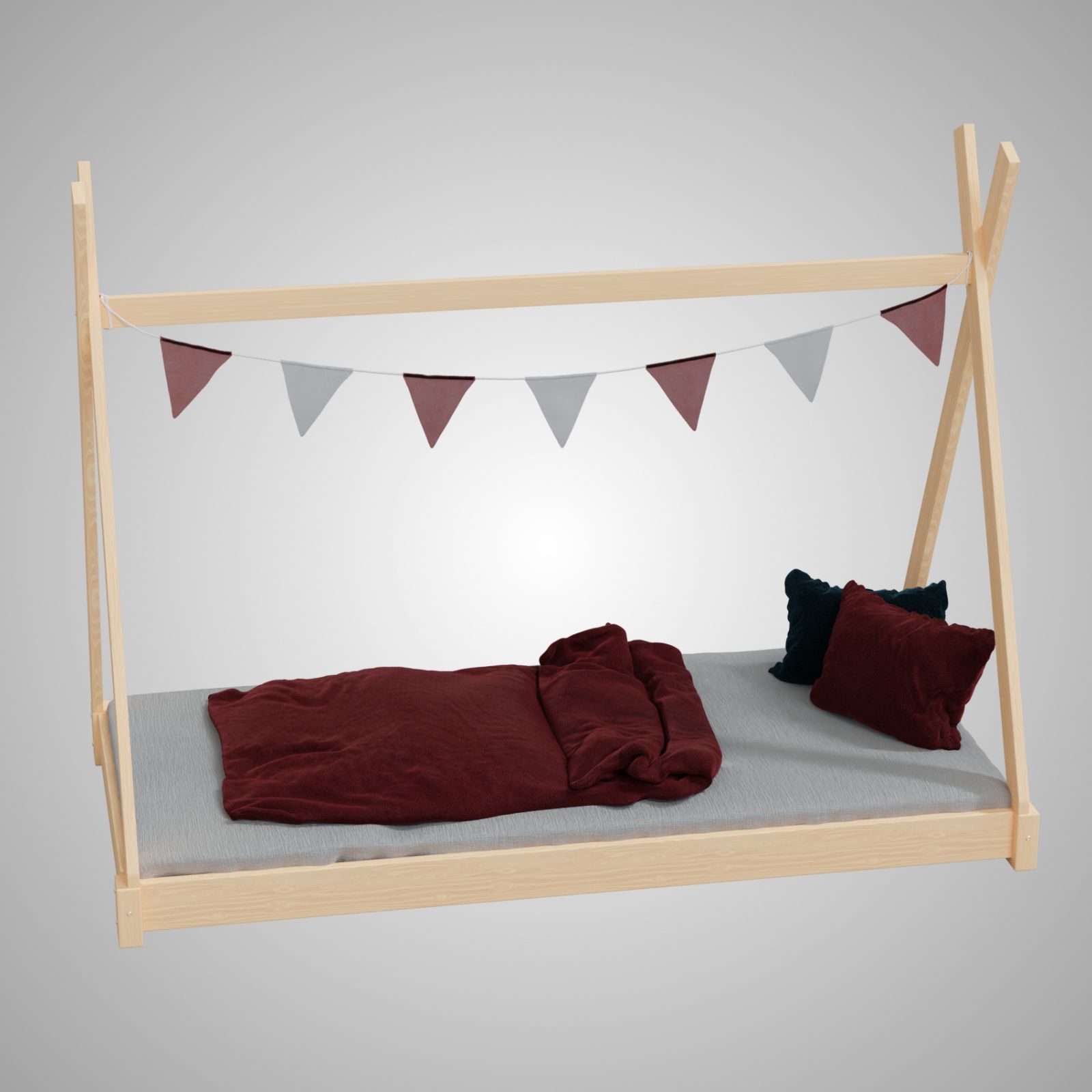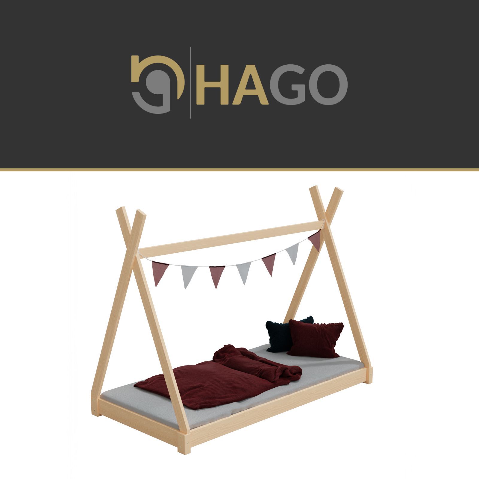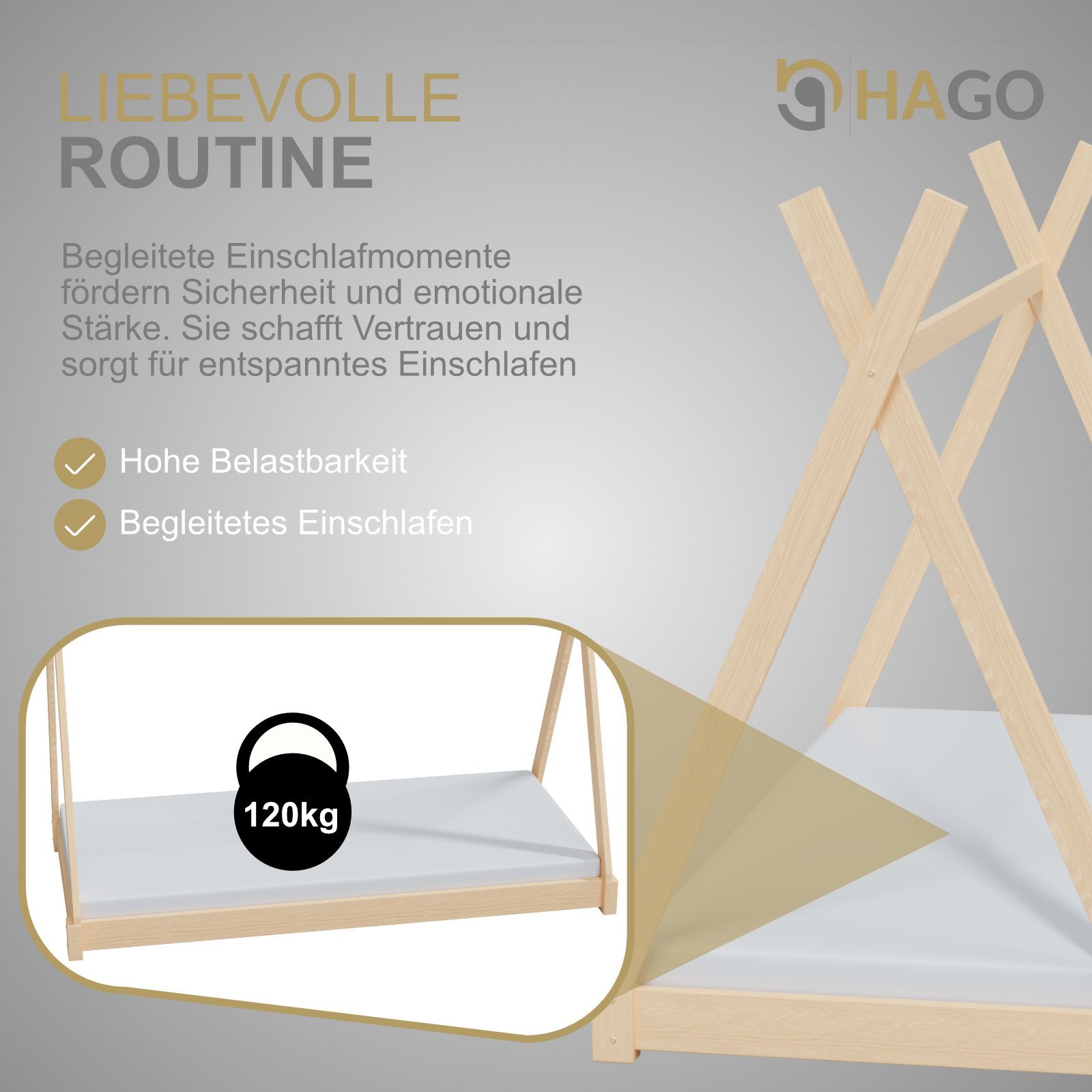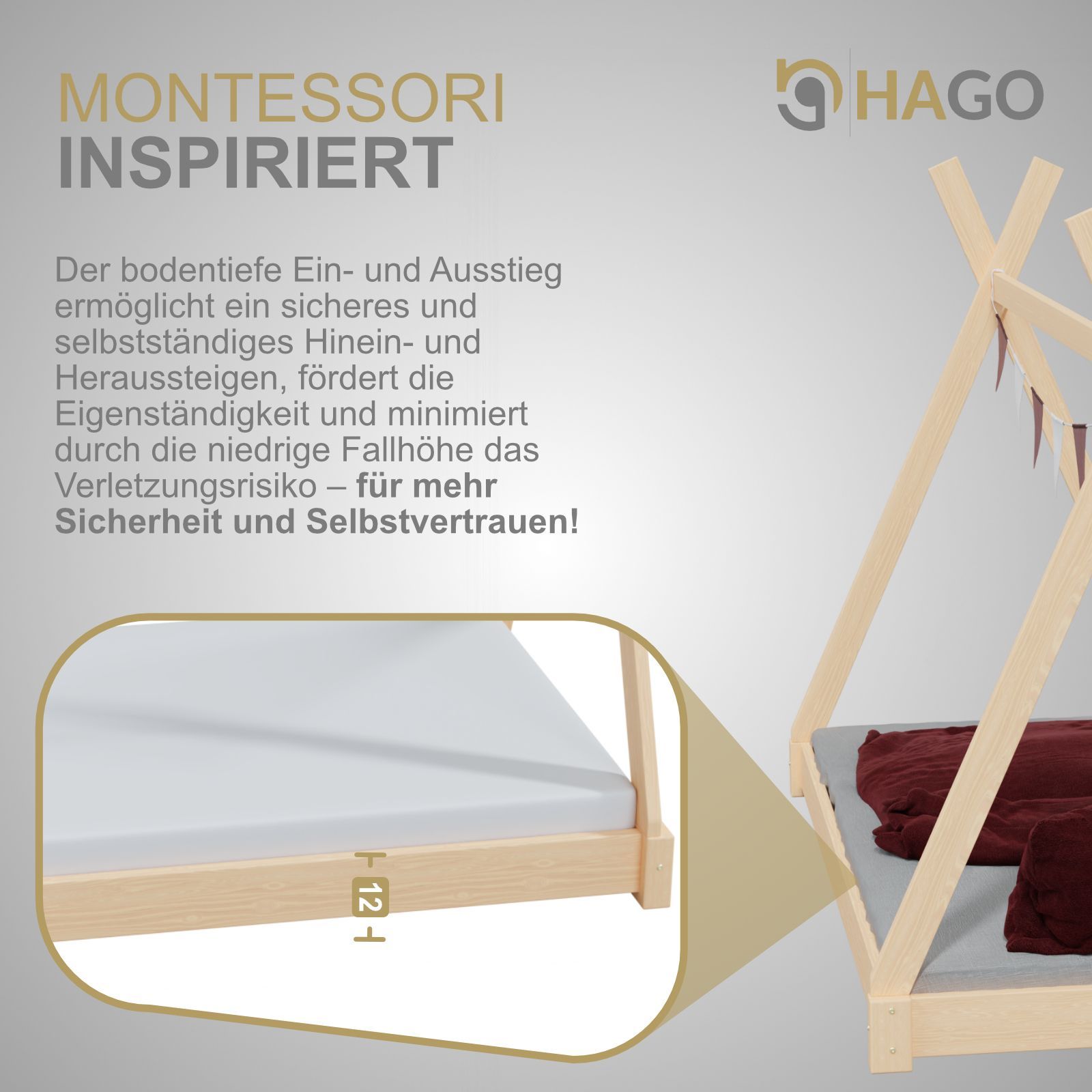 HAGO® Kinderbett Tipibett Holz 200x90cm Natur Bettgestell Tipi Lattenrost
